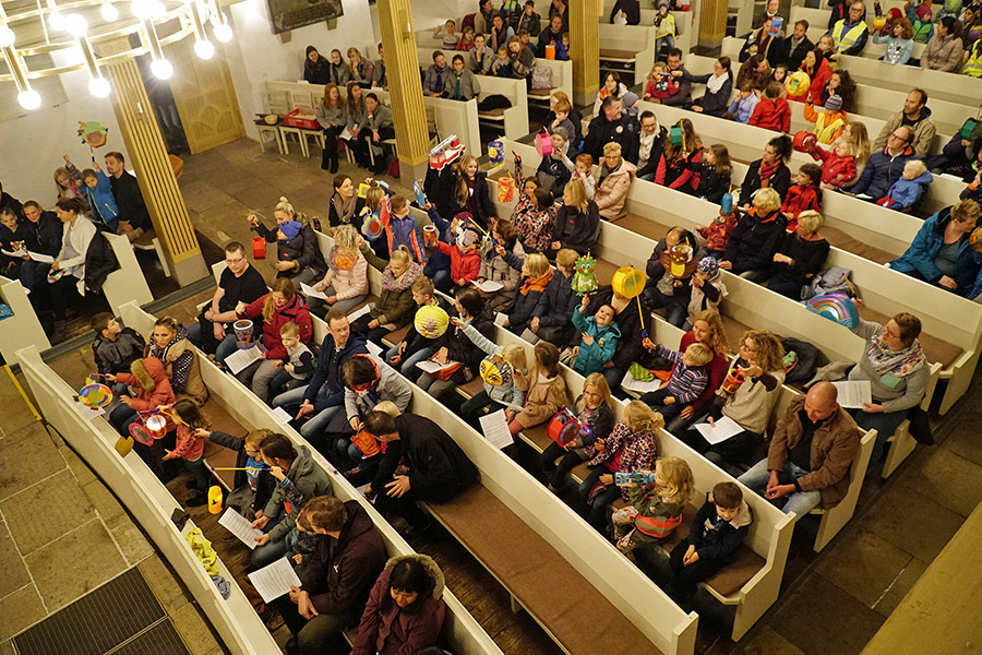 Ebenso zeigten die Kinder ihre mitgebrachten Laternen zur Hoffnung auf Licht im Dunkel für die Menschen, die in Mangel und Not unter uns leben.