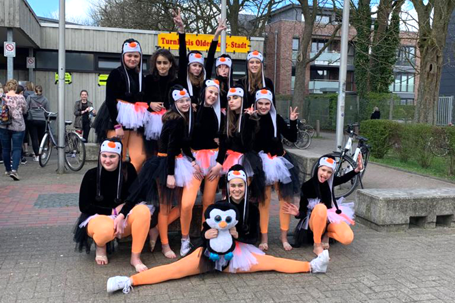 In der Altersgruppe 14 Jahre nahmen die zwölf Lehrter Turnerinnen, die Gruppe "Cheeky Girls", das Publikum in die Welt der Pinguine mit.