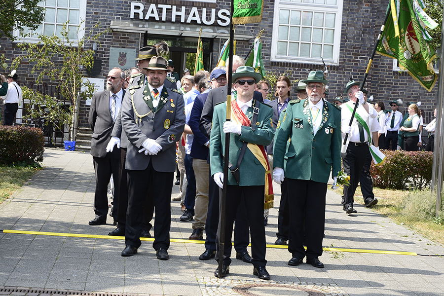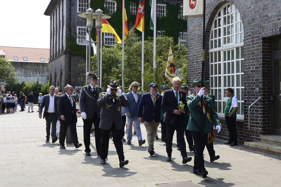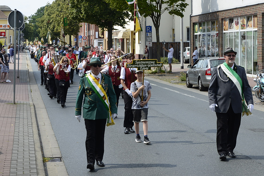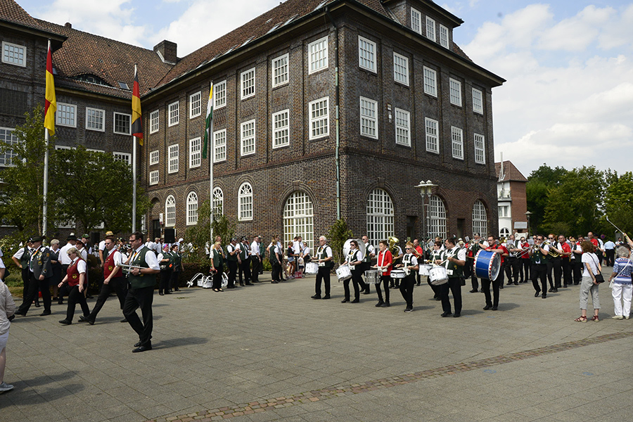 Die Bürgerschützen-Gesellschaft und das Schützen-Corps trafen sich gemeinsam mit den Umzugsteilnehmern am Lehrter Rathaus, um anschließend zum Festplatz zu marschieren.