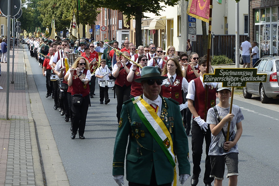 Lehrter Schützen ziehen bei bestem Sommerwetter durch die Innenstadt