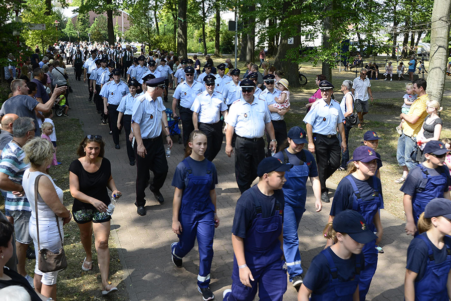 Die Lehrter Schützen scheinen einen sehr guten Draht zum Wettergott zu haben: Wie in den vergangenen Jahren fand am heutigen Sonnabend, 28. Juli 2019, der große Festumzug mit befreundeten Vereinen durch die Lehrter Innenstadt statt..