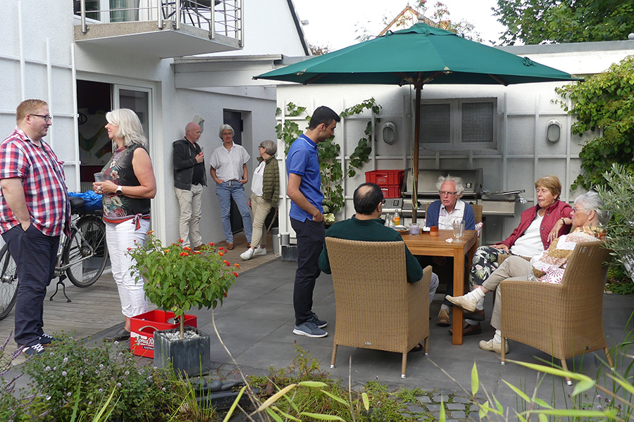 Am 14. August, bei schönstem Wetter, konnte sich so ein großer Kreis des Helfernetzwerks im Garten von Familie von Tippelskirch in N.B. treffen. Mit dabei waren auch zahlreiche neue Mitbürger aus dem Kreis der Migranten, die zum Teil bereits selbst im Helfernetzwerk tätig sind, um Neuankömmlingen zu helfen.