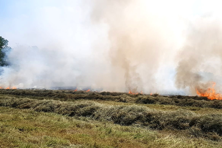 Entfacht wurde das Feuer ersten Informationen zufolge vermutlich durch einen technischen Defekt an dem auf dem Feld tätigen Trecker. Dadurch wurde das Heu in Brand gesetzt und durch den Wind das Feuer über das Feld getragen.