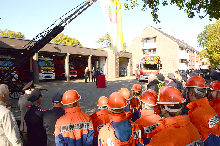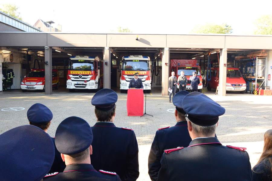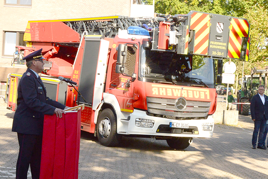 Rund 700.000 Euro hat die neue Anschaffung gekostet, wie Burgwedels Bürgermeister Axel Düker vor rund 120 Gästen berichtete. Er konnte neben den Einsatzkräften und Mitgliedern der Jugendfeuerwehr auch Regionsbrandmeister Karl-Heinz Mensing, Abschnittsleiter Horst Holderith, die Kommandos der Burgwedeler Ortsfeuerwehren wie auch Abordnungen aus Isernhagen, Langenhagen, Wedemark und Burgdorf begrüßen. Letztere Kommunen stellten bislang eine Drehleiter zur Verfügung, wenn im Burgwedeler Stadtgebiet eine erforderlich wurde.
