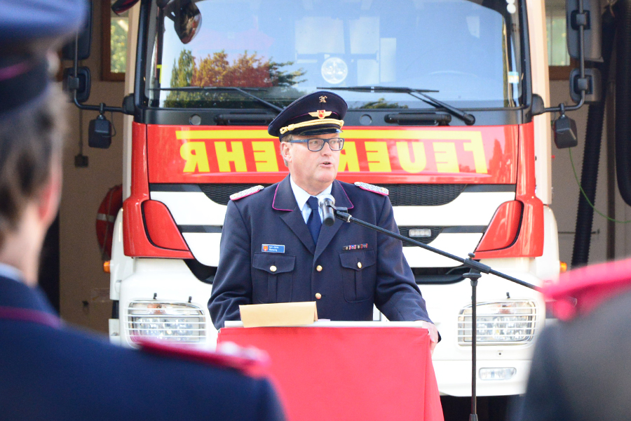 Mit der Übergabe der Drehleiter an die Ortsfeuerwehr ist mit einer zeitnahen Indienststellung noch nicht zu rechnen: 40 Stunden Ausbildung sind notwendig, um die Drehleiter im Einsatz benutzen zu dürfen. Solange leisten die angrenzenden Kommunen noch die nachbarschaftliche Löschunterstützung mit ihren Drehleitern.
