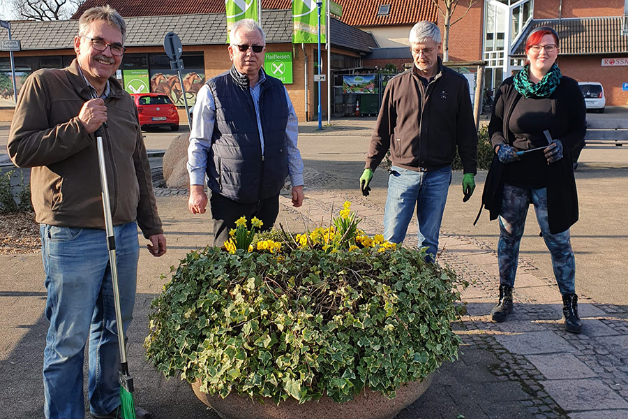 Am gestrigen Montag, 11. April 2022, trafen sich ein paar Ortsratmitglieder mit Begleitung auf dem Hindenburgplatz, um die Pflanzkübel mit Osterglocken und anderen Frühlingsblühern zu bestücken. Diese Aktion wird von dem Verein "Uetze blüht auf" organisiert und wurde an diesem Tag von Ortsbürgermeister Hartwig Schumacher, Reinhild Schumacher, Klaus Finger, Jürgen Böhnke sowie Hannah Groß in die Tat umgesetzt.