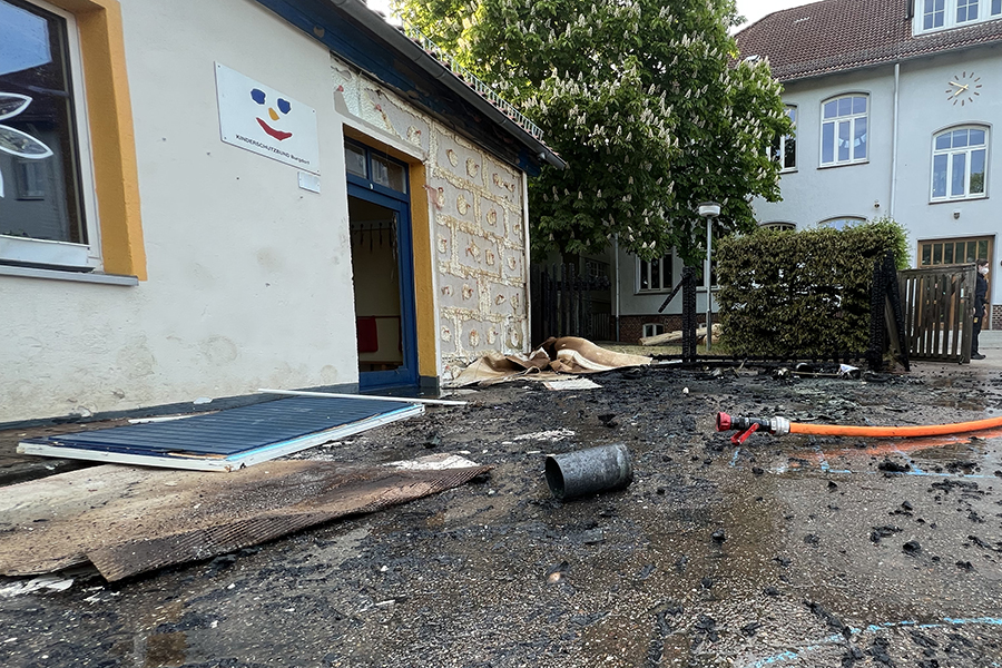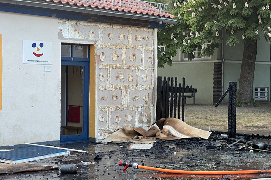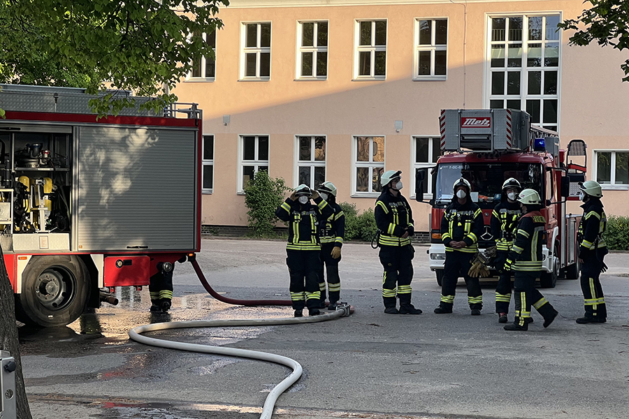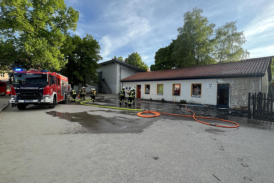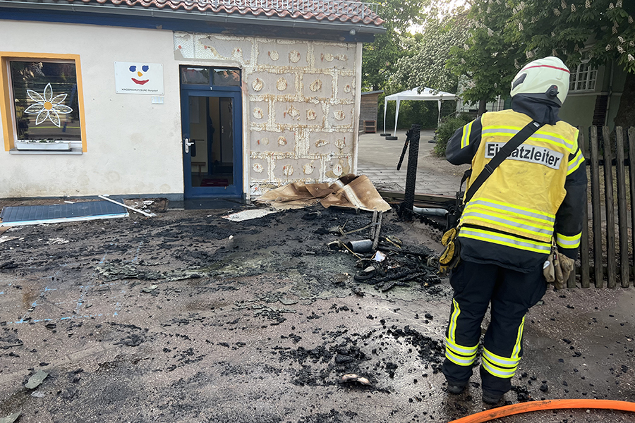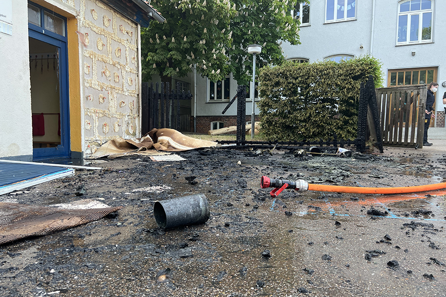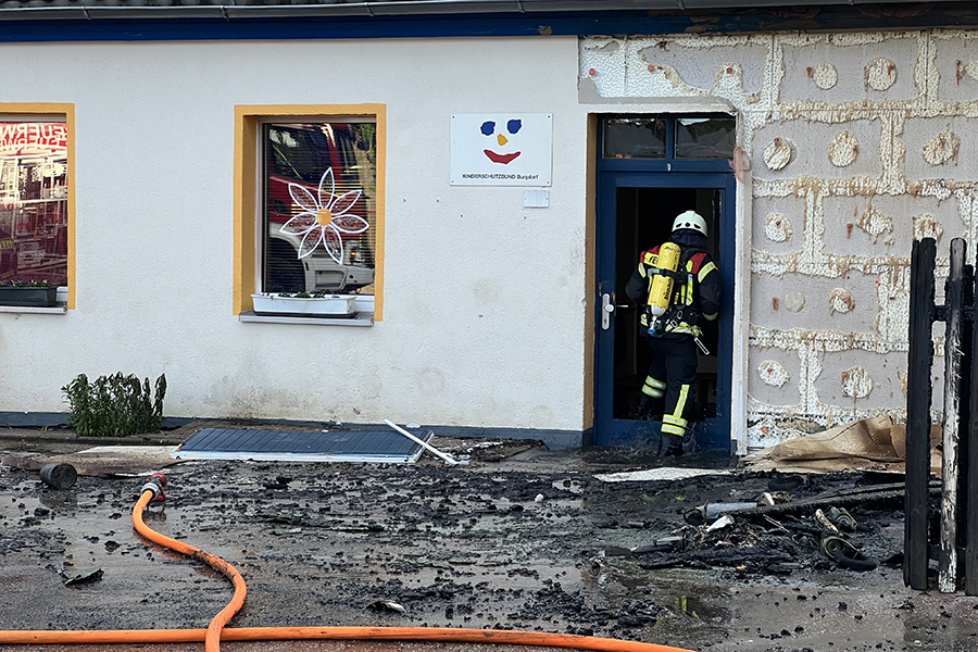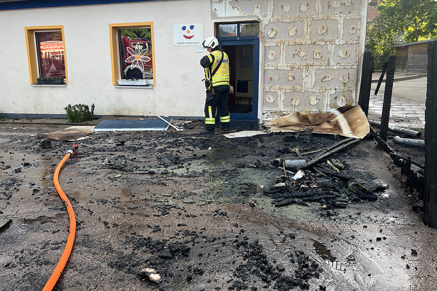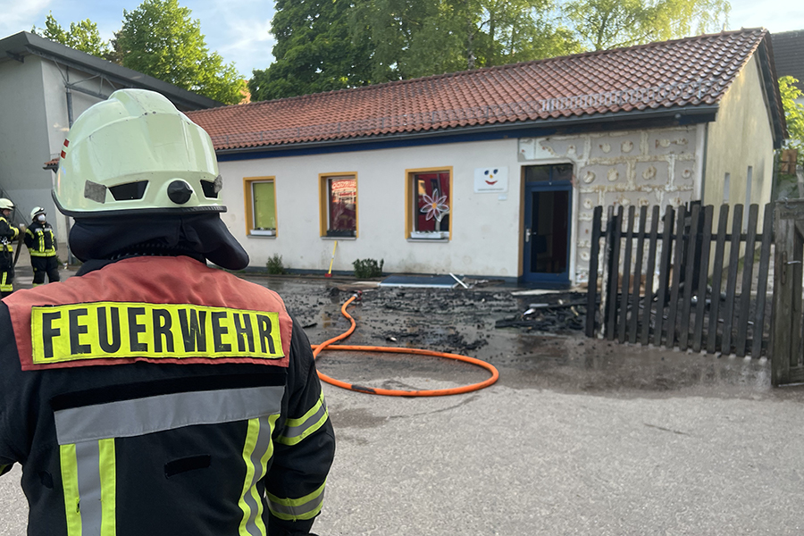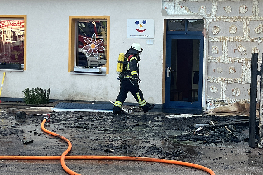 Mit vier Fahrzeugen rückten die Brandbekämpfer der Ortsfeuerwehr Burgdorf aus. Als sie ankamen, waren zwei Container, die in der Nähe eines Gebäudes Brand standen, bereits weitestgehend niedergebrannt. Doch die Flammen hatten nun genügend Zeit gehabt, sich auf das danebenliegende Gebäude auszubreiten und drohten nun, auch auf das Gebäude überzugreifen.