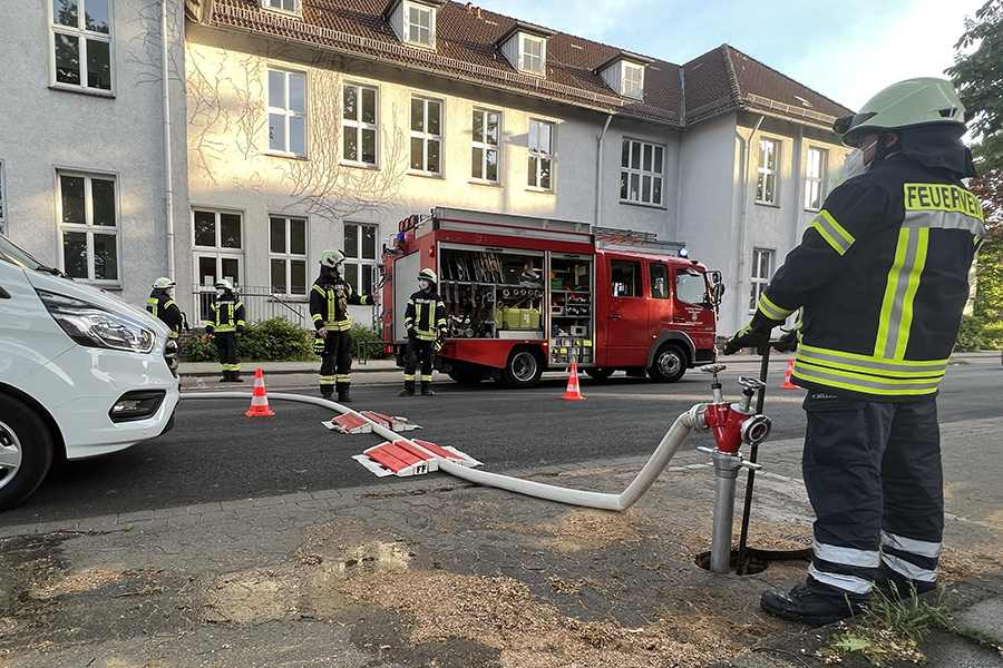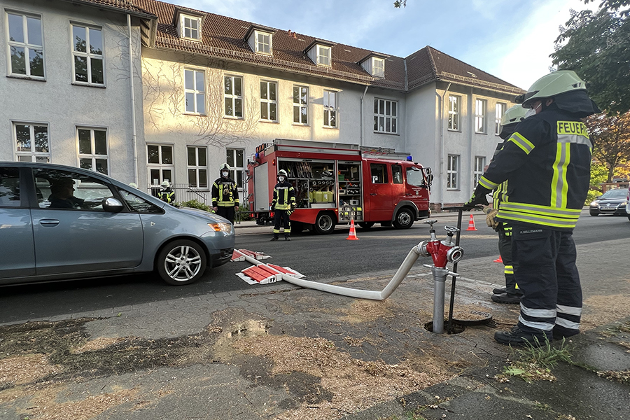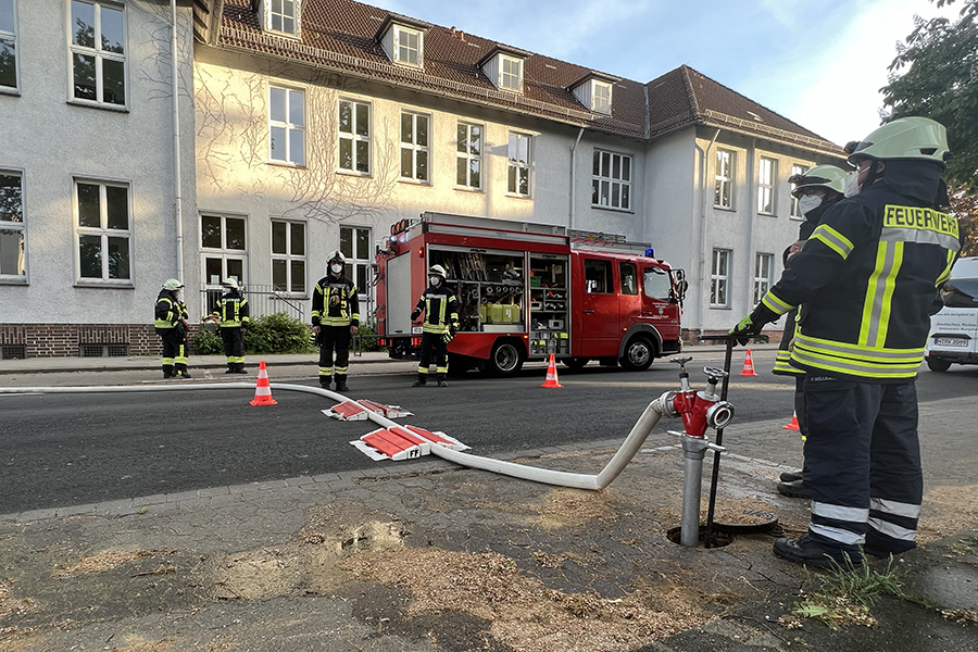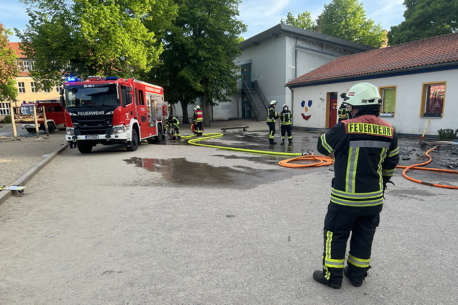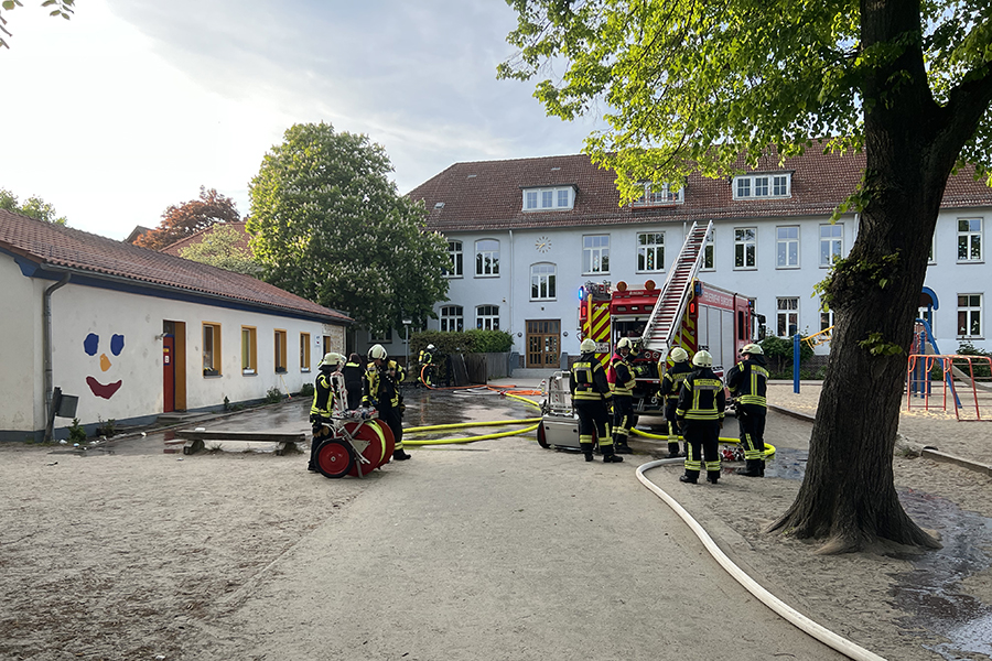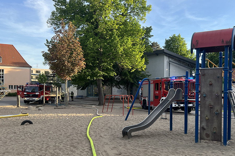 Zwischenzeitlich hatten dann doch wohl Anwohner ebenfalls zum Telefon gegriffen und die Feuerwehr gerufen. Es brennt auf dem Schulhof der Grund- und Hauptschule in der Hannoverschen Neustadt" wurde um 19:27 Uhr gemeldet.