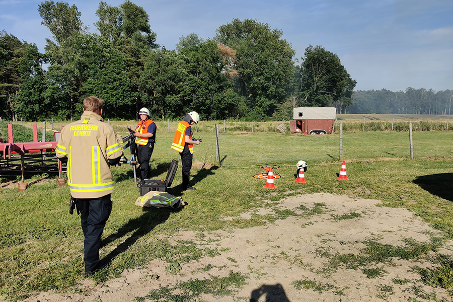 Um eine genaue Einschätzung der Einsatzstelle zu bekommen, wurde die Drohne der Feuerwehr Lehrte angefordert. Mittels dieser Drohne und der eingebauten Wärmebildkamera war es möglich, die Lage genau einzuschätzen und weitere Löschmaßnahmen einzuleiten.