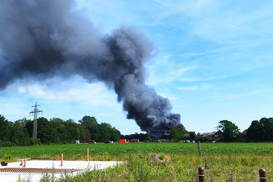 Am gestrigen Mittwoch, 15. Juni 2022, wurden die Freiwilligen Feuerwehren Burgdorf, Dachtmissen, Heeßel, Hülptingsen, Otze und Ramlingen-Ehlershausen sowie die Einsatzleitung vor Ort (ELO) der Stadtfeuerwehr um 16.30 Uhr zu einem brennenden Bauernhof in Hülptingsen gerufen. Bereits auf der Anfahrt konnten die Einsatzkräfte erkennen, dass es sich hierbei um einen Großbrand handelt. Eine tiefschwarze Rauchwolke war weithin zu sehen..