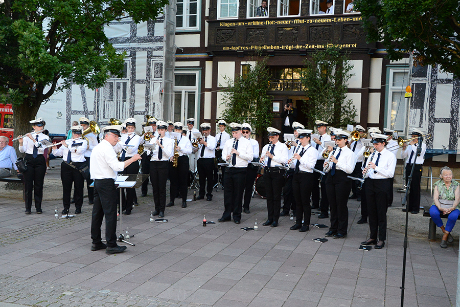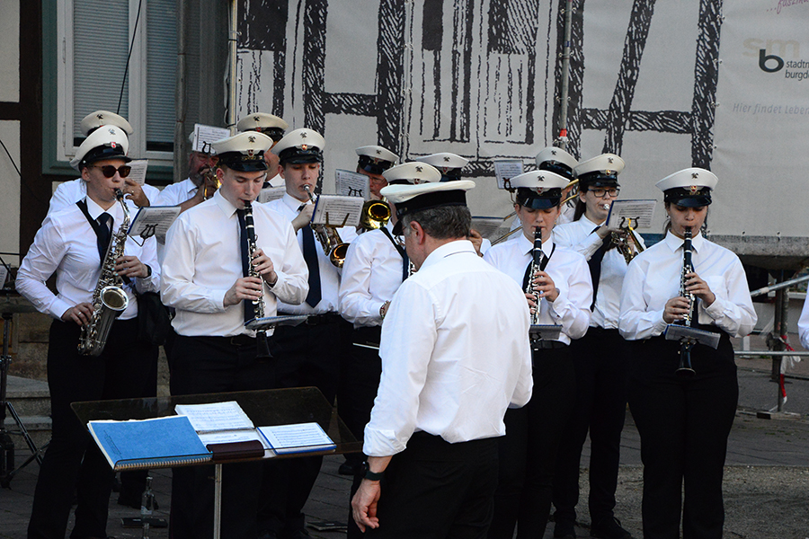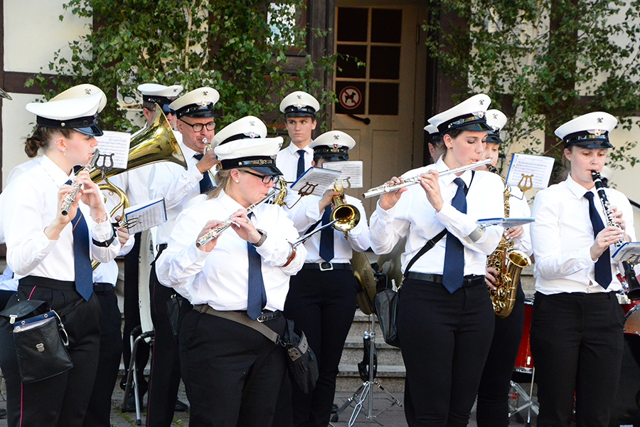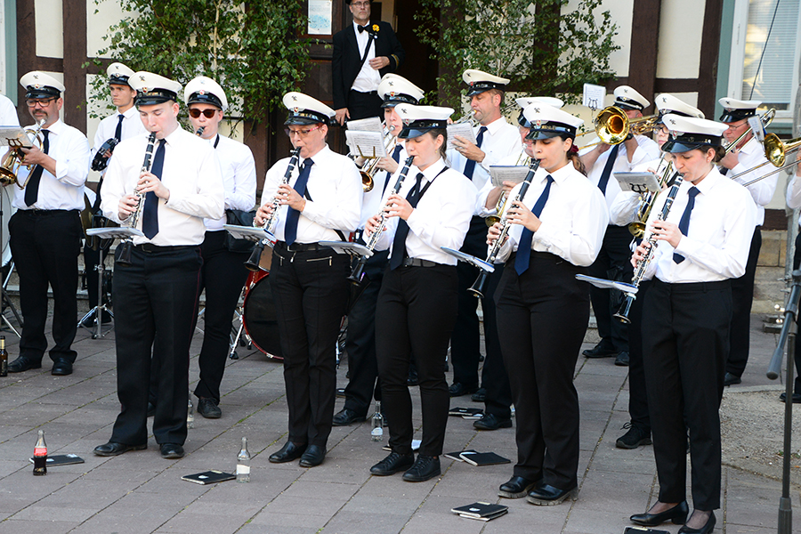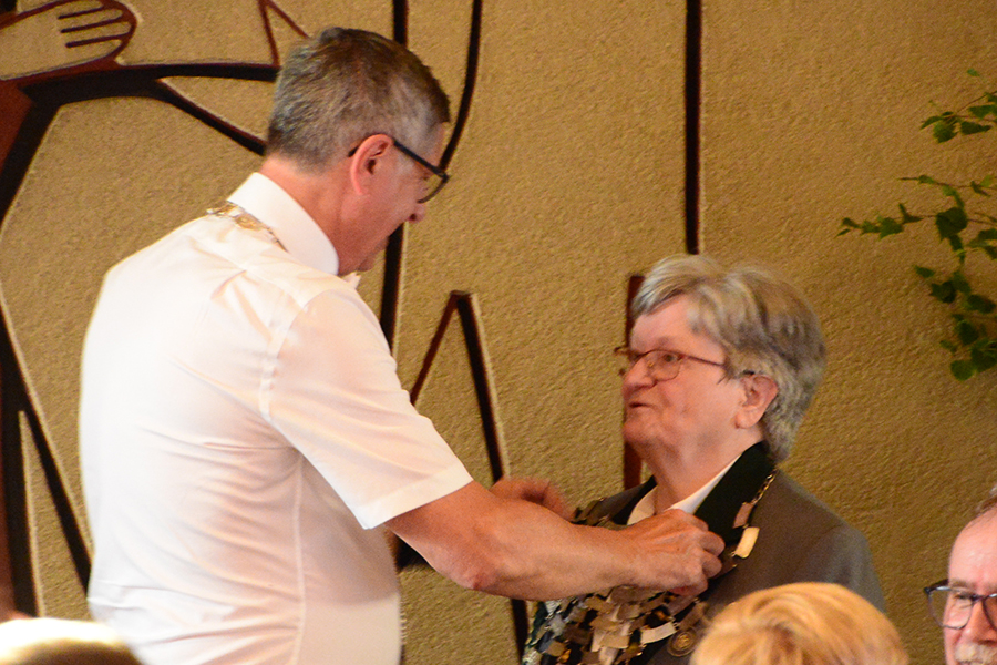 Er überreichte zudem Monika Meyer die Ratskette. Derweil unterhielt der Musikzug der Freiwilligen Feuerwehren Burgdorf uns Hänigsen vor dem Rathaus das Publikum, welches auf den Großen Zapfenstreich wartete. Im Ratssaal spielte zeitgleich der Spielmannszug der Schützengesellschaft auf.