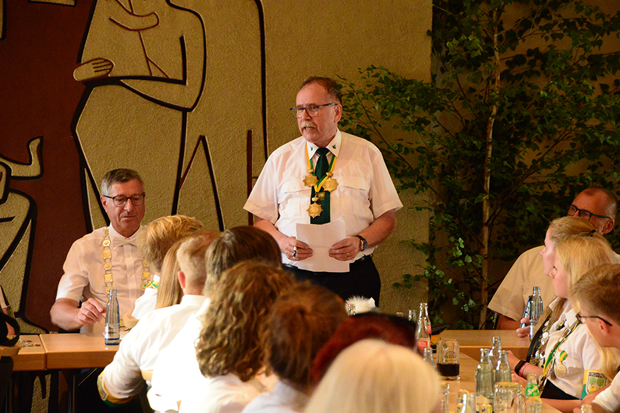 Er begrüßte die amtierenden Majestäten aus verschiedenen Jahren, denn einige Wettbewerbe konnten in 2021 dann doch wieder stattfinden, so dass Majestäten aus 2019 und 2021 zugegen waren. Auch begrüßte es unter anderem auch einer Abordnung er Bürgerschützen-Gesellschaft Lehrte wie auch vom Schützen-Corps aus Lehrte. "Mit beiden Vereinen besteht seit Jahren eine enge Freundschaft", so der 2. Vorsitzende.