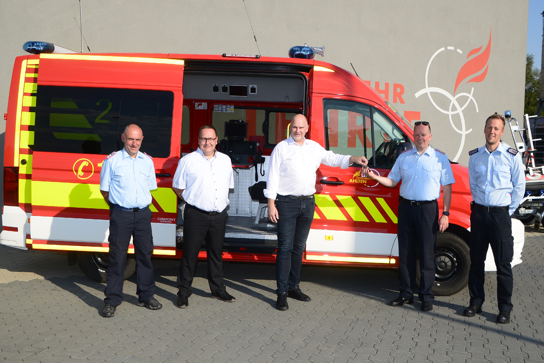 Die Freiwillige Feuerwehr Ahlten freut sich über einen neuen Mannschaftstransportwagen. Am gestrigen Mittwoch, 20. Juli 2022, hat Stadtbrandmeister Hendrik Voges das Fahrzeug offiziell von Bürgermeister Frank Prüße entgegengenommen. Danach wurde der Schlüssel gleich an die Ortsfeuerwehr Ahlten weitergegeben.