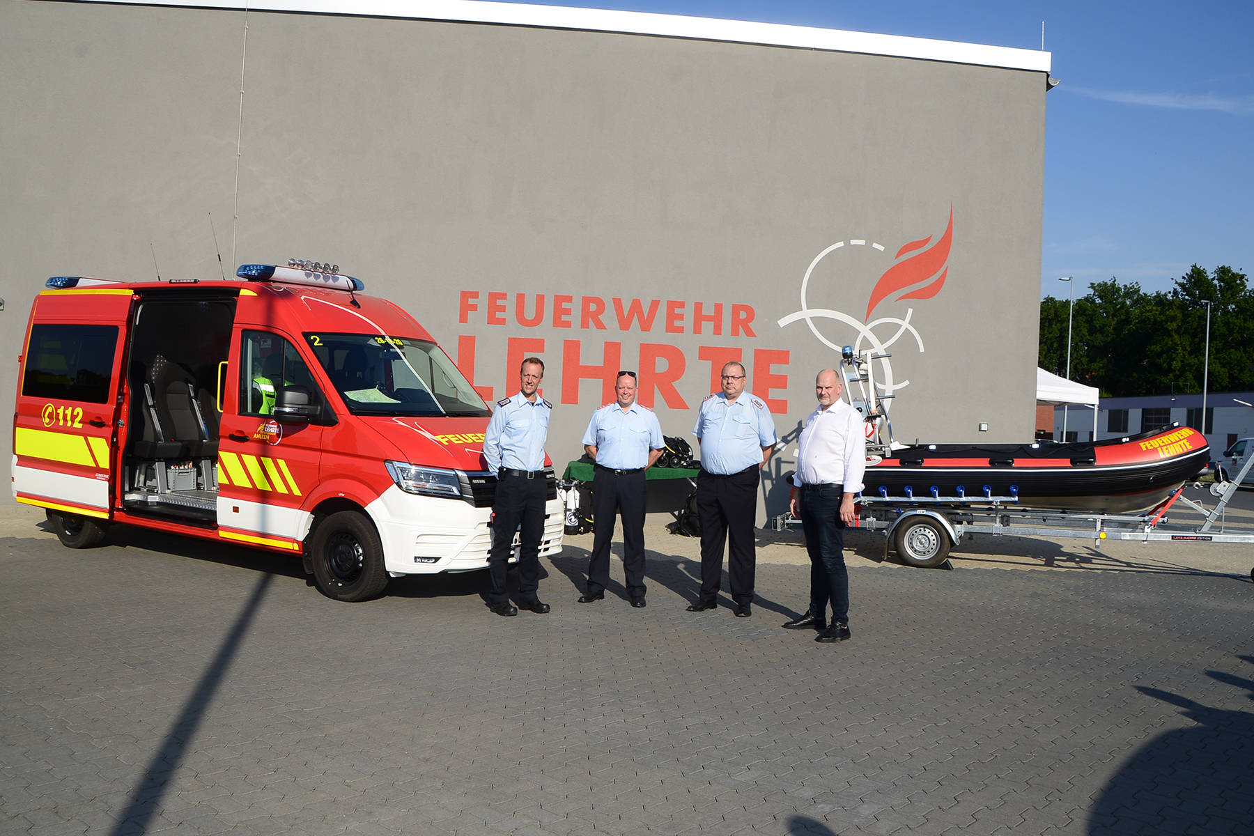 Diese war mit ihrem Ortsbrandmeister Christian Janssen und seinem Stellvertreter Florian Hammer nach Lehrte gekommen, um in den Räumlichkeiten der Stadtfeuerwehr in einer kleinen Feierstunde das neue Fahrzeug zu übernehmen. Rund 96.000 Euro hat das neue Fahrzeug gekostet, wie Michael Grossmann, Fachdienstleiter Ordnung bei der Stadt Lehrte, im Beisein von Bürgermeister Frank Prüße bekannt gab. Das neue Fahrzeug, ein VW Crafter, ersetzt seinen 23 Jahre alten Vorgänger. Obwohl normalerweise ausgediente Fahrzeuge über eine Auktion verkauft werden, so hat der Vorgänger noch weitere Aufgaben in Lehrte zu erledigen, da dieser noch gute Dienste leisten kann.