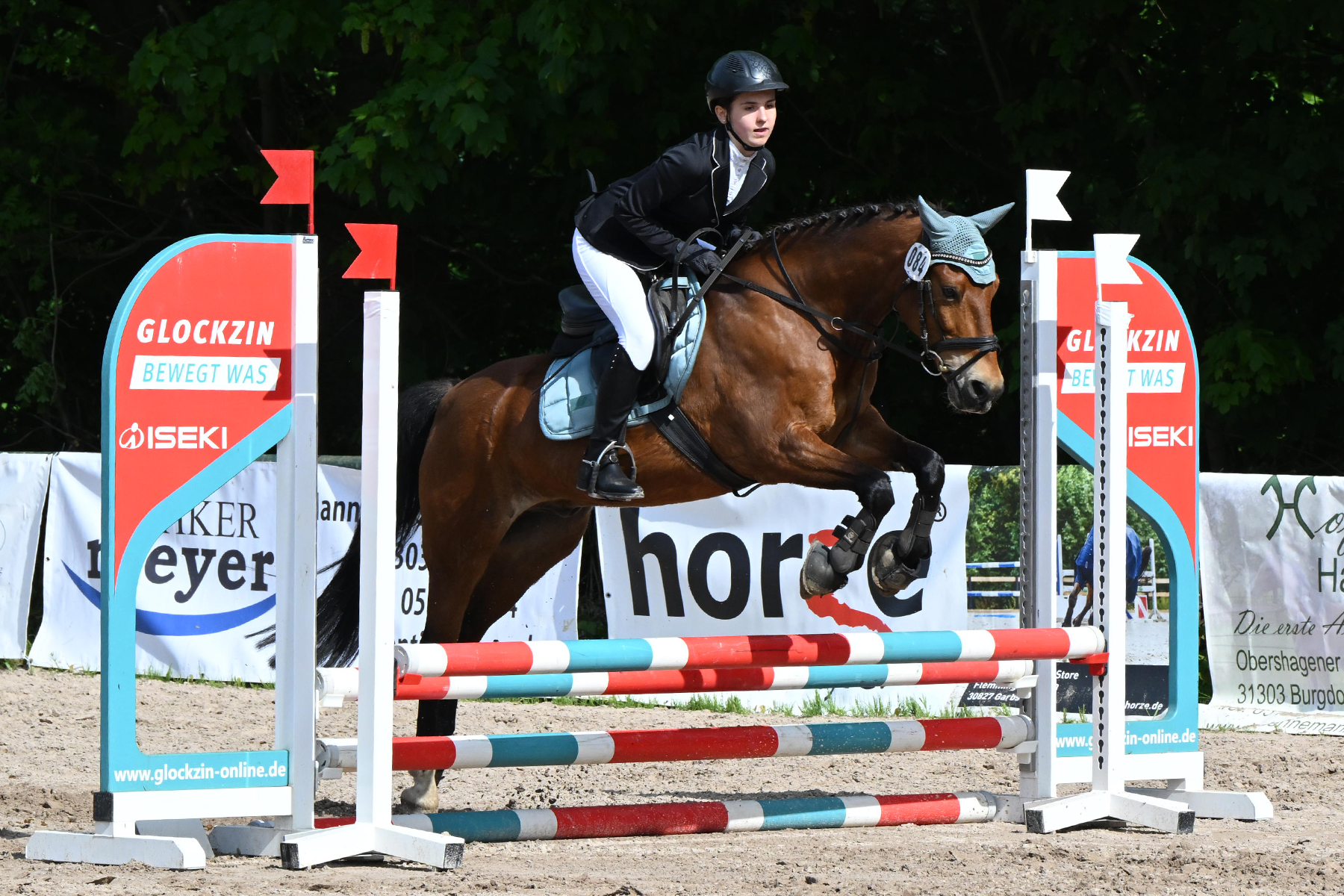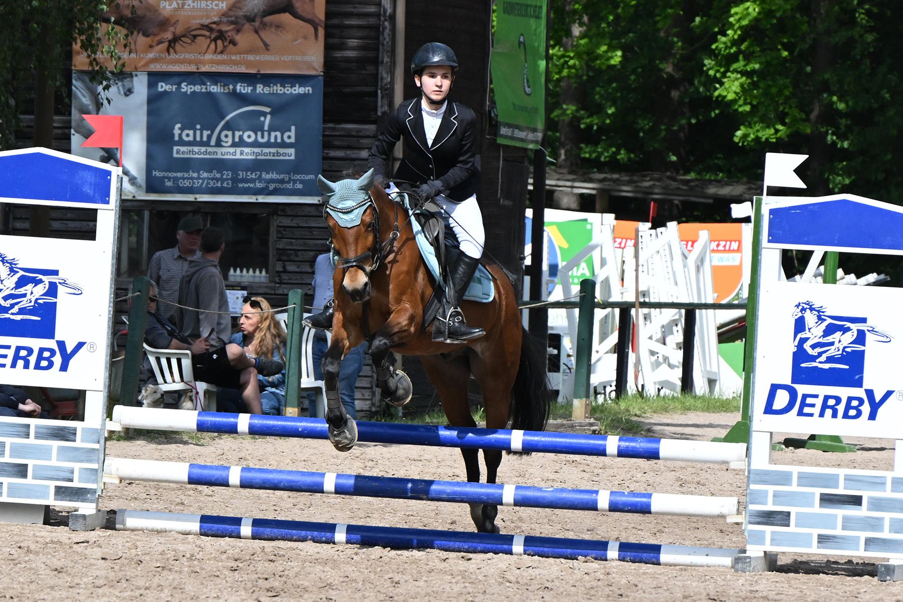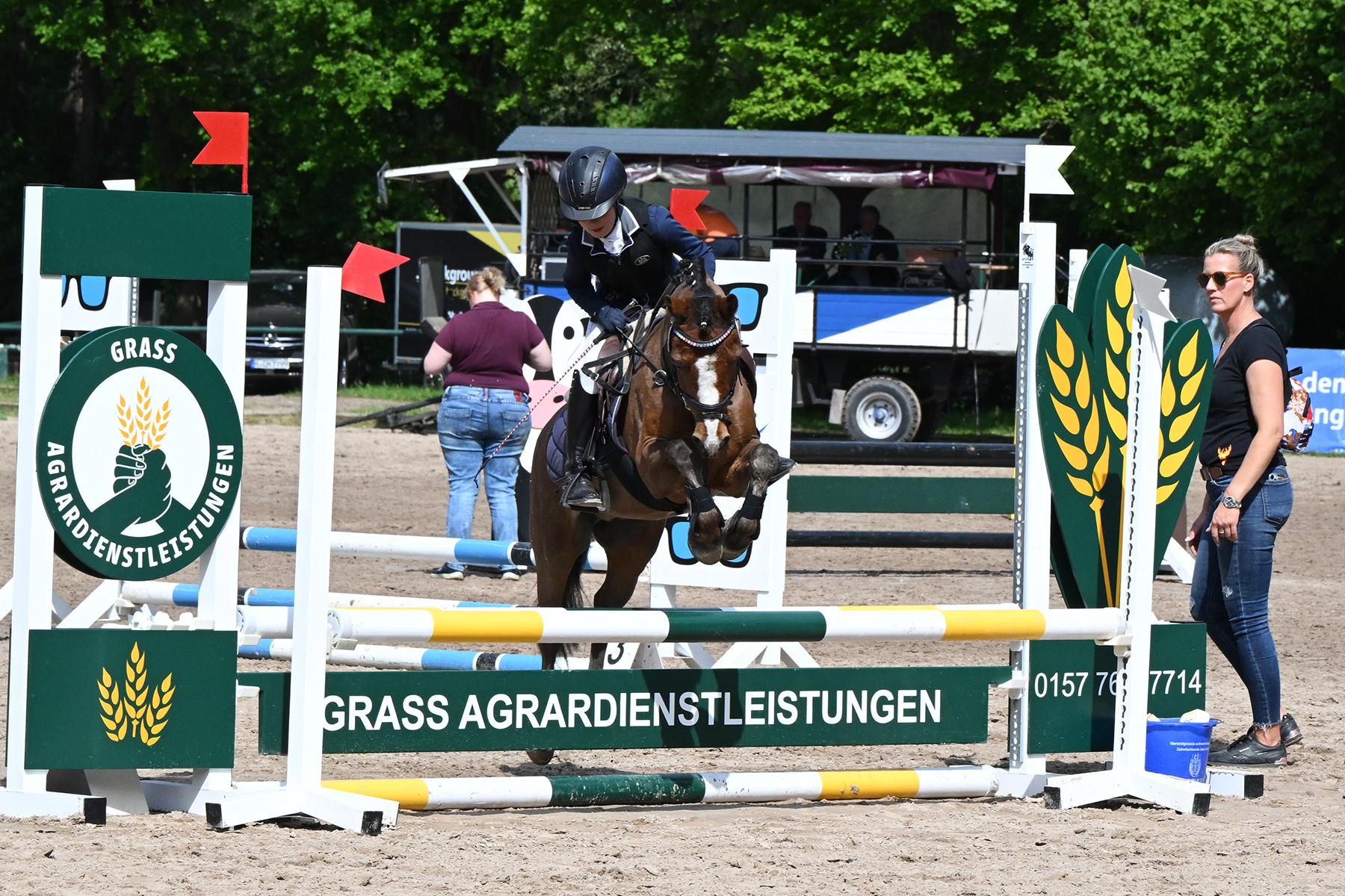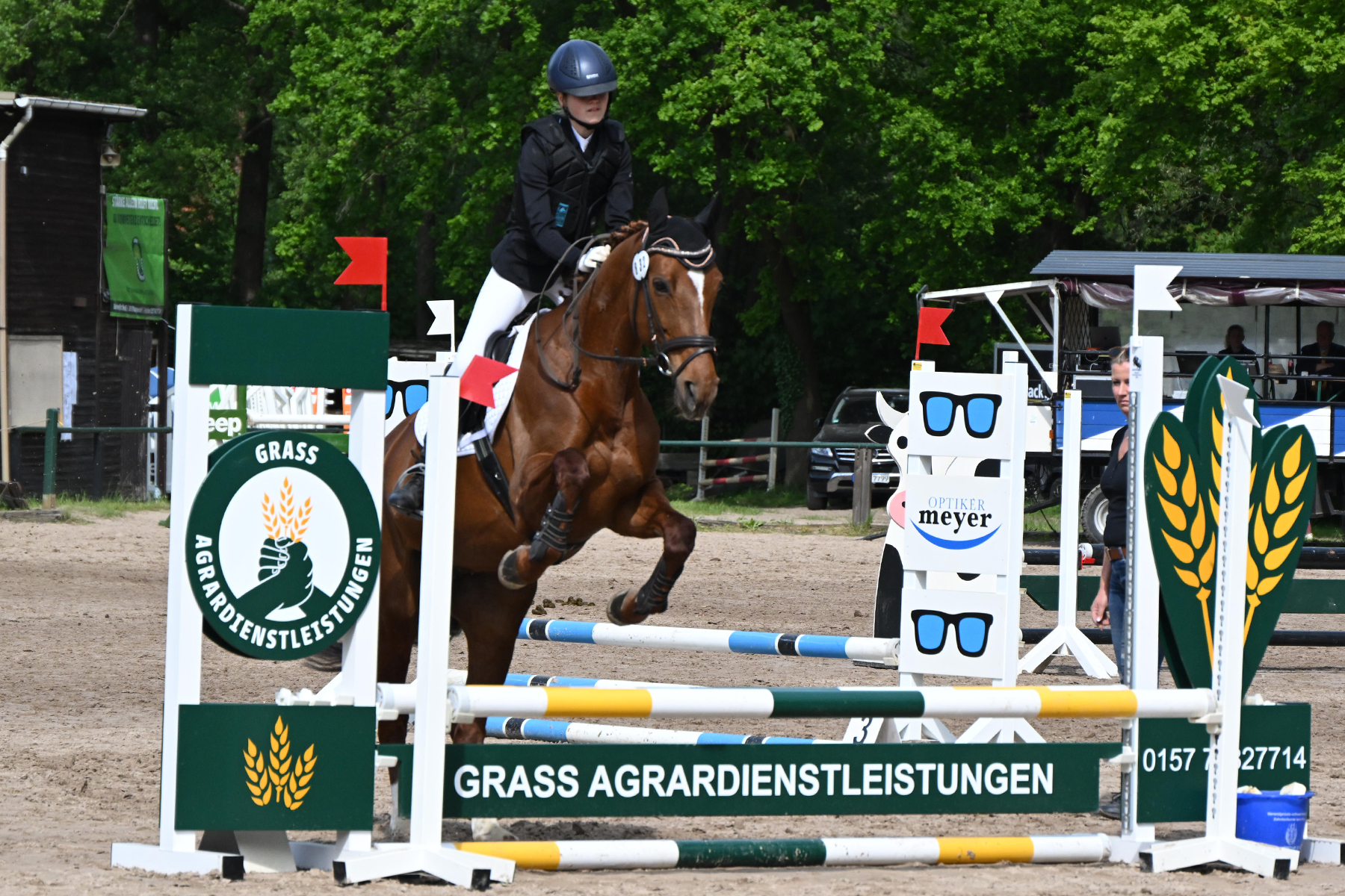 Beim Springen um den "Ehrenpreis der Familie Muhle" landete sie auf Platz 7 von 31 Startern. Ebenfalls Platz 7 belegte beim "Ehrenpreis von Frau Jana Köster" ihre Vereinskameradin Emma Jolina Campos auf Charly Chaplin, die als jüngste Turnierreiterin des Vereins antrat.