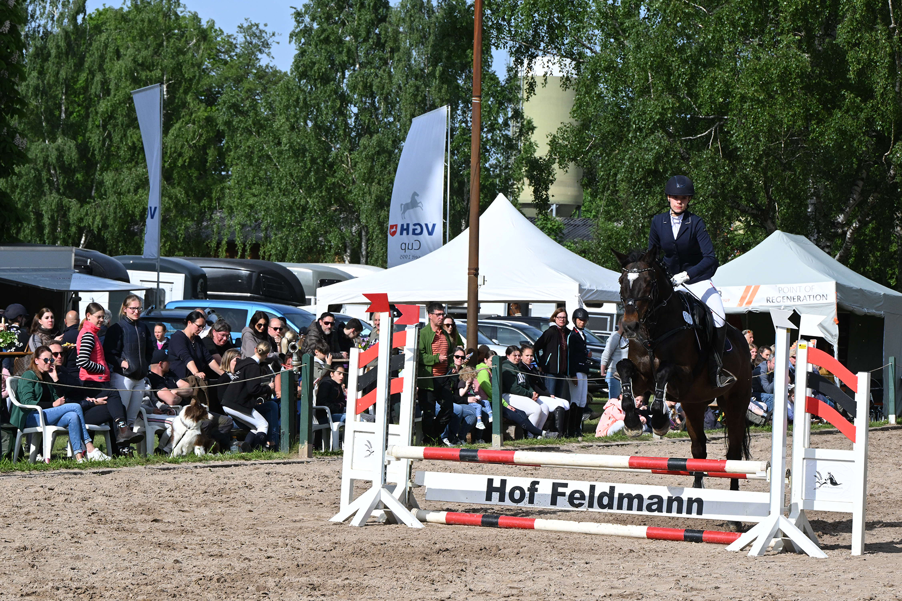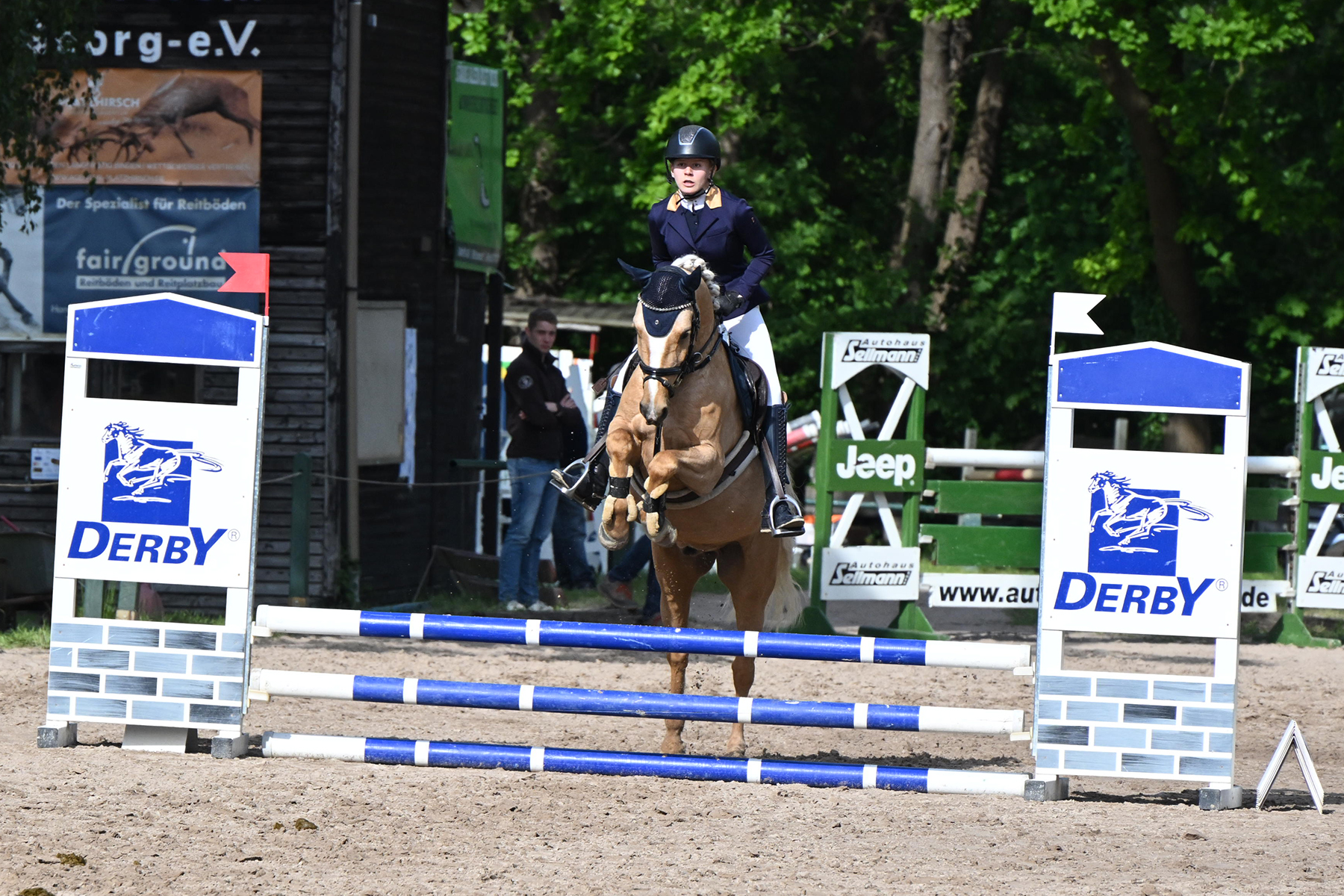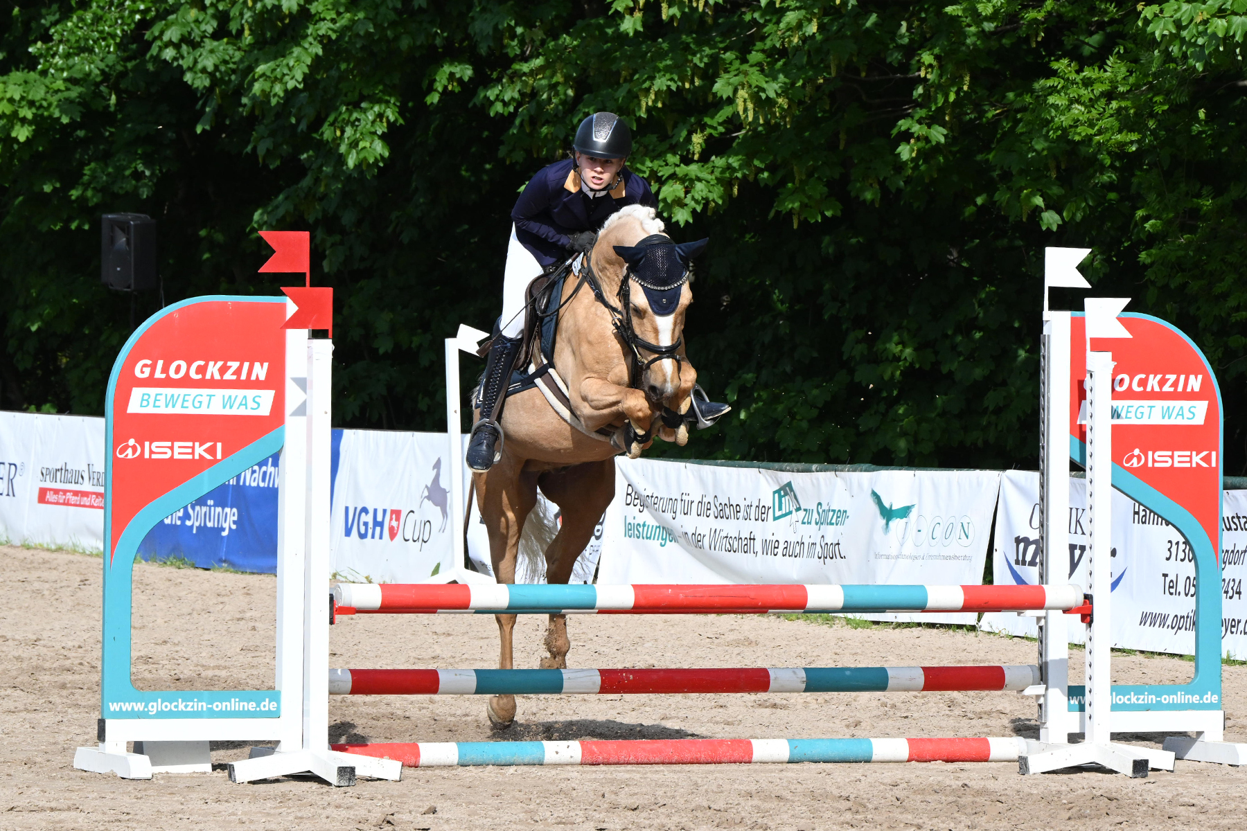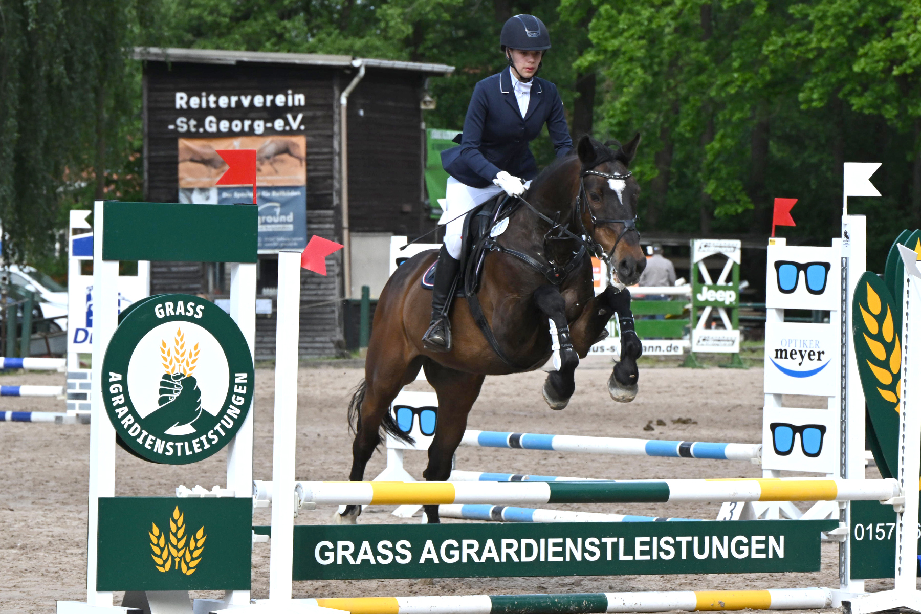 Beim Springen um den "Ehrenpreis der Familie Muhle" landete sie auf Platz 7 von 31 Startern. Ebenfalls Platz 7 belegte beim "Ehrenpreis von Frau Jana Köster" ihre Vereinskameradin Emma Jolina Campos auf Charly Chaplin, die als jüngste Turnierreiterin des Vereins antrat.