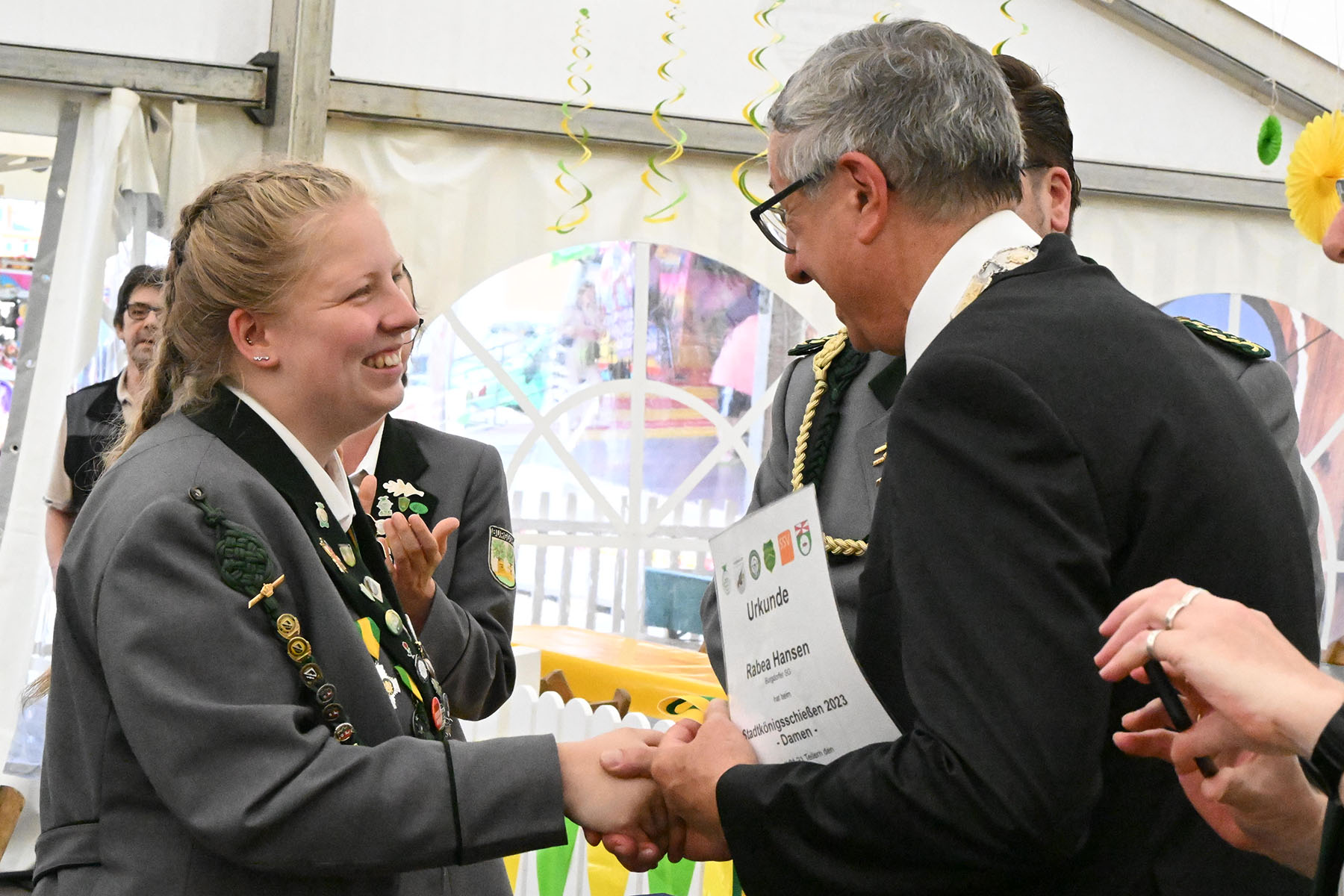 Zur Stadtjugendkönigin wurde Kim Scharringausen vom SSV Schillerslage mit einem 164,07 Gesamtteiler proklamiert. Sie verwies Leah-Sopie Bähre (Burgdorfer Schützengesellschaft, 171,46) und Pica Thiesen (SV Hülptingsen, 219,39) auf die Plätze 2 und 3.