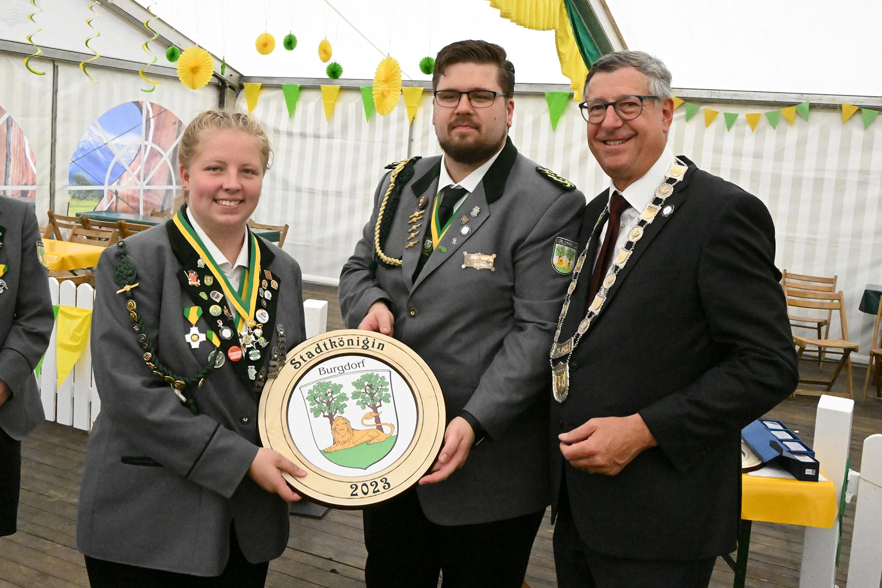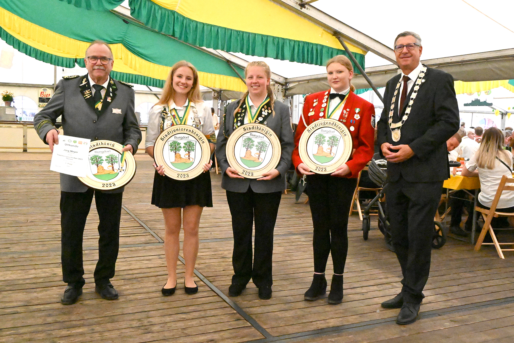 Am heutigen Sonnabend, 24. Juni 2023, wurden die Burgdorfer Stadtkönige im Festzelt des Burgdorfer Volks- und Schützenfestes bekannt gegeben. Besonders stolz ist hierbei die Burgdorfer Schützengesellschaft, die von vier Titeln gleich drei Majestäten stellen konnten.