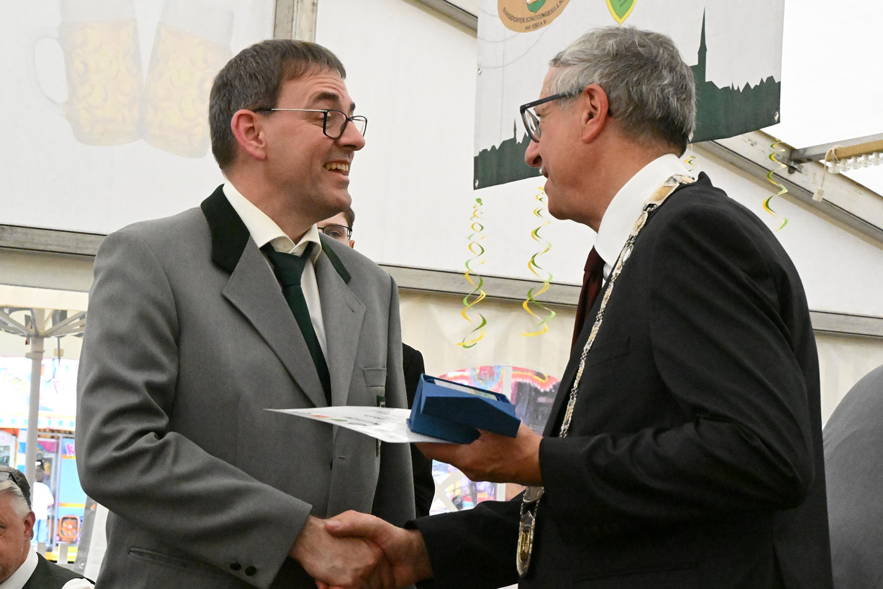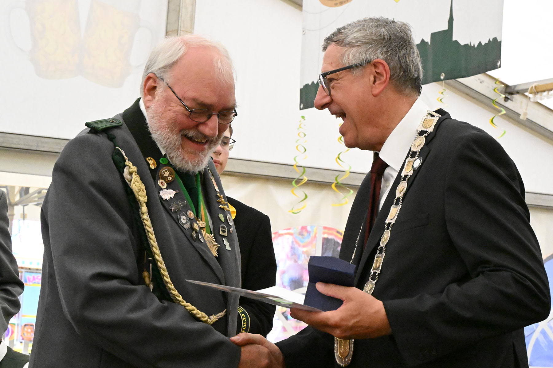 Die Würde des Stadtkönigs musste in Abwesenheit verliehen werden. Jörg Meyer gewann mit einem 342,10 Teiler. Er konnte seine Scheibe allerdings nicht persönlich entgegennehmen. Auf die weiteren Plätze kamen Gerhard Redeker (394,70) und Michael Reh (416,40).