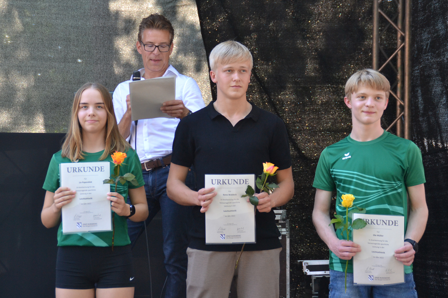Im Rahmen des diesjährigen Weinfestes wurden am gestrigen Freitag, 18. August 2023, auf dem Alten Markt in Burgwedel, die besten Sportlerinnen und Sportler der Stadt ausgezeichnet.