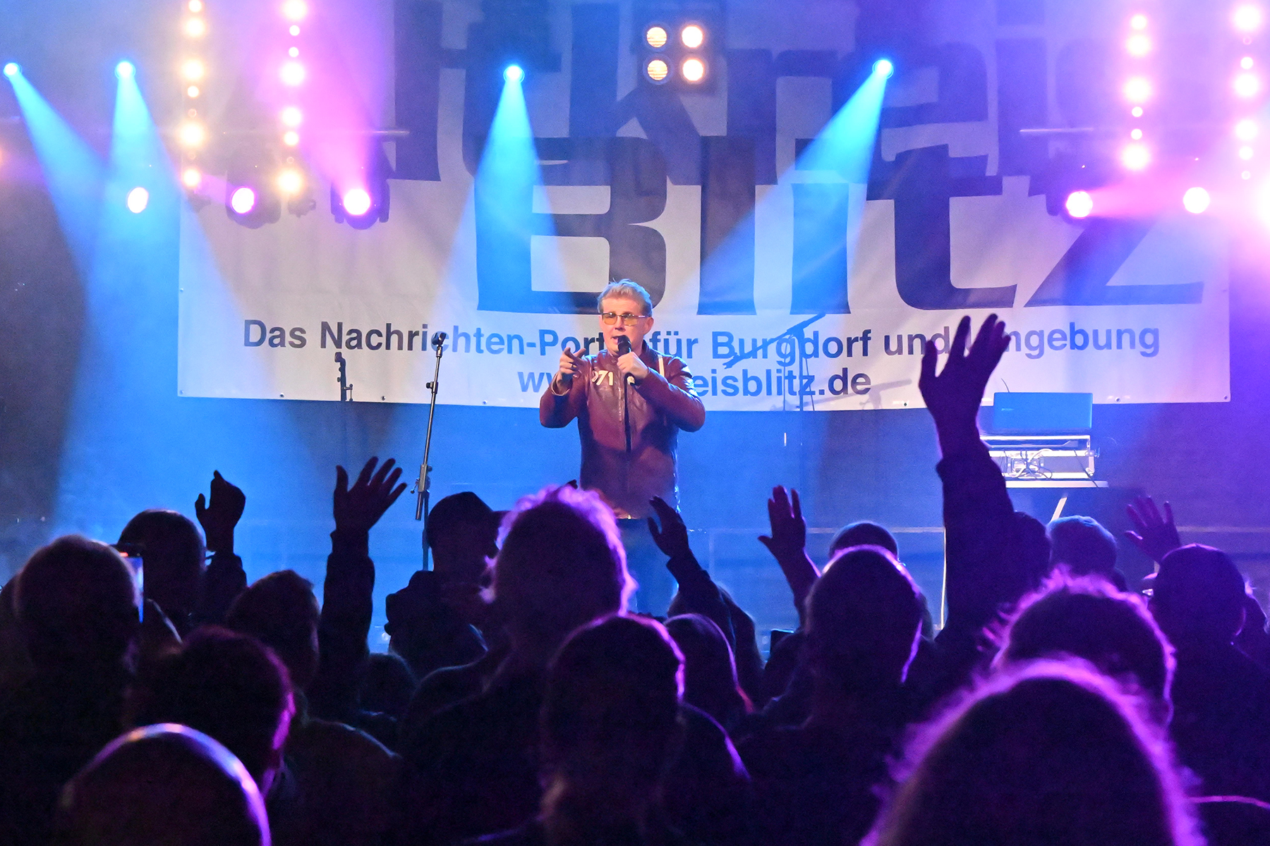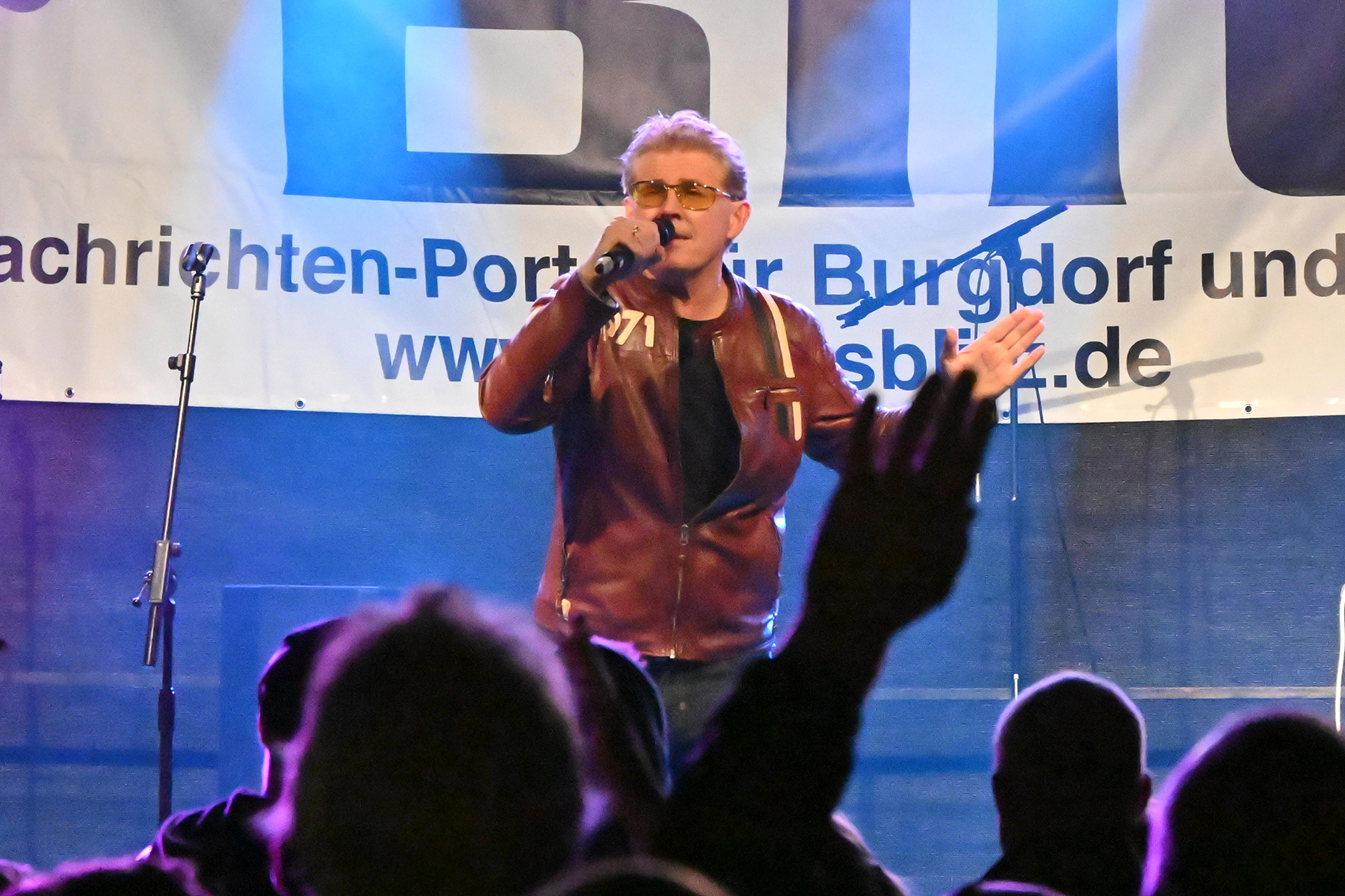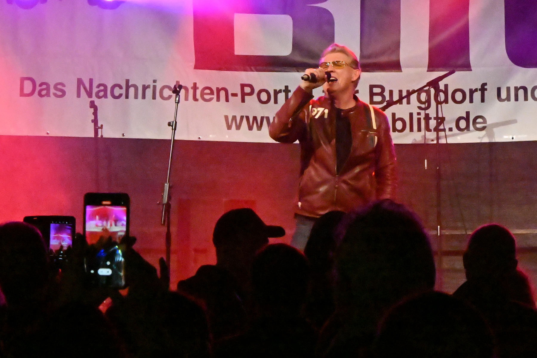 Markus prüfte bei seinem anschließenden Auftritt dann noch einmal, wie textsicher die Gäste bei den Hits der 80er sind, denn "ich sehe viele junge Gesichter hier vor der Bühne", so Markus. Doch bei Nenas "99 Luftballons", Geier Sturzflugs "Bruttosozialprodukt" und Hubert Kahs "Sternenhimmel" wurde klar: Mitsingen ist kein Problem. "Mein lieber Schwan, ihr kennt Euch aus", so der Musiker, der zu Beginn gleich seinen Hit "Ich will Spaß" zum Besten gab. Spaß hatten auf jeden Fall alle. Nach rund einer Stunde wurde auch er nicht ohne Zugabe entlassen. Mit "Viva Colonia" und "Ich will Spaß" in der Unplugged-Version verabschiedete er sich vom Publikum in Burgdorf.