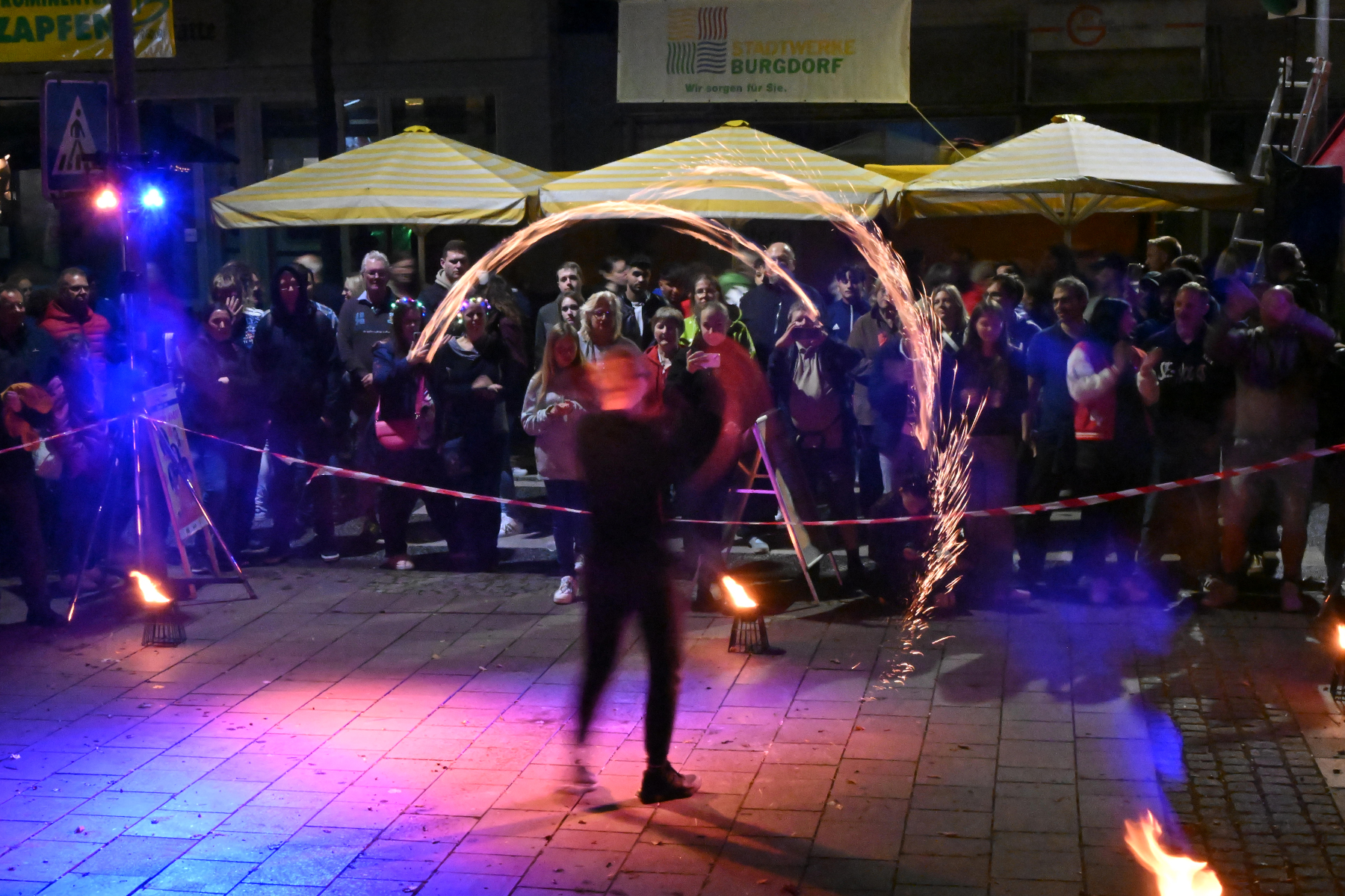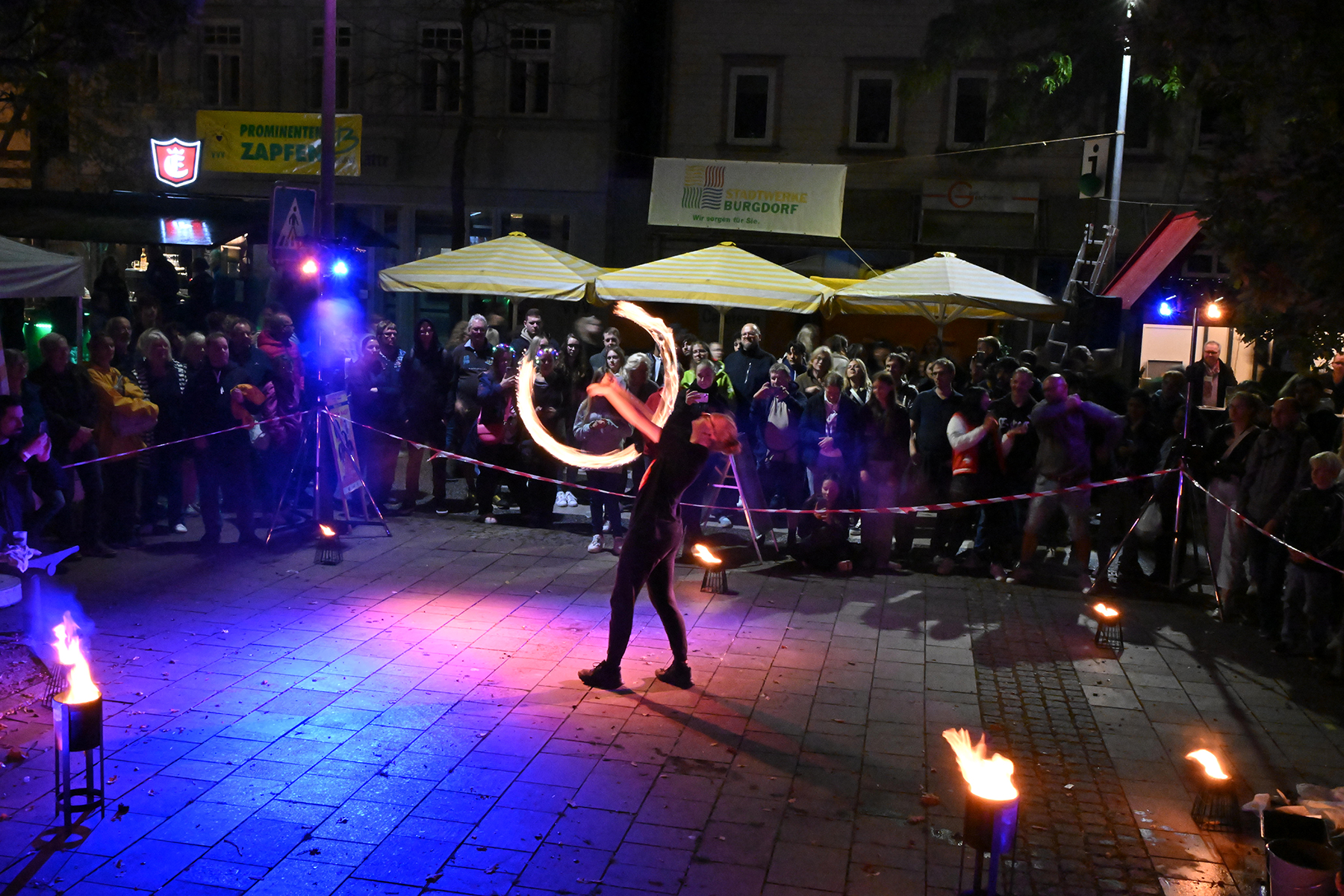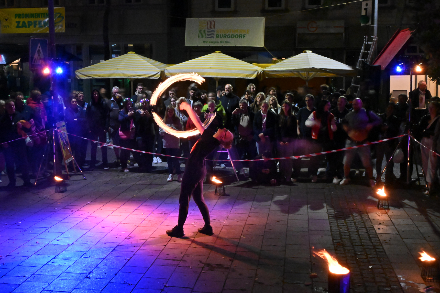 Da trübten auch zwei kleine Regenschauer der Stimmung nicht ein: Am gestrigen Freitag, 29. September 2023, erlebte das Stadtfest Oktobermarkt in Burgdorf den musikalisch wohl besten Auftaktfreitag seit Jahren. Auf den fünf Bühnen standen ausnahmslos hochkarätige Musiker. Da war es schon schwer, sich für einen Favoriten zu entscheiden..