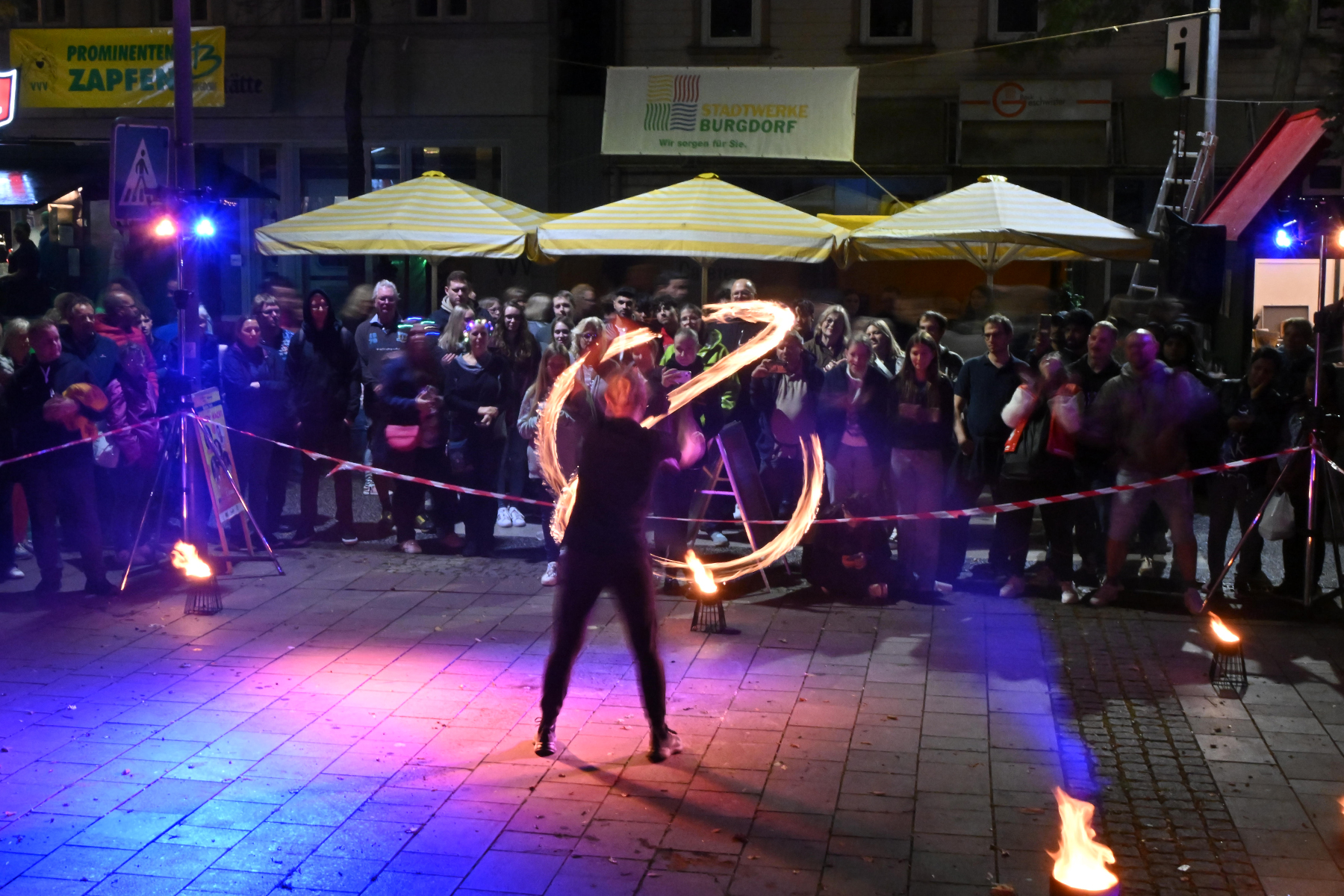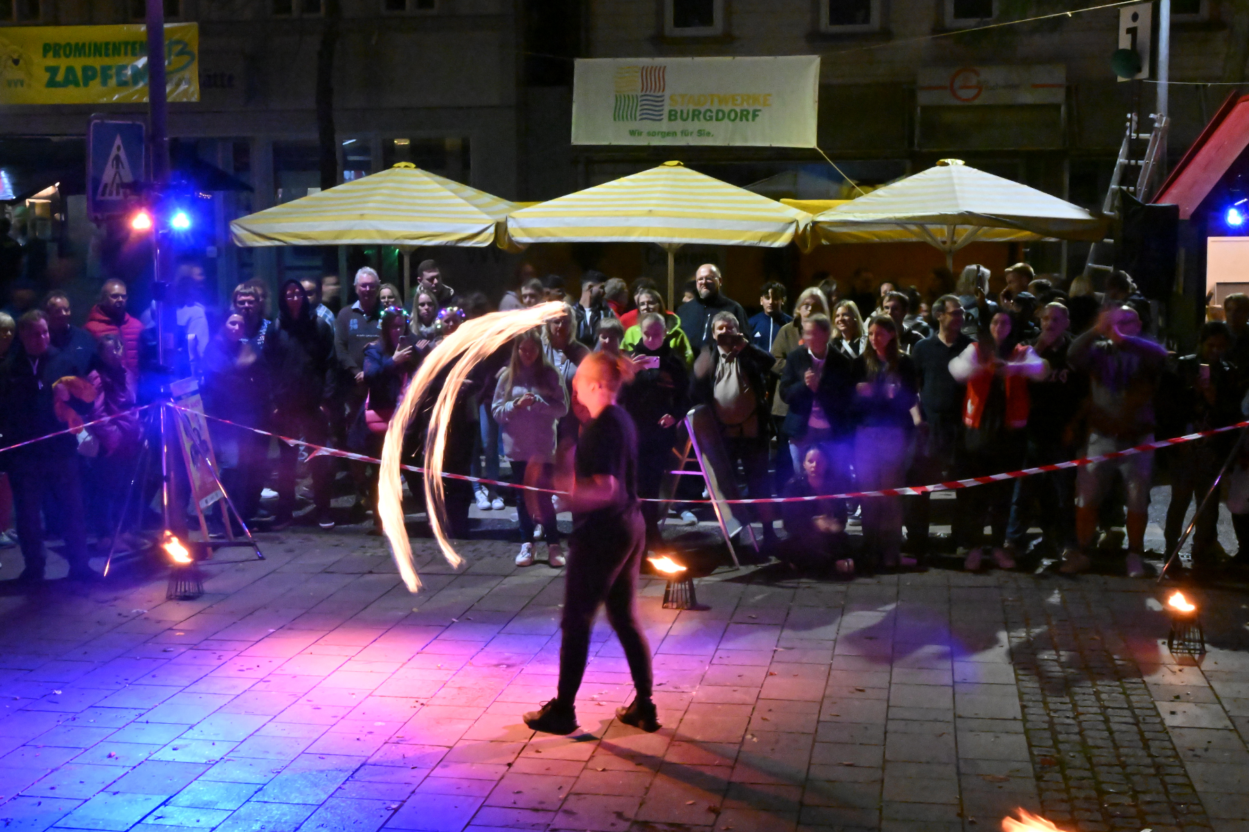Da trübten auch zwei kleine Regenschauer der Stimmung nicht ein: Am gestrigen Freitag, 29. September 2023, erlebte das Stadtfest Oktobermarkt in Burgdorf den musikalisch wohl besten Auftaktfreitag seit Jahren. Auf den fünf Bühnen standen ausnahmslos hochkarätige Musiker. Da war es schon schwer, sich für einen Favoriten zu entscheiden..