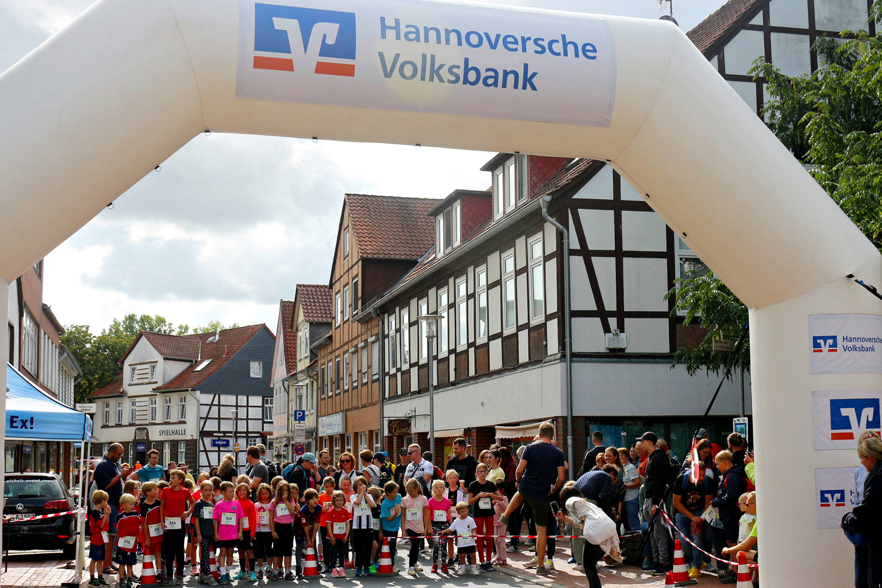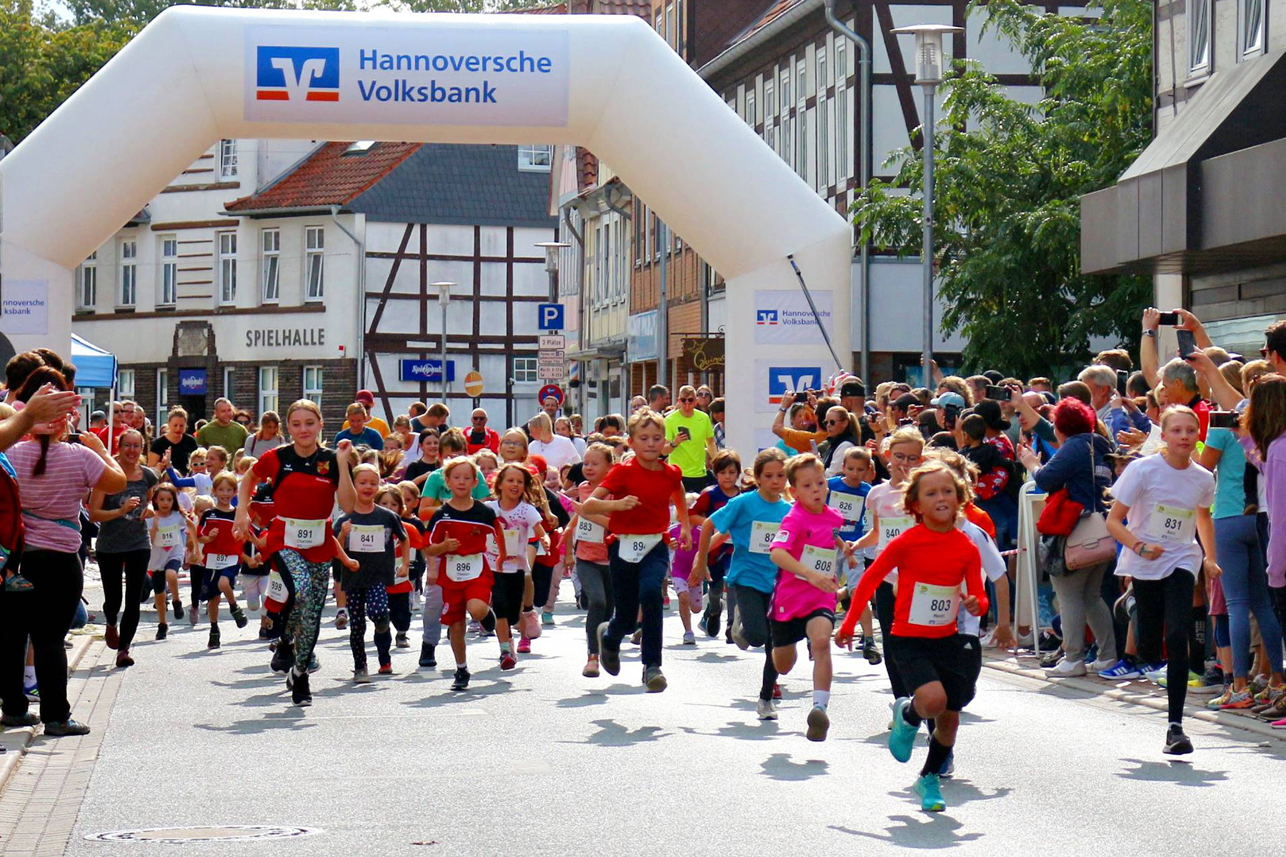 Was war passiert? Nachdem HAZ/NP-Moderator Christoph Dannowski die jüngsten und kleinsten Teilnehmer an der Auebrücke Post-/Braunschweiger Straße auf ihre zweimal 330 Meter-Runde geschickt hatte, machten sich bereits die Läuferinnen und Läufer für ihre 2,5, 5,0 (mit Nordic Walking) oder 10 Kilometer-Strecken entlang der Aue sowie durch Schloss- und Stadtpark locker.