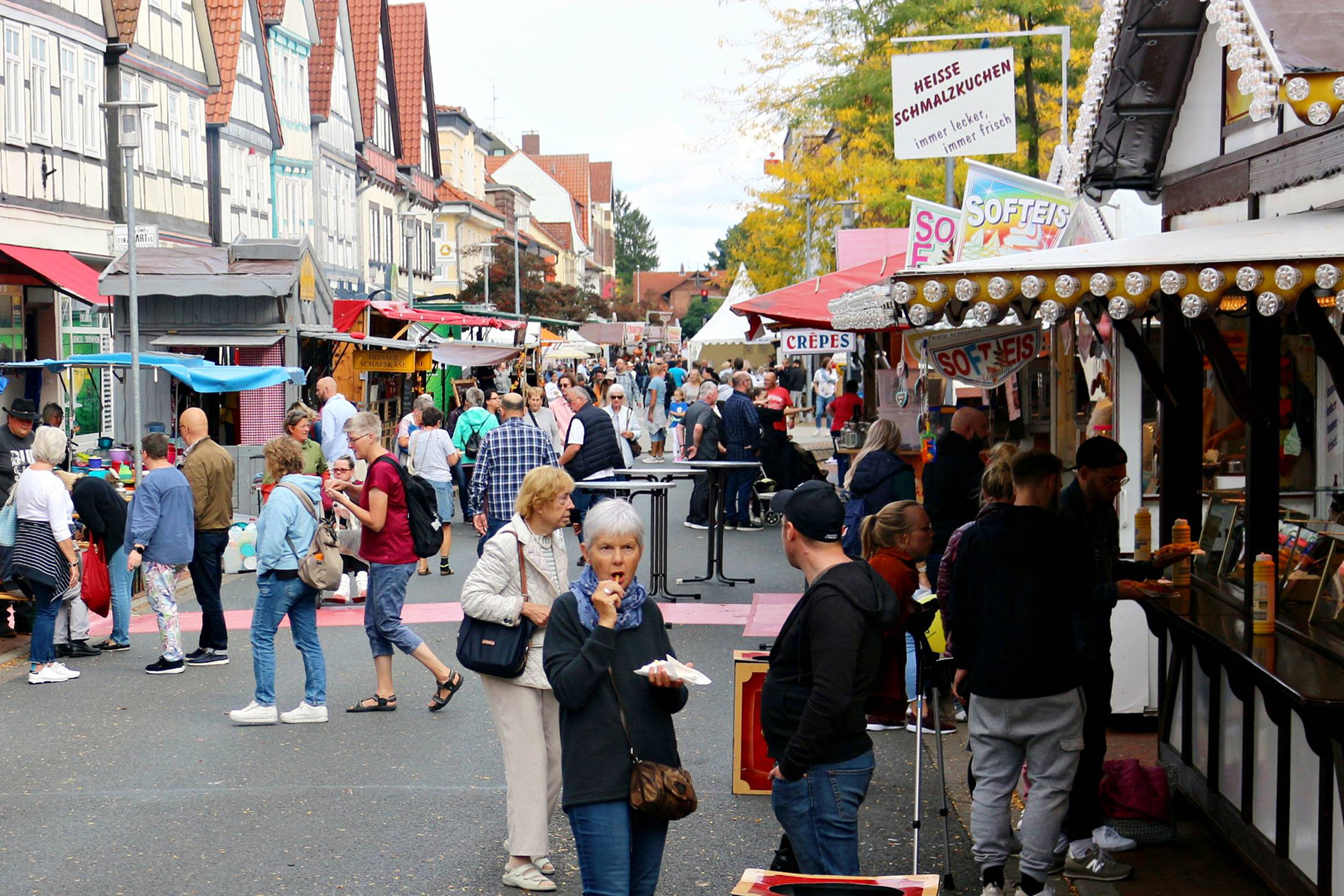 Gegen Ende des wärmsten neunten Monats der vergangenen Jahre, am Freitag, 29. September 2023, begrüßten Burgdorfs Bürgermeister Armin Pollehn und die emsigen Ehrenamtlichen im Verkehrs- und Verschönerungsverein (VVV) um Karl-Ludwig Schrader einmal mehr Gäste aus Nah und Fern zum Stadtfest Oktobermarkt.