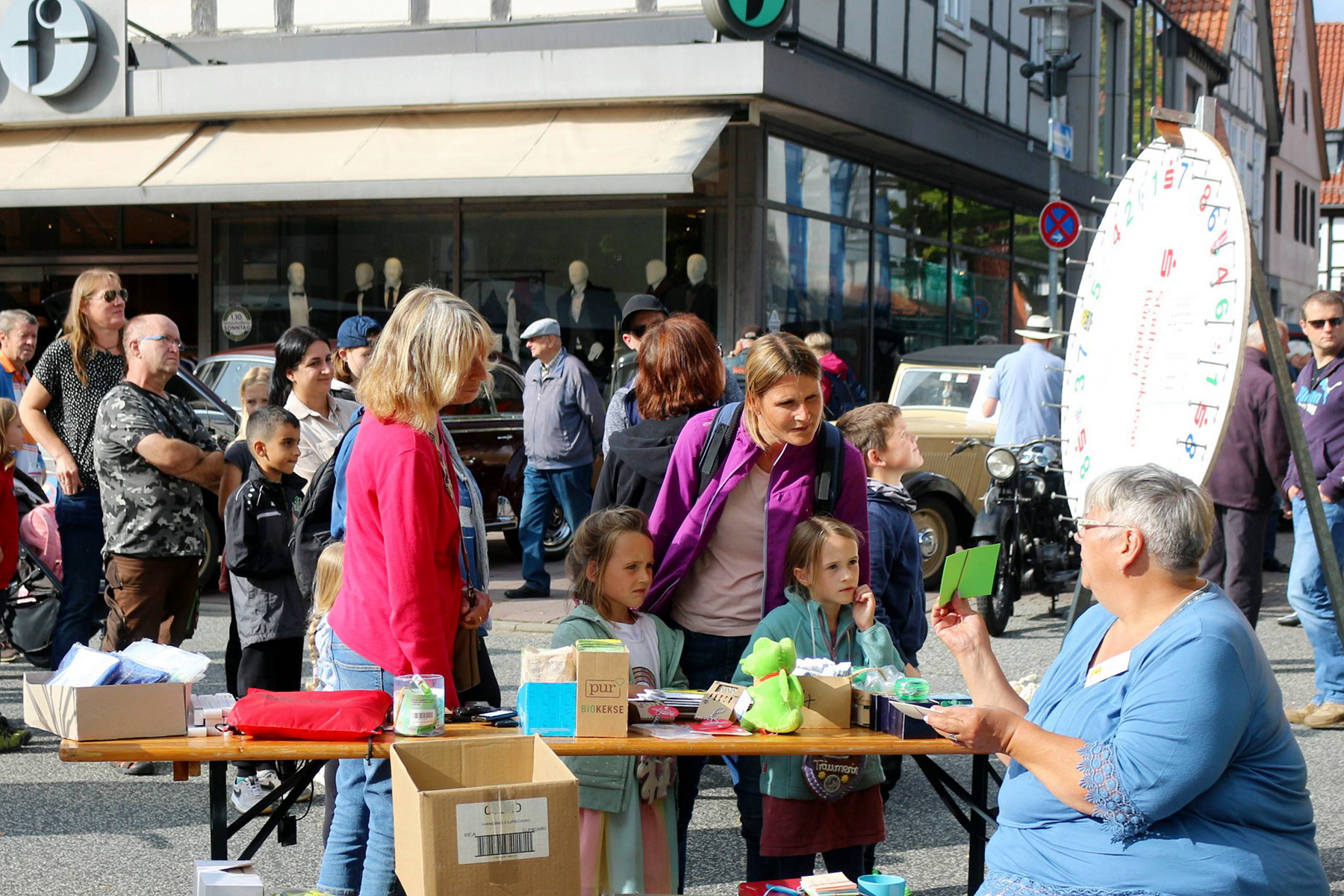 Wiederholt lockten Aktionsflächen, unterschiedliche Imbiss- und Getränkeangebote sowie fünf Bühnen zahlreiche Besucher auf die Marktstraße in die Innenstadt. Nach einem Aufstieg im Turm der St. Pankratiuskirche, der dann bei bestem Herbstwetter mit einem klaren Blick zum Harzer Brocken belohnt wurde, lohnte sich zu Füßen der Kirche ein Abstecher zu musikalisch-maritimem Momenten mit Seemannsliedern vom Burgdorfer Shantychor "Graf Luckner".