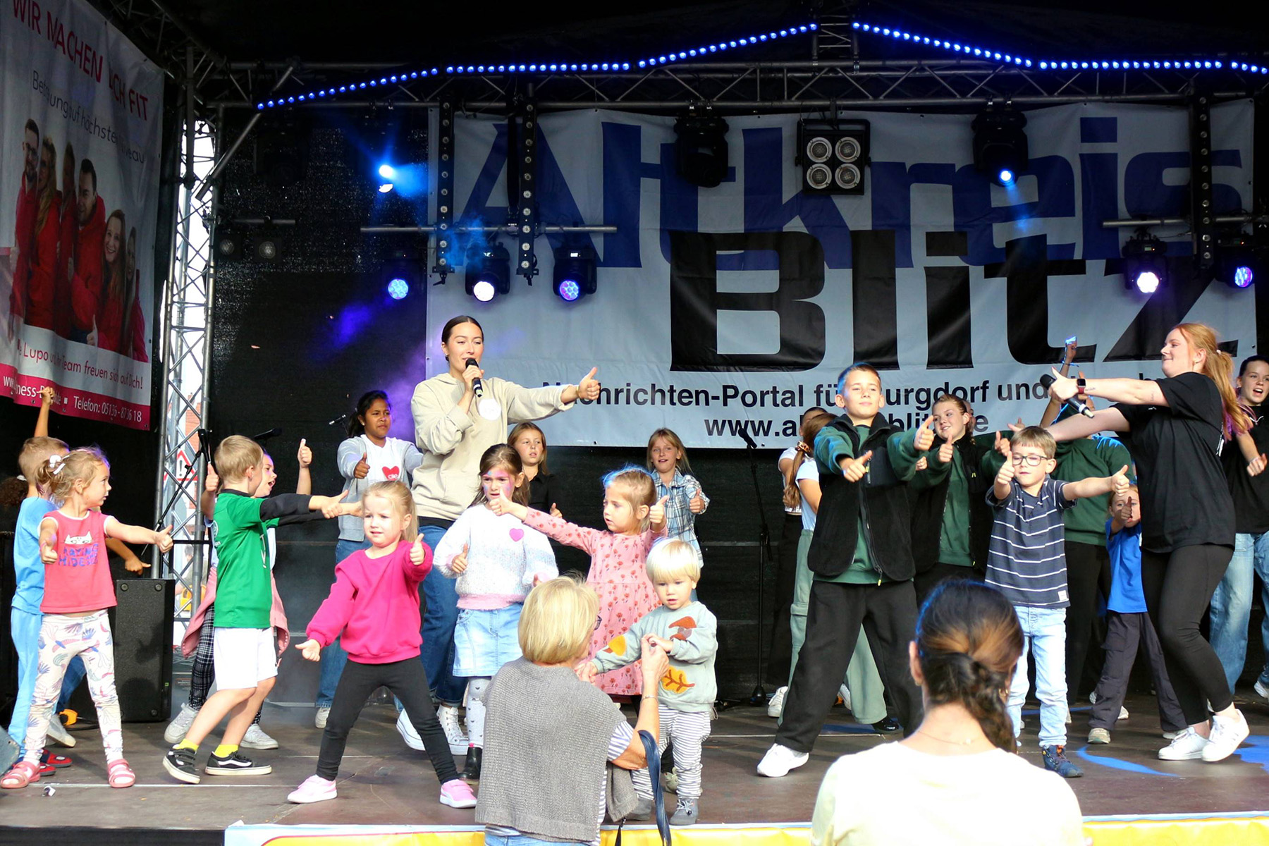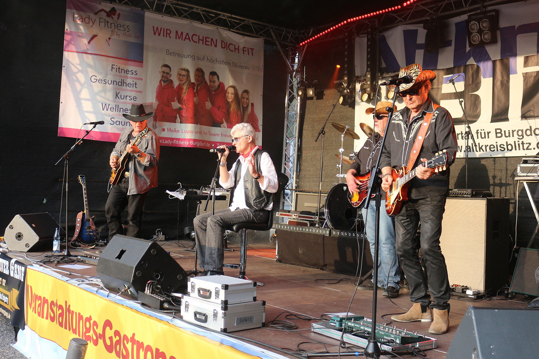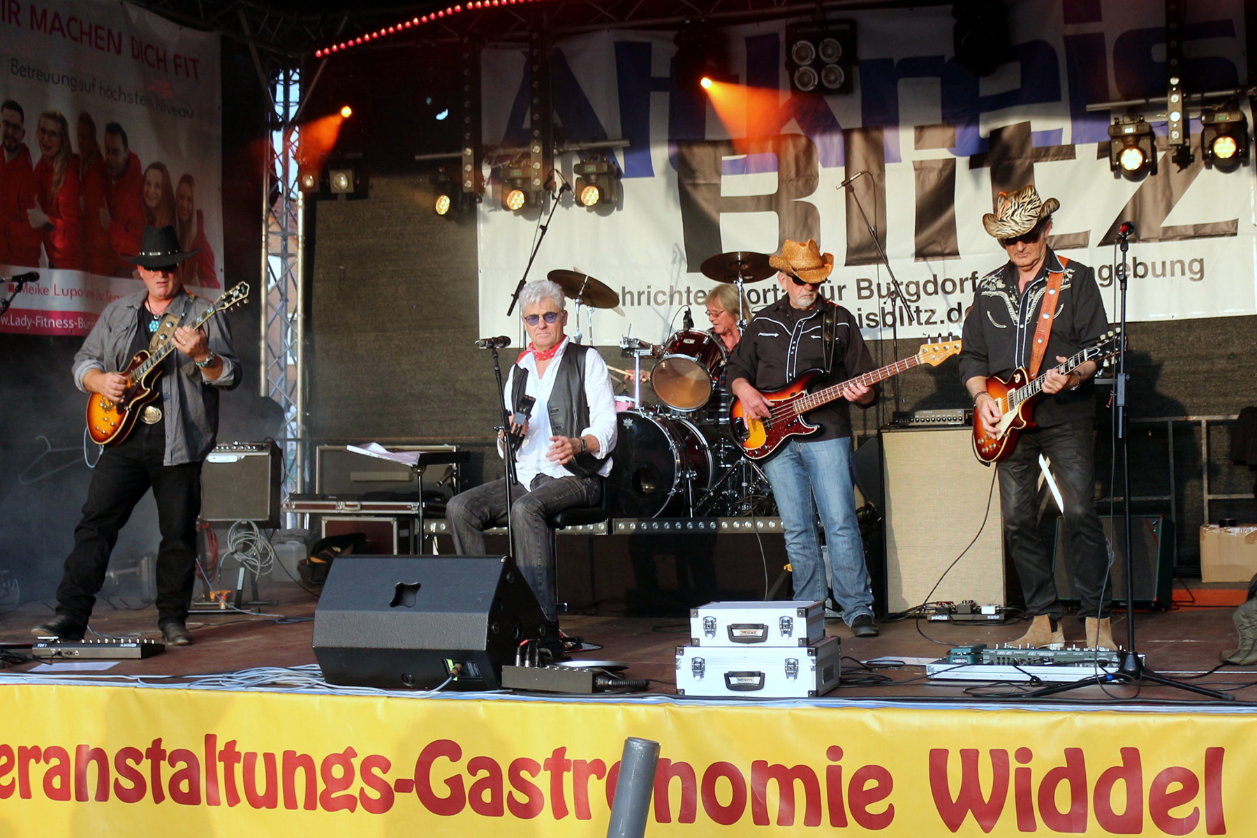 Auf der Widdel/AltkreisBlitz-Bühne an der Post tobten sich die kleinen Gäste unter der Regie des Burgdorfer Tanzstudios "B5" aus, die sich dann auch noch für den frühabendlichen traditionellen Sparkasse-Laternenumzug durch den Stadtpark vorbereiten konnten. Anschließend sorgte die "Green River Gang", die Creedance Clearwater Revival (CCR) Band aus Hannover, für Bewegung vor der Postbühne. Das US-amerikanische Original CCR um Gitarrist und Sänger John Fogerty gründete sich 1967 in El Cerrito im kalifornischen Contra Costa County. Dass sich Sänger Frank Seidat von der kehligen Stimme von John Fogerty hat inspirieren lassen, war bei seiner Performance der CCR-Hits mit den vier weiteren Gang-Mitgliedern an den Instrumenten, "Green River", "Hey Tonight", und "Proud Mary", "Bad Moon Rising" oder "Have You Ever Seen The Rain", nicht zu überhören.