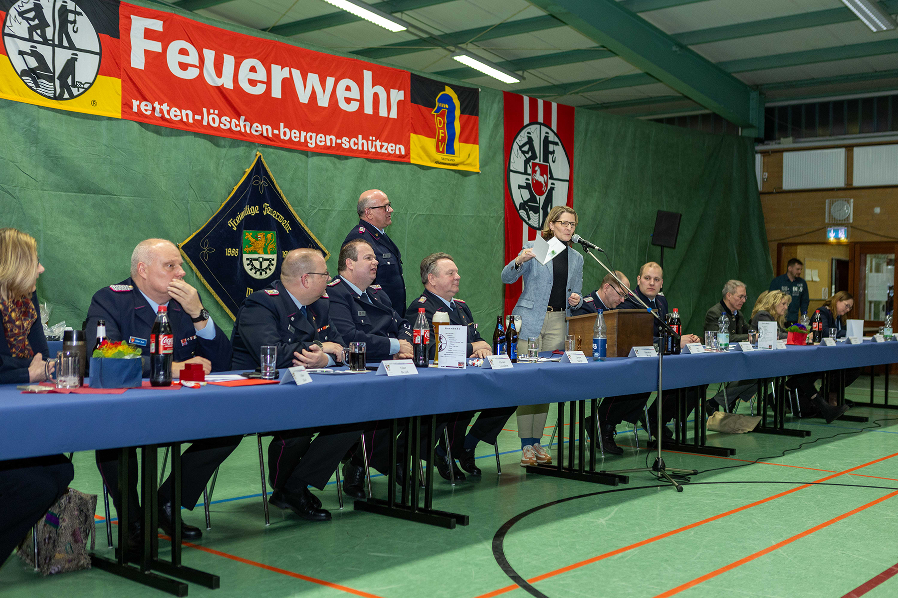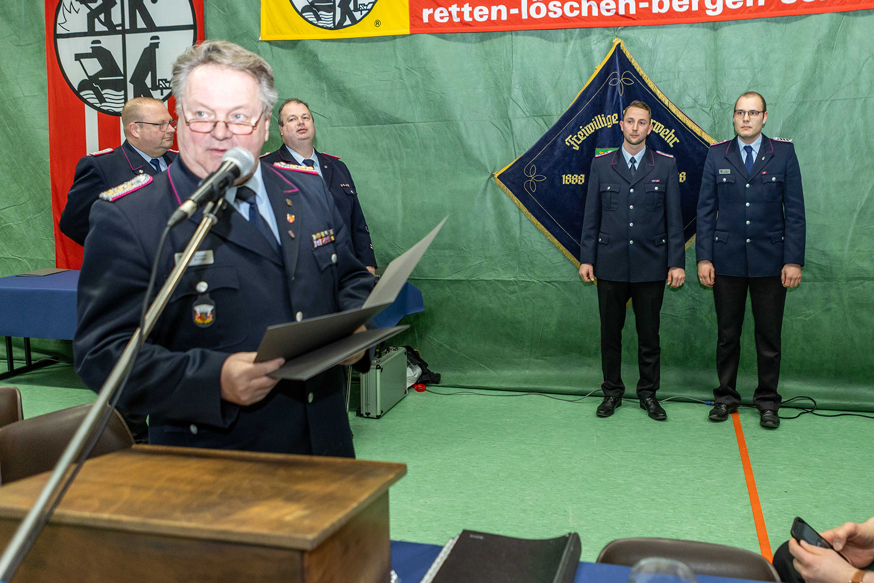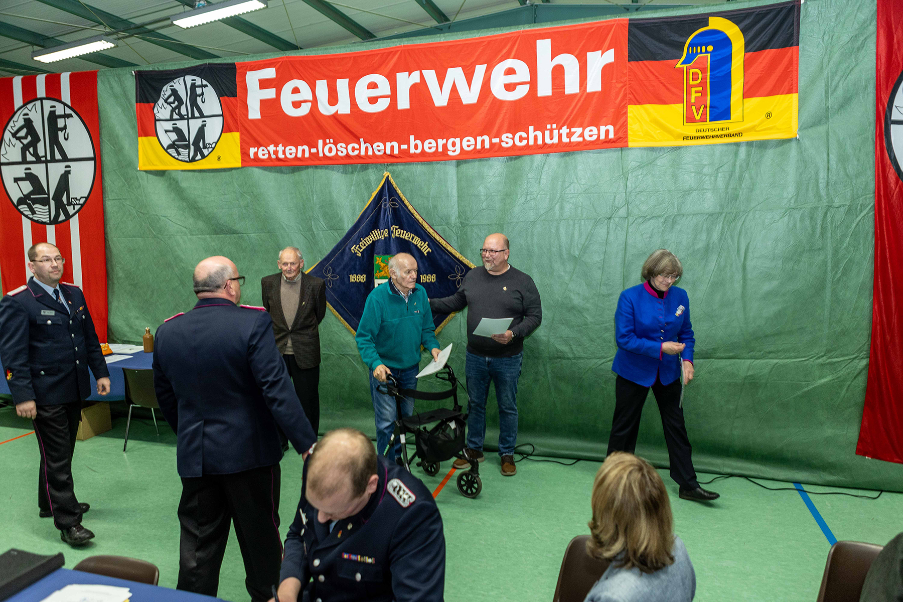Mit dem Feuerwehr-Ehrenzeichen des Landes Niedersachsen für 25-jährige aktive Mitgliedschaft in der Feuerwehr wurden Carsten Dedeke und Nick Ledderbohm geehrt. Das Feuerwehr-Ehrenzeichen des Landes Niedersachsen für 40-jährige aktive Mitgliedschaft wurde Christian Lindemann verliehen.