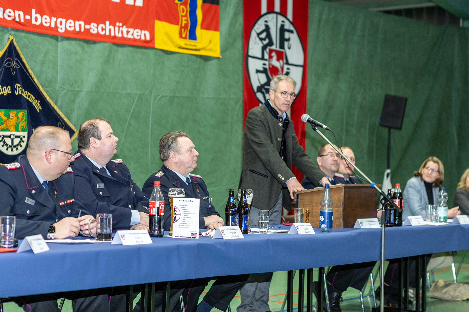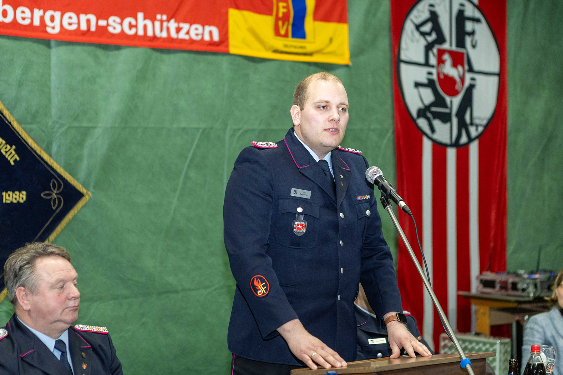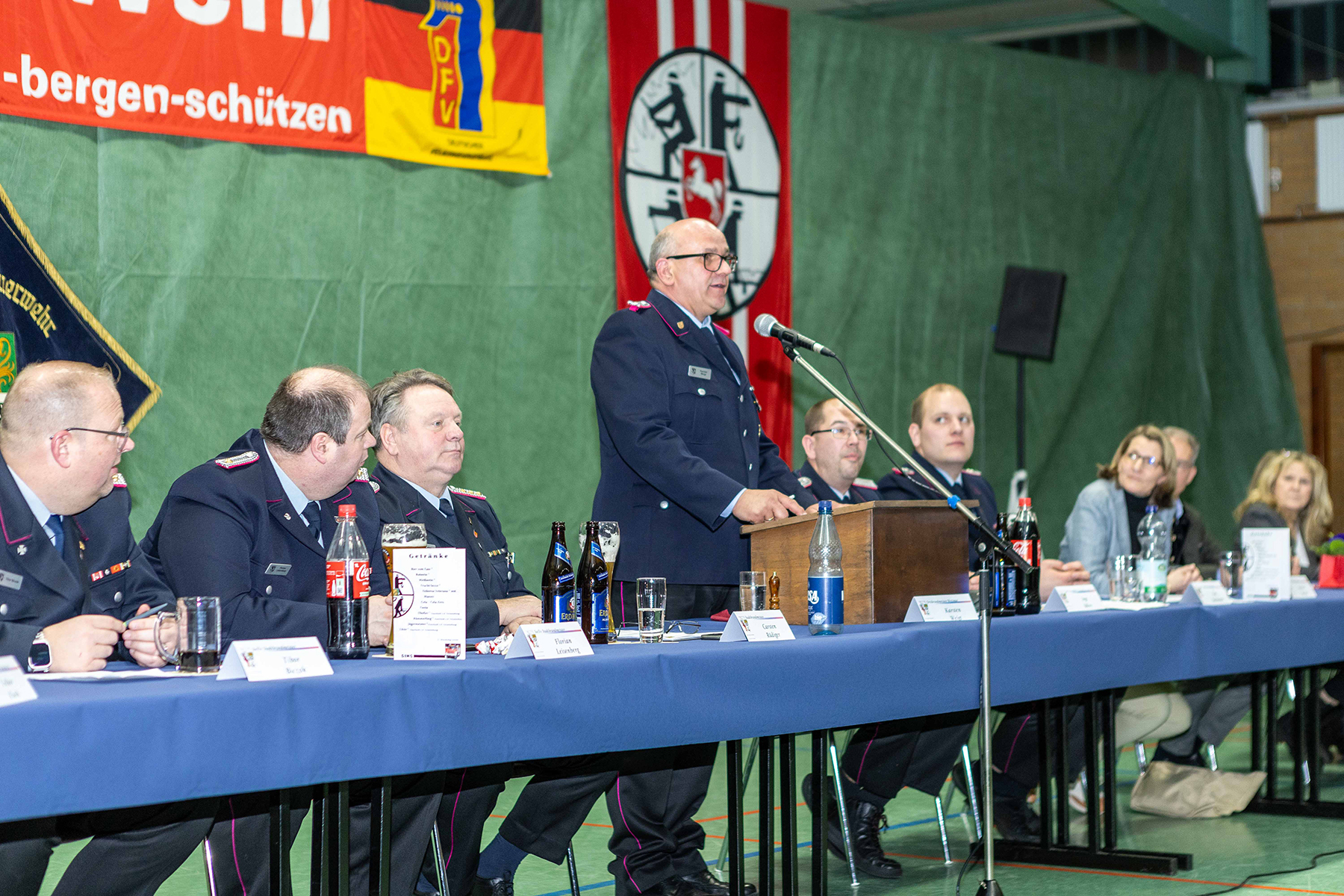 59 Aktive, ein Plus von sieben Aktiven im Jahresverlauf, zählt die Stützpunktfeuerwehr, gab der Ortsbrandmeister bekannt, hinzu kommen 8 Mitglieder in der Jugendfeuerwehr, 26 Musiker, 11 Mitglieder in der Alters- und Ehrenabteilung sowie 363 fördernde Mitglieder, die ein Jahr zuvor noch 252 zählten. Im Jahresvergleich war die Anzahl der Einsätze von 40 im Jahr 2022 auf 24 im Jahr 2023 gesunken. Diese unterteilten sich in 15 Brandeinsätze und 9 technische Hilfeleistungen. 426 Stunden wurden in den Einsätzen geleistet. Insgesamt kamen alle Abteilungen der Ortsfeuerwehr auf 11.517 ehrenamtlich geleistete Stunden.