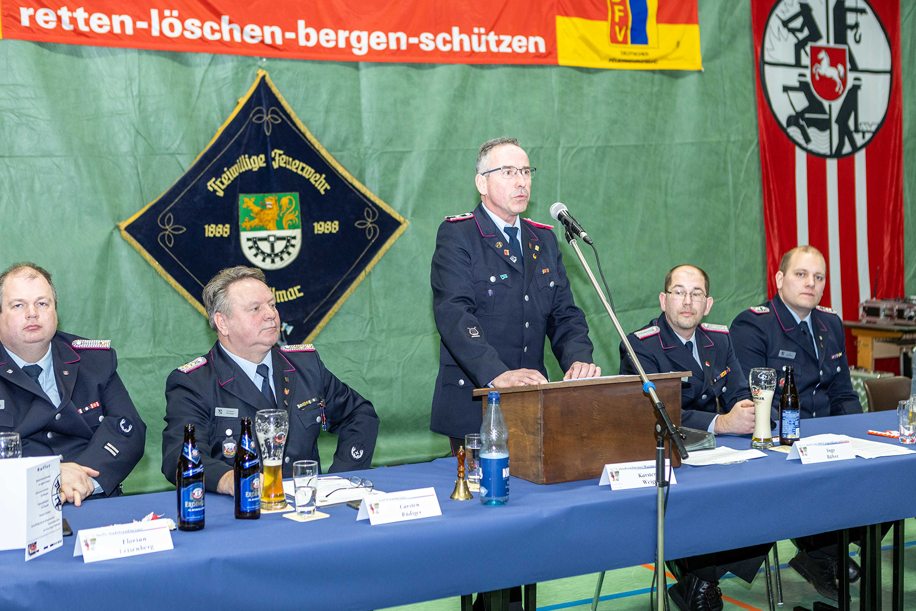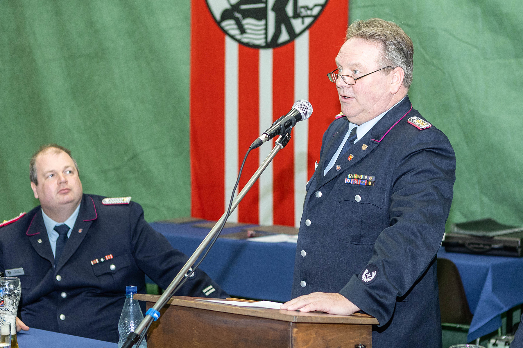 Bürgermeisterin Ortrud Wendt wie auch Ortsbürgermeister Michael Kranz bedankten sich bei den Feuerwehrkräften für ihren Einsatz. Ortsbrandmeister Karsten Weigt gab den Dank am Ende der Versammlung weiter: "Ich bin hier nur der gewählte Ortsbrandmeister. Den Rest macht ihr", betonte er. Er richtete auch persönliche Worte an die Anwesenden. Er sehe keinen Sinn in neuen Dienstkleidung. "Wir bekommen, Gott sei Dank, den Nachwuchs aber doch nicht, weil wir eine modische tolle Uniform tragen, nein, weil wir einfach geile Typen sind und Stolz auf unser Ehrenamt", betonte er "Und nur weil wenn wir beim Schützenfestumzug oder Wettkämpfen Traditionen bewahren und auch alte Lieder singen, bedeutet nicht, wir sind rechts. Das wird hier nicht geduldet", unterstrich er. Zudem könne er sich mit den geplanten Online-Ausbildungen nicht anfreunden. "Gute Feuerwehrfrauen und -männer gehen zur Aus- und Weiterbildung doch auf Schulen oder Akademien, und nicht zu Hause im Jogginganzug auf dem Sofa", erklärte Karsten Weigt.