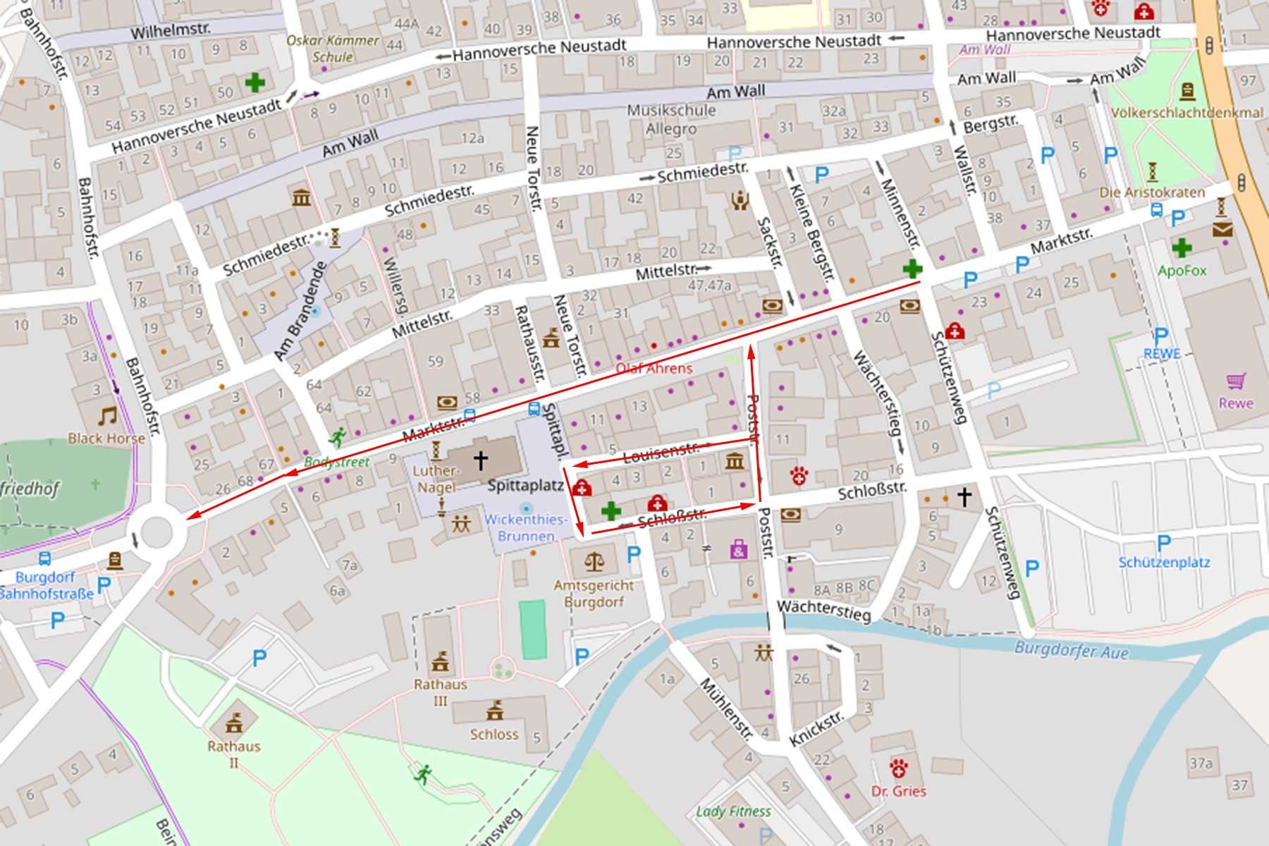 Der Verkehrsversuch in der Marktstraße beginnt am 2. April 2024. Dies teilt die Stadt Burgdorf am heutigen Montag, 4. März, mit. Ab sofort bis zum 15. März ist die Teilnahme an der Vorabbefragung möglich. Die Befragung ist unter diesem Link zu finden. Während des Verkehrsversuchs findet vom 20. bis 31. Mai eine weitere Befragung durch die Stadt Burgdorf begleitend statt.