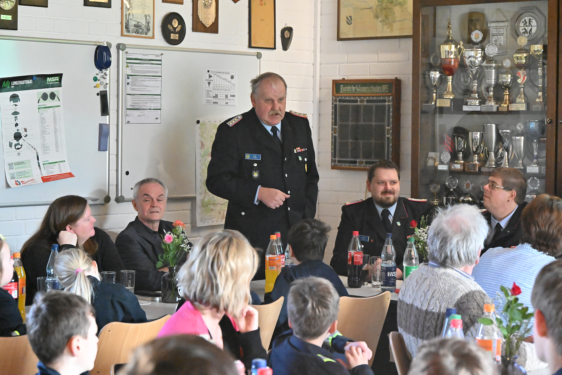 "Ich bin stolz auf das, was ihr hier in der Jugendfeuerwehr und Kinderfeuerwehr macht", lobte auch Ortsbrandmeister Reinhard Nicks. Es sei "eine super Sache und auch extrem wichtig für die Ortsfeuerwehr." Allerdings stehe der Spaß im Vordergrund, so der Ortsbrandmeister.