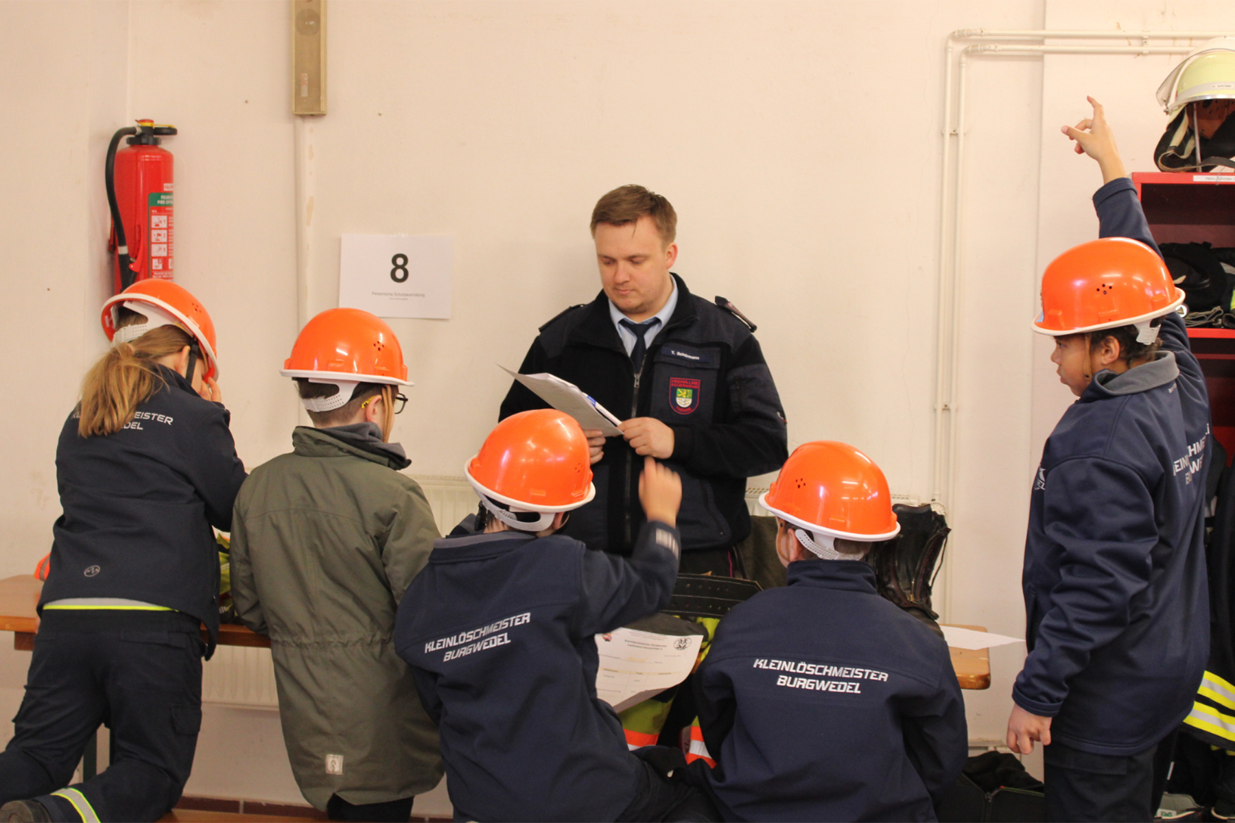 Für die Menge an Kindern brauchte es auch entsprechend viel Personal drumherum. Neben den zwei Kinderfeuerwehrwarten Alexia Sonnenberg (Engensen) und Christoph Schöttner (Thönse) waren zwölf Prüfer aus ganz Burgwedel sowie drei Betreuerinnen anwesend. Darunter auch ein Mitglied der Engenser Jugendfeuerwehr, das kurz vor seinem Übertritt in die Einsatzabteilung steht und so in seinem Werdegang zum Betreuer erste Erfahrungen sammelt.