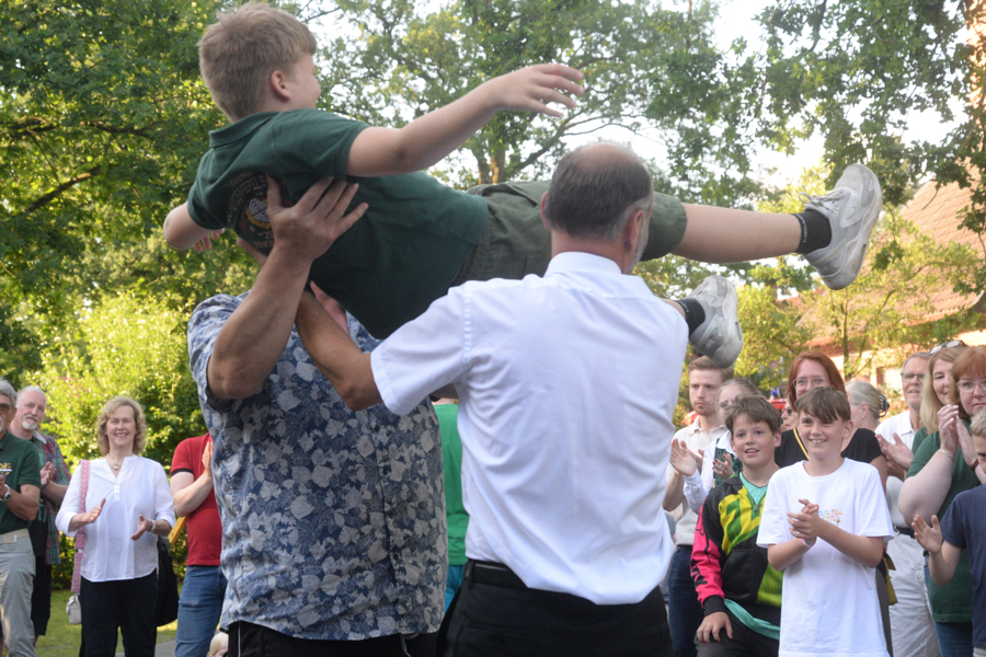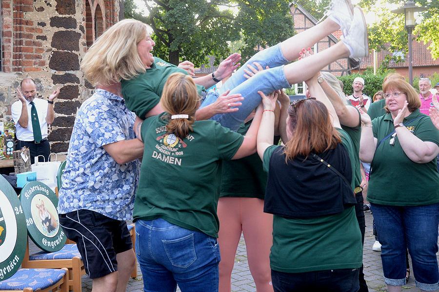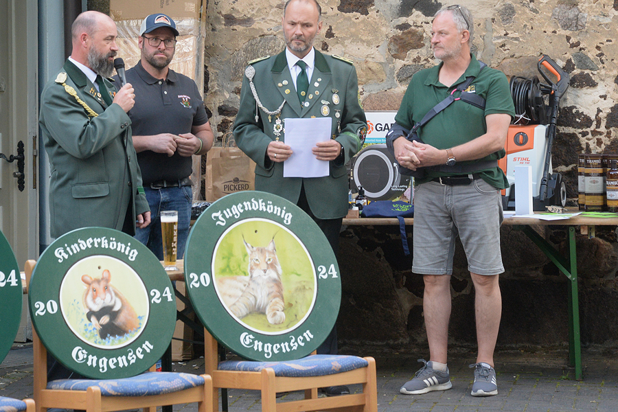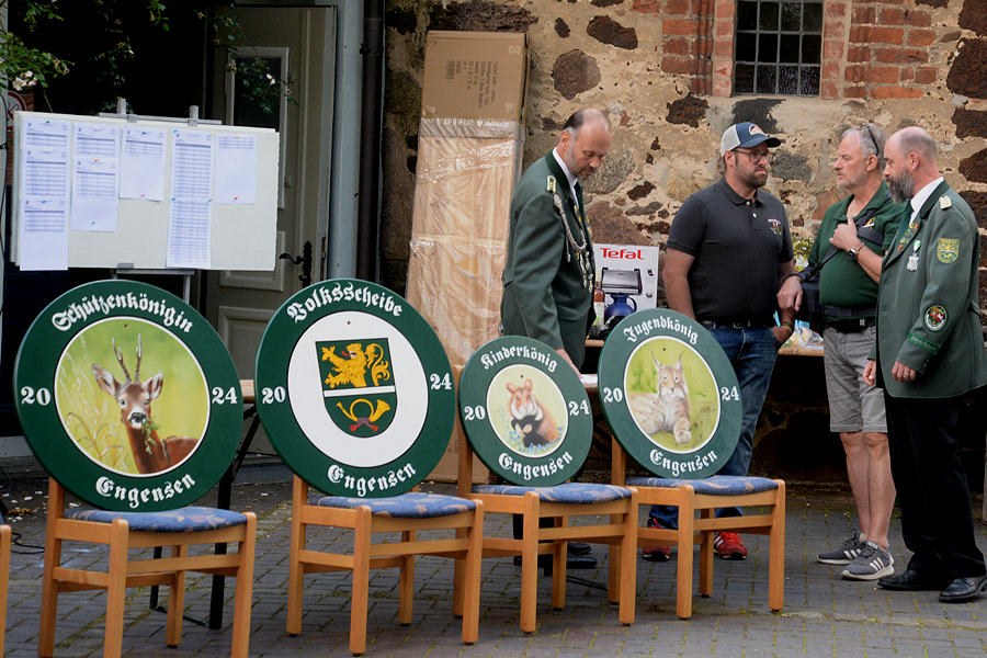 Die Schützengesellschaft "Zentrum" Engensen hat am gestrigen Sonntag, 23. Juni 2024, ihre Majestäten vor dem Vereinsdomizil Am Dorfteich proklamiert. Seit dem 30. Mai konnten an jedem Donnerstag Jugendliche sowie Erwachsene auf die Königswürden sowie auf Pokal- und Sachpreise beim Preisschießen schießen. Der Kinderkönig/in wurde am gestrigen Sonntag mit dem Lichtpunktgewehr ermittelt. Die Königsscheiben für Schützenkönig und Seniorenkönig/in wurden mit dem Kleinkalibergewehr auf 50 Meter ausgeschossen, die Königsscheiben für Schützenkönigin, Juniorenkönig/in, Jugendkönig/in und Volkskönig/in mit dem Luftgewehr auf zehn Meter ausgeschossen.