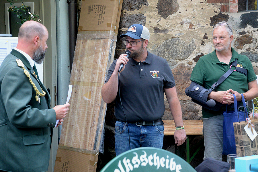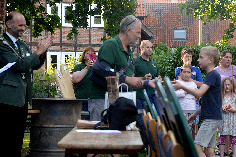 Neuer Volkskönig ist Hennig Stegemerten mit dem 9,3-Teiler. Ihm folgen Kai Bils (23,0 Teiler) und Alea Frank (67,1 Teiler). Insgesamt haben fünf Männer und zwei Frauen beium Wettbewerb um die Volksscheibe teilgenommen. Stegemerten konnte am gestrigen Sonntag die Scheibe nicht vom stellvertretenden Ortsbürgermeister Kristoffer Engelke entgegennehmen. Er war verhindert und musste die Teilnahme deshalb absagen.