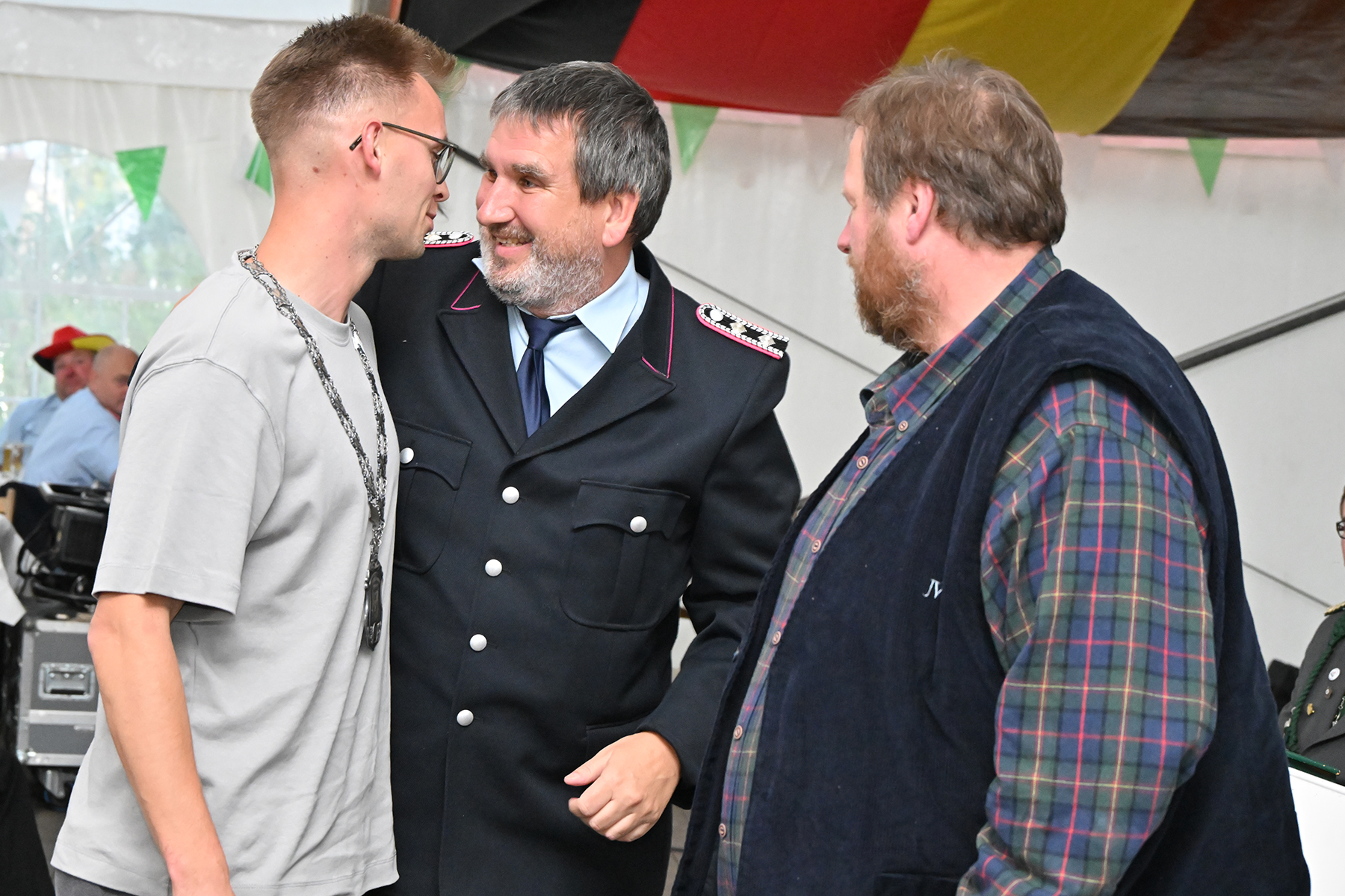 Mit Spannung wurde dann die Bekanntgabe der neuen Könige verfolgt. Der stellvertretende Ortsbürgermeister Burghard Homann verkündete Matthias Müller als neuen Volkskönig, der sich mit seinem 131,4-Teiler durchgesetzt hatte.