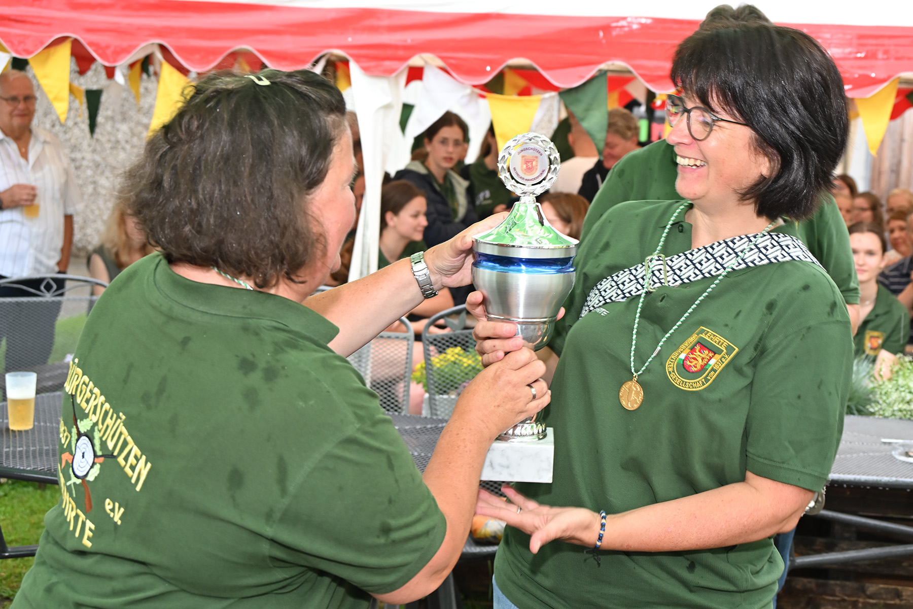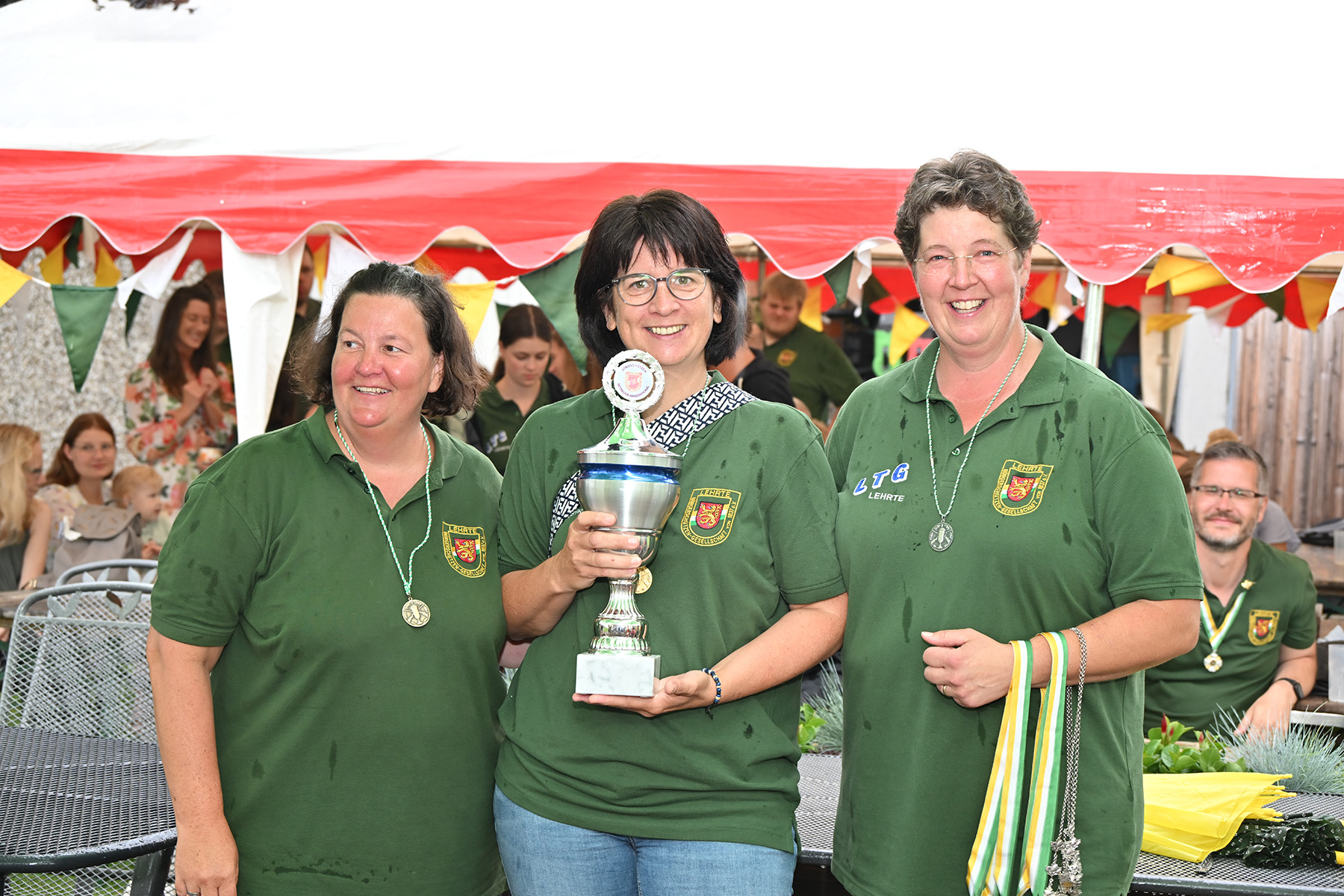 Bei den Damen heißen die Gewinner der Preisscheiben Valentina Münzer (LG Auflage, LG Sitzend und LG Glück), Yvonne Westphal (LG Freihand, Luftpistole Auflage und KK Liegend), Gabriele Bode (Luftpistole), Christiane Blanke (KK Glück) und Kerstin Küster (KK Auflage).