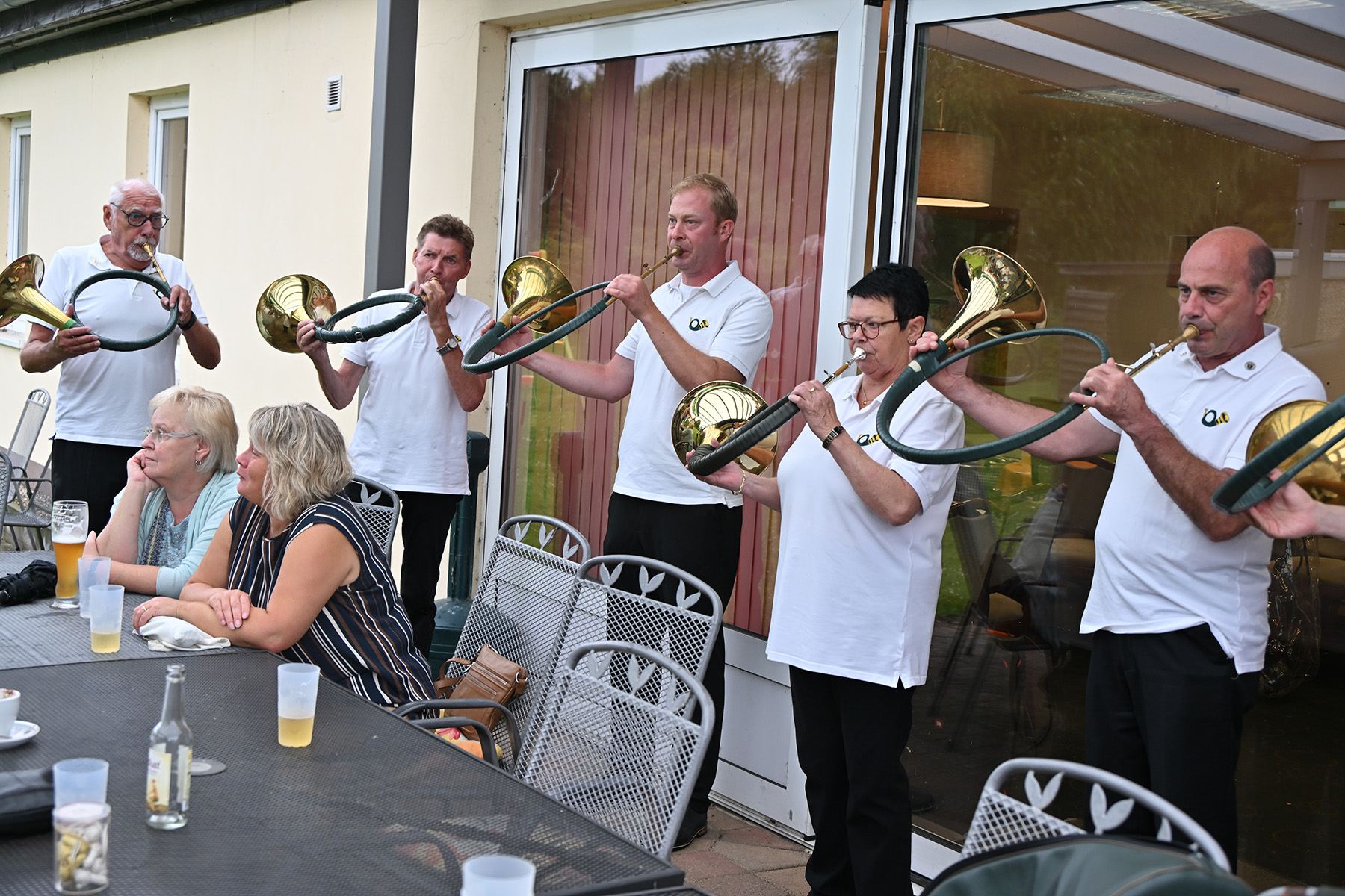 Doch ehe das Geheimnis über die neue Königsriege bekannt gegeben wurde, stand die Bekanntgabe der Vereinsmeister sowie der Sieger der Preisschießen auf dem Programm. Musikalisch begleitet wurden die Feierlichkeiten durch die Jagdhornbläser der BSG.