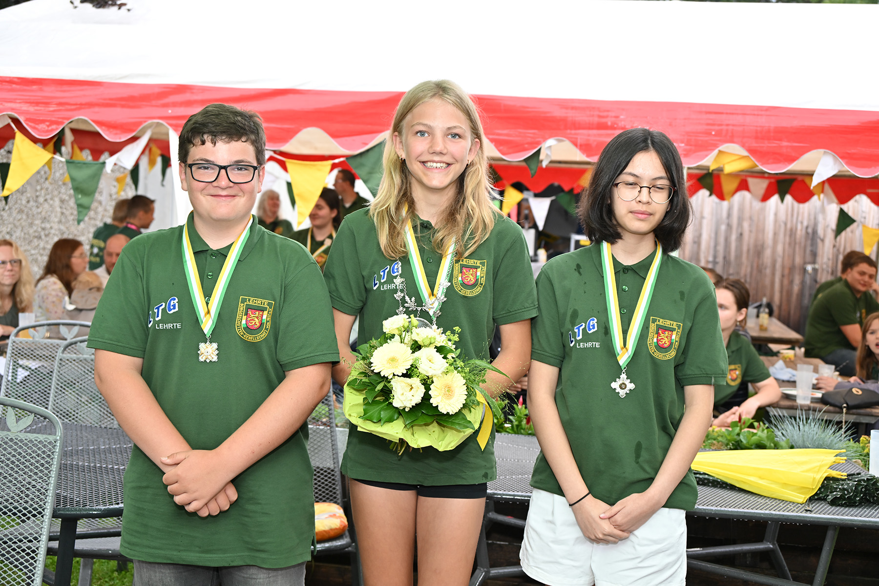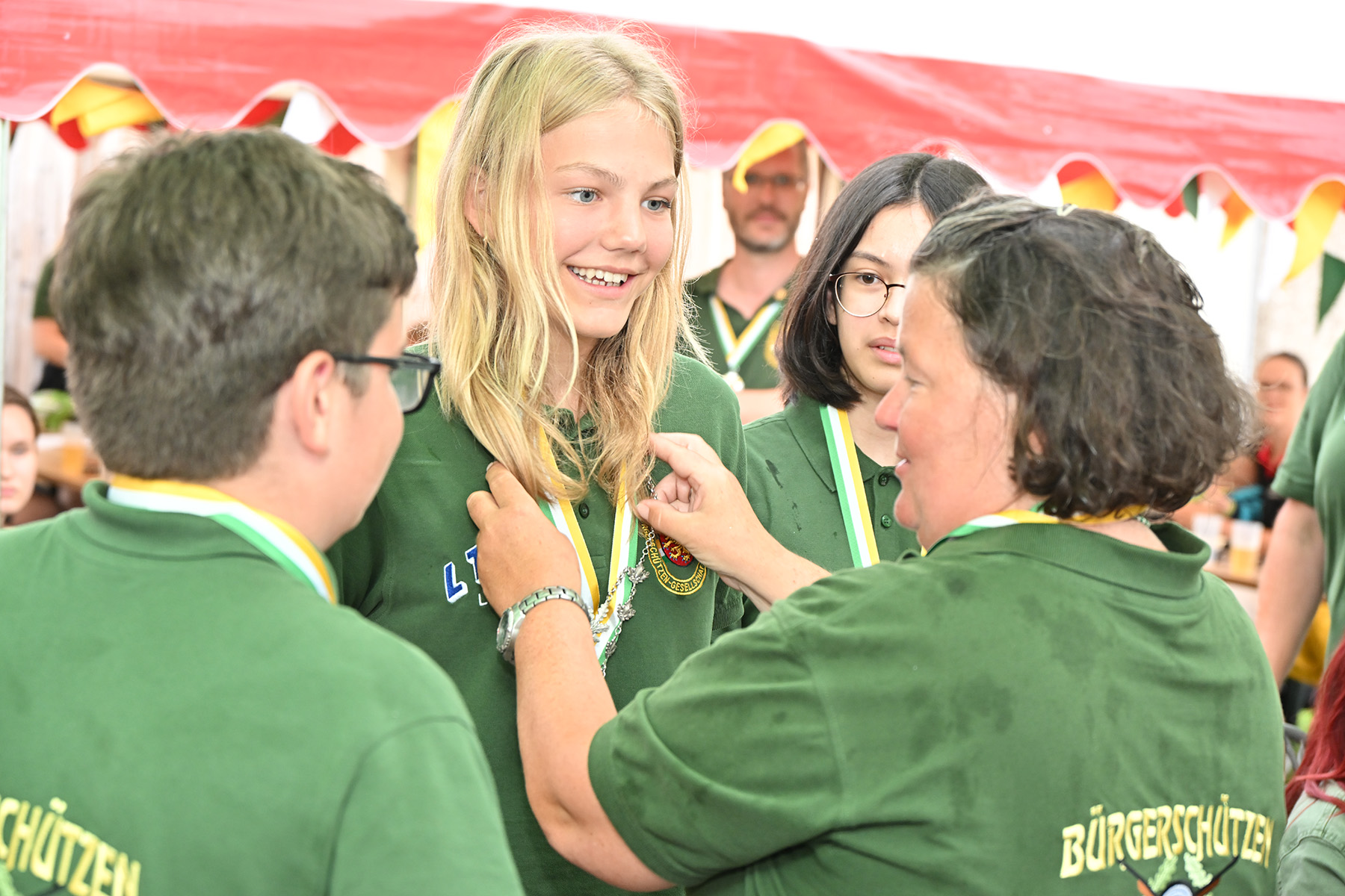 Die Preisscheiben der Jungschützenabteilung, die in diesem Jahr ihr 100-jähriges Bestehen feiert, gewannen Feodor Buchholz (Lichtpunkt), Thore Stengel (Lichtpunkt Glück), Kerstin Westphal (LG Auflage und LG Freihand), Janine Peter (LG Glück), Sören Friedrich (Luftpistole Freihand), Sören Friedrich (Luftpistole Auflage) sowie Joleen Pfeiffer (Lichtpunkt Pokal Wilhelm Tell).