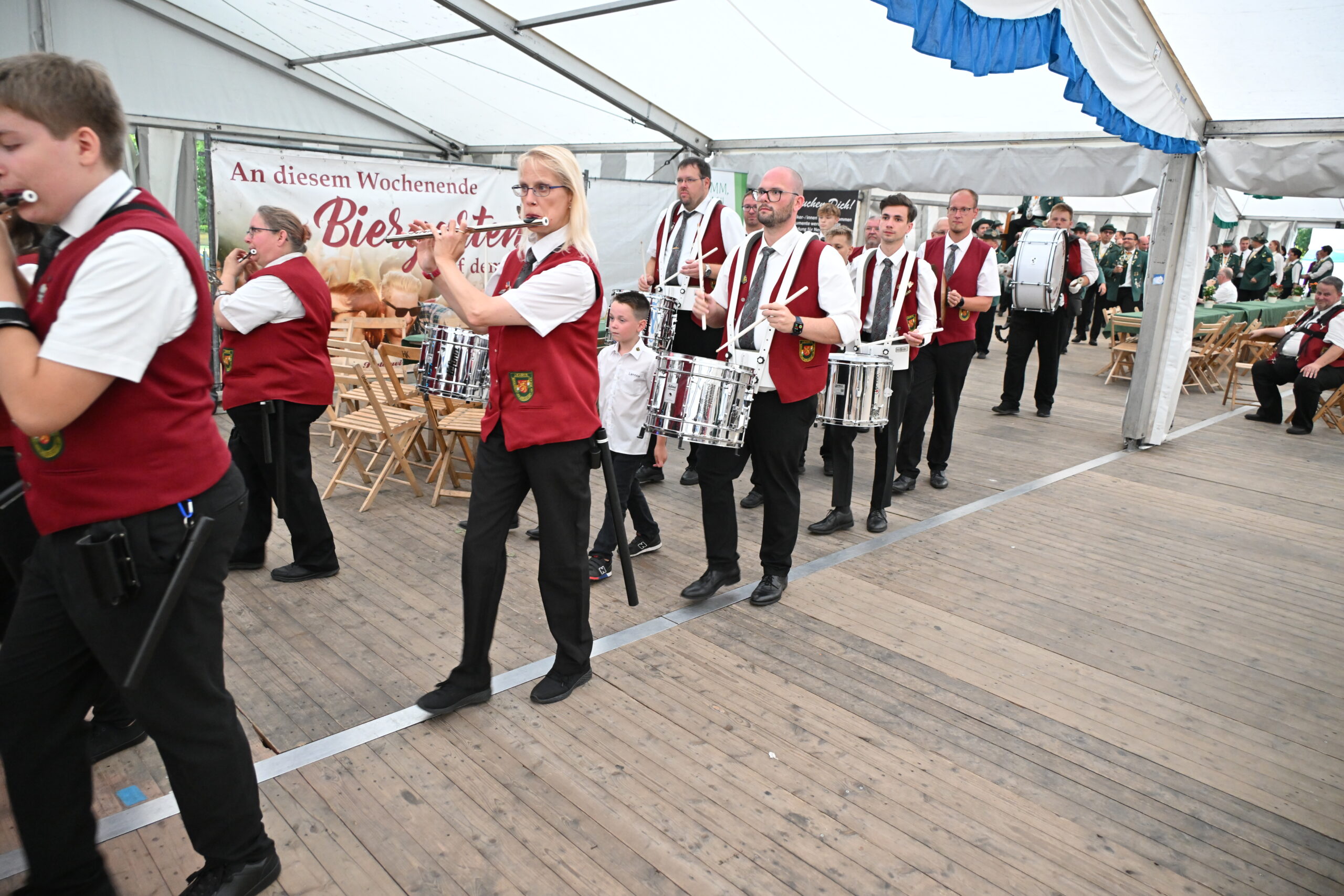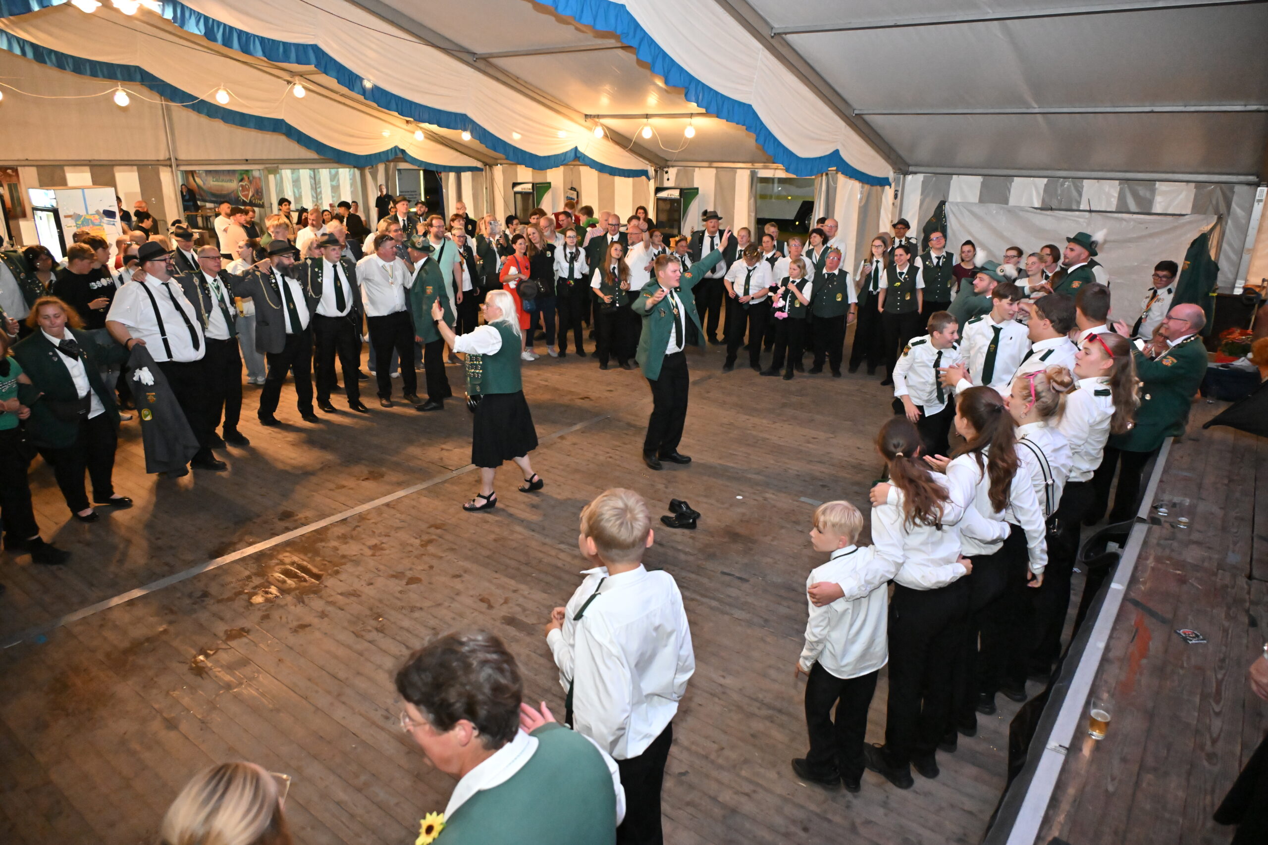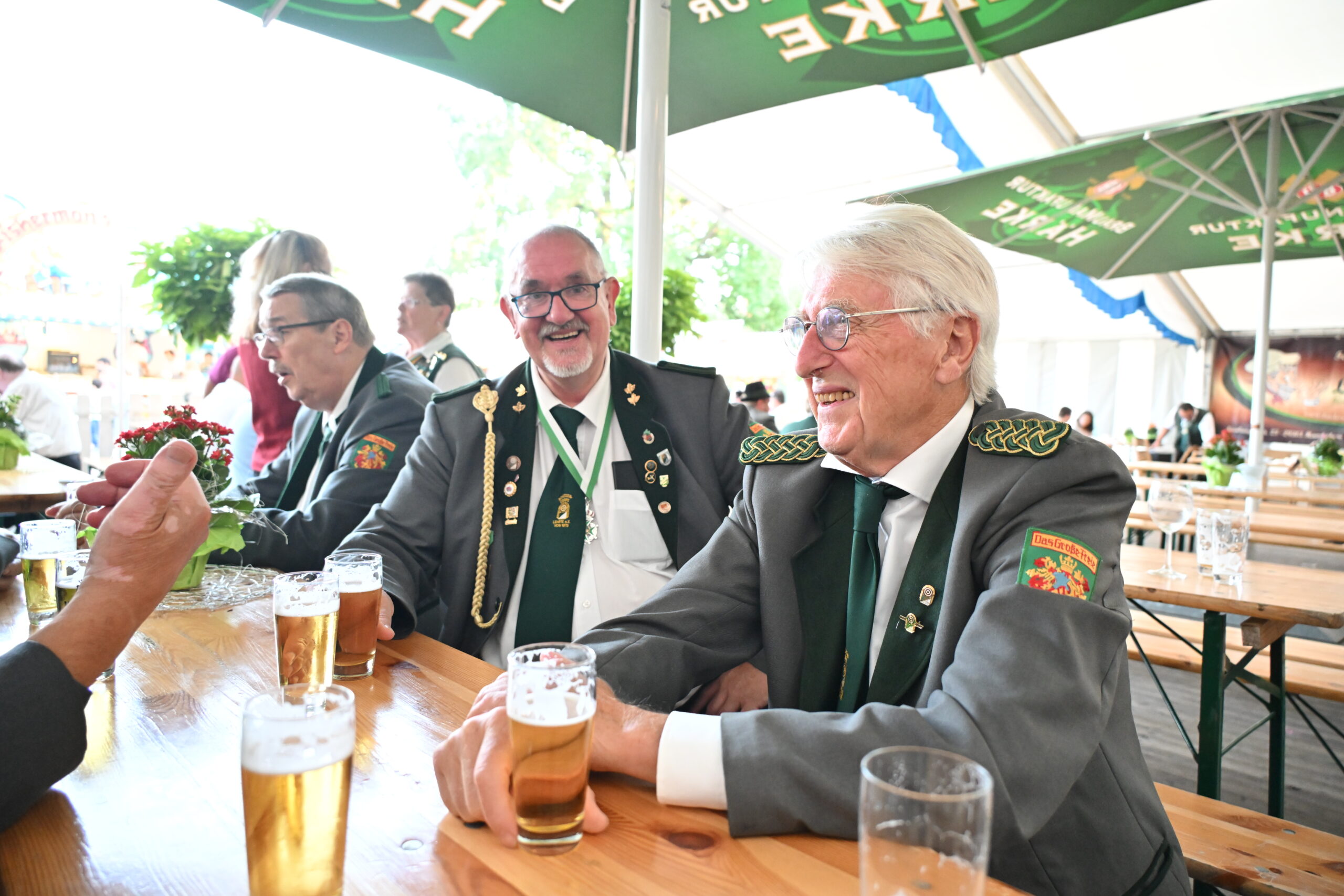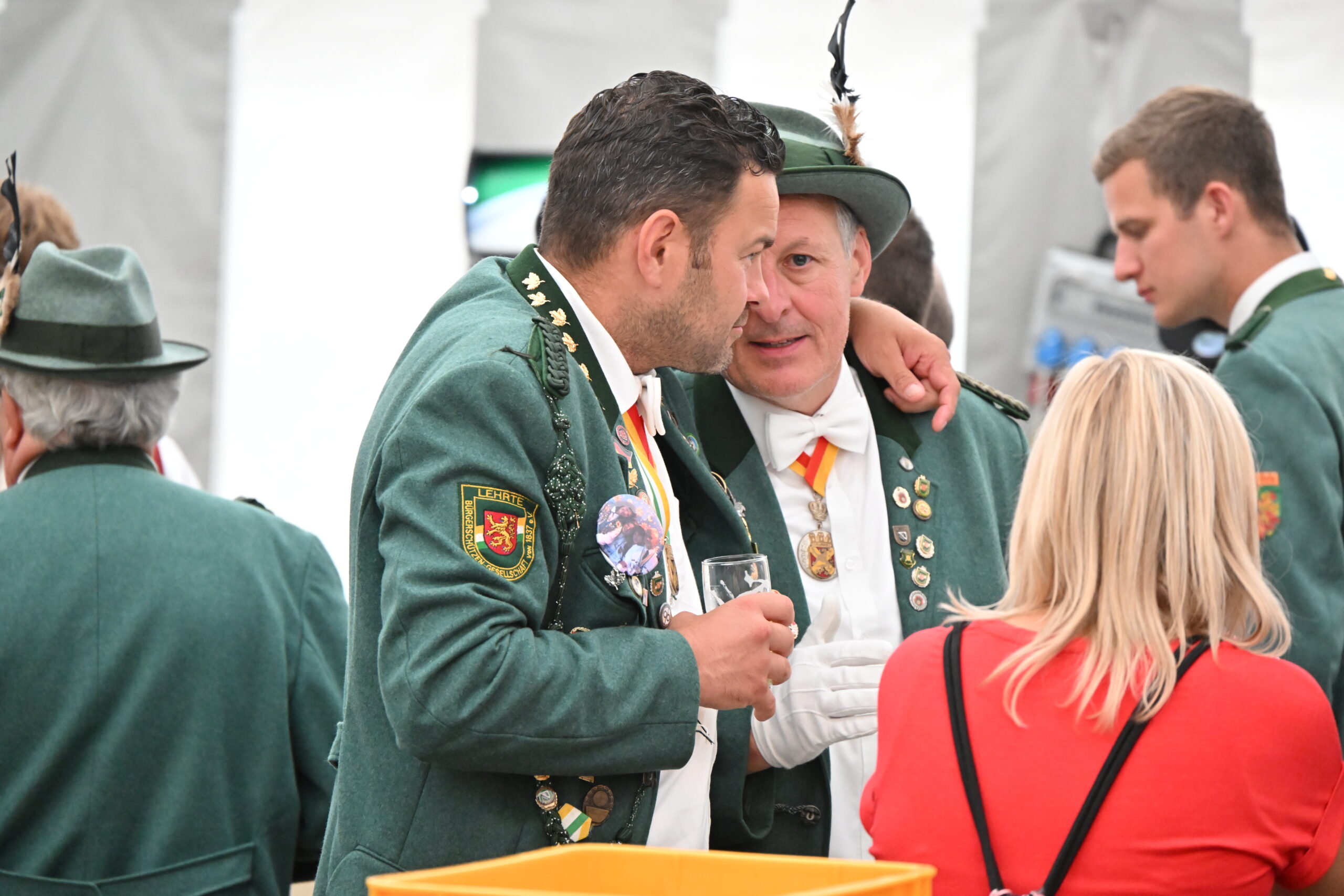 Zuvor hatten die Schützen nach dem Umzug und dem Auftritt der sechs teilnehmenden Musikzüge (wir berichteten) noch kräftig weiter gefeiert. Sie ließen ihre Könige hochleben und im Festzelt sowie auf der großen Terrasse wurden weitere Konzerte der vier Musikgruppen vom Schützen-Corps und der Bürgerschützen-Gesellschaft gegeben. So spielten von der Bürgerschützen-Gesellschaft Lehrte der Spielmannszug und die Brassband, vom Schützen-Corps der Musikzug und der Spielmannszug. Beide Vereine zeigten hierbei wieder das gute Miteinander, sodass jeweils abwechselnd die Musiker beider Vereine zum Zuge kamen.