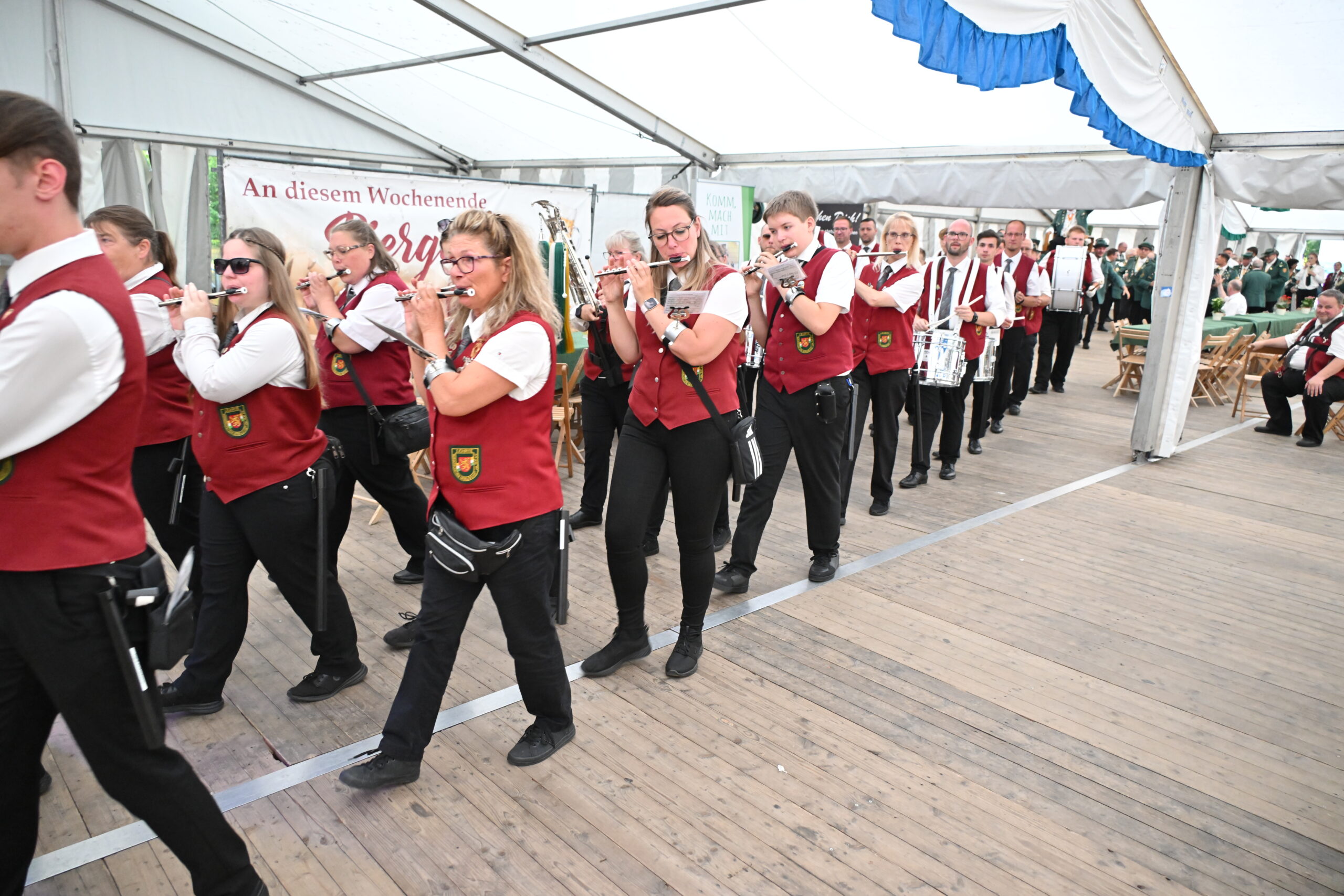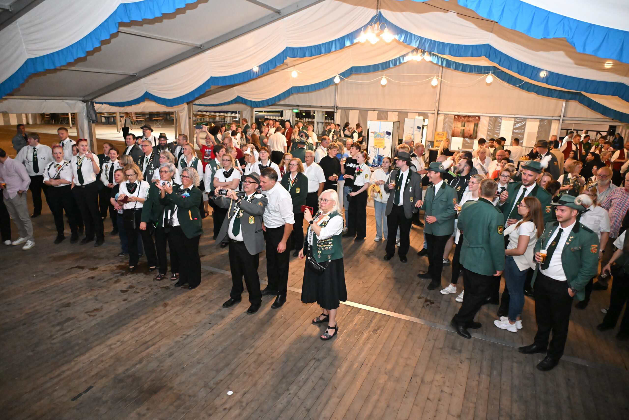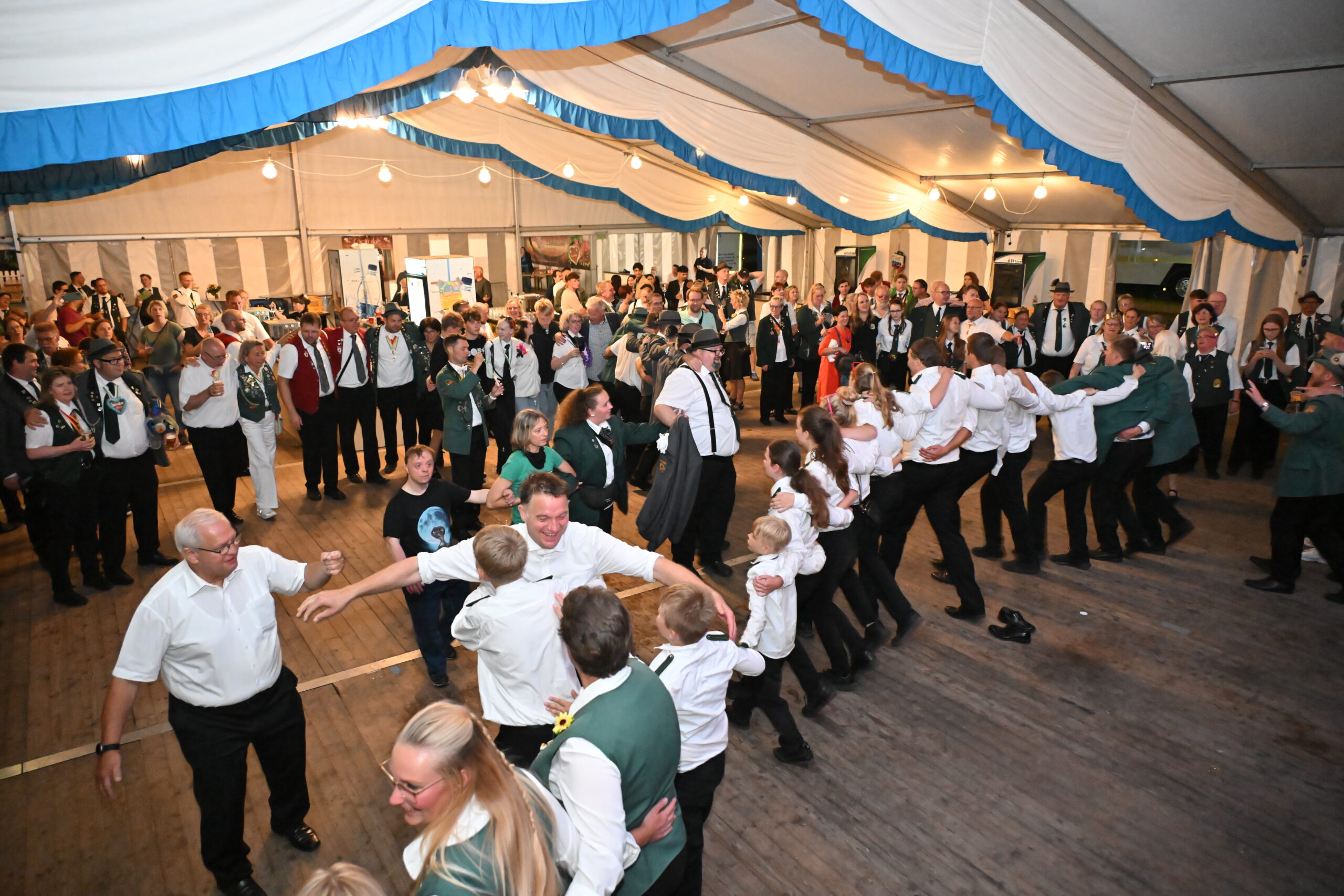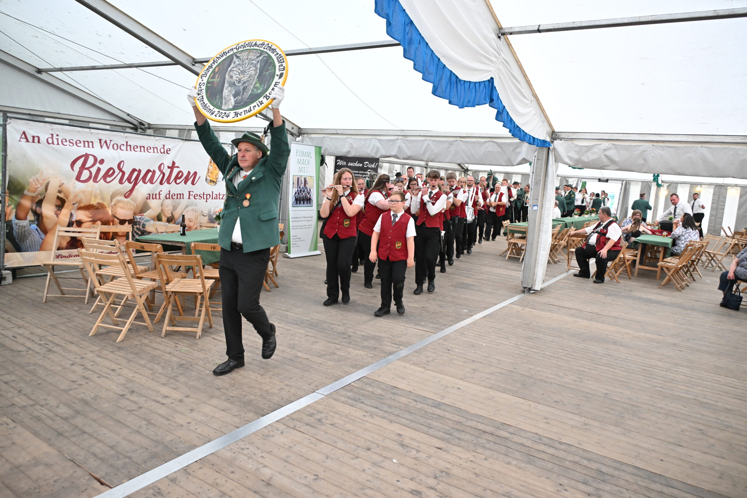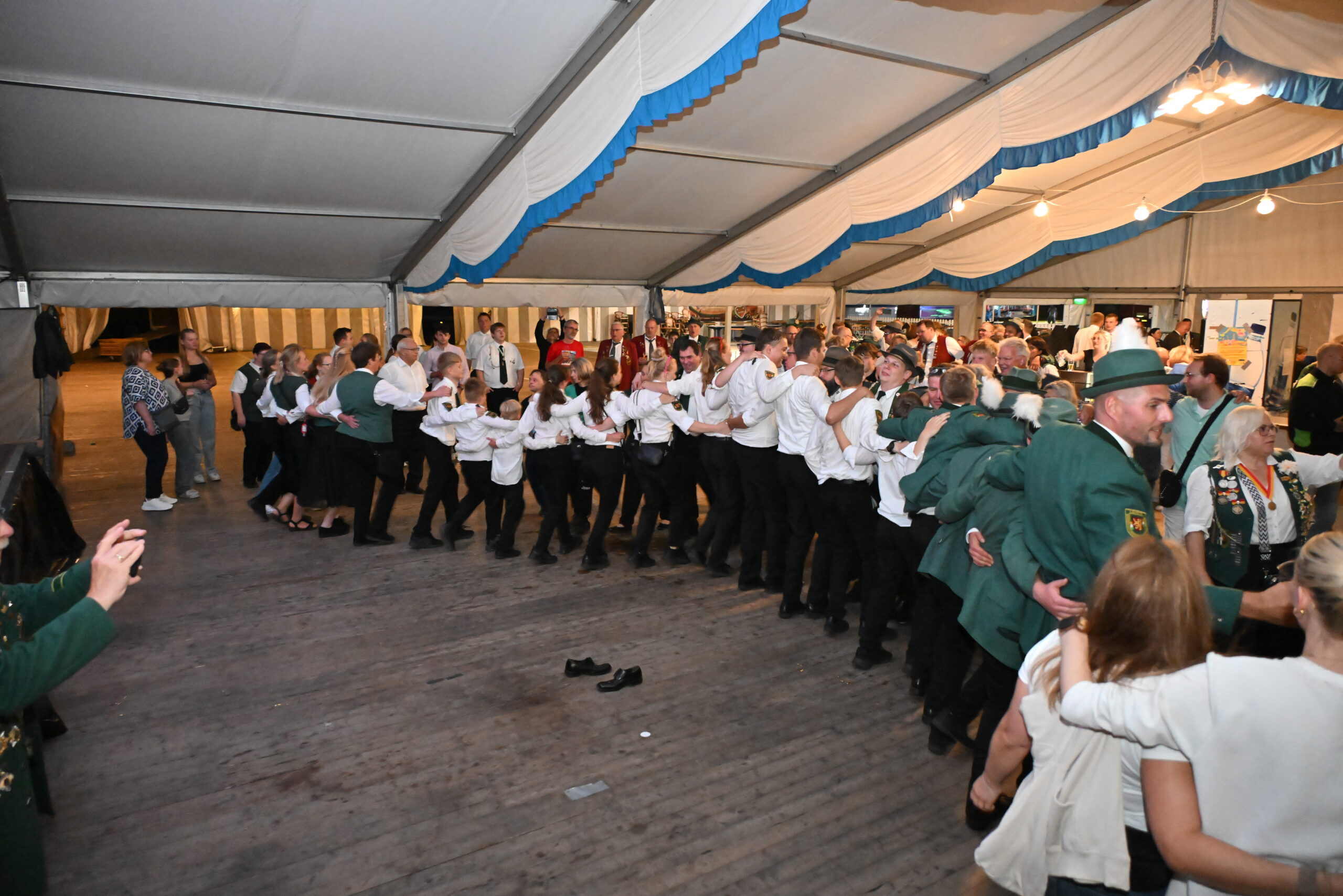 Zuvor hatten die Schützen nach dem Umzug und dem Auftritt der sechs teilnehmenden Musikzüge (wir berichteten) noch kräftig weiter gefeiert. Sie ließen ihre Könige hochleben und im Festzelt sowie auf der großen Terrasse wurden weitere Konzerte der vier Musikgruppen vom Schützen-Corps und der Bürgerschützen-Gesellschaft gegeben. So spielten von der Bürgerschützen-Gesellschaft Lehrte der Spielmannszug und die Brassband, vom Schützen-Corps der Musikzug und der Spielmannszug. Beide Vereine zeigten hierbei wieder das gute Miteinander, sodass jeweils abwechselnd die Musiker beider Vereine zum Zuge kamen.