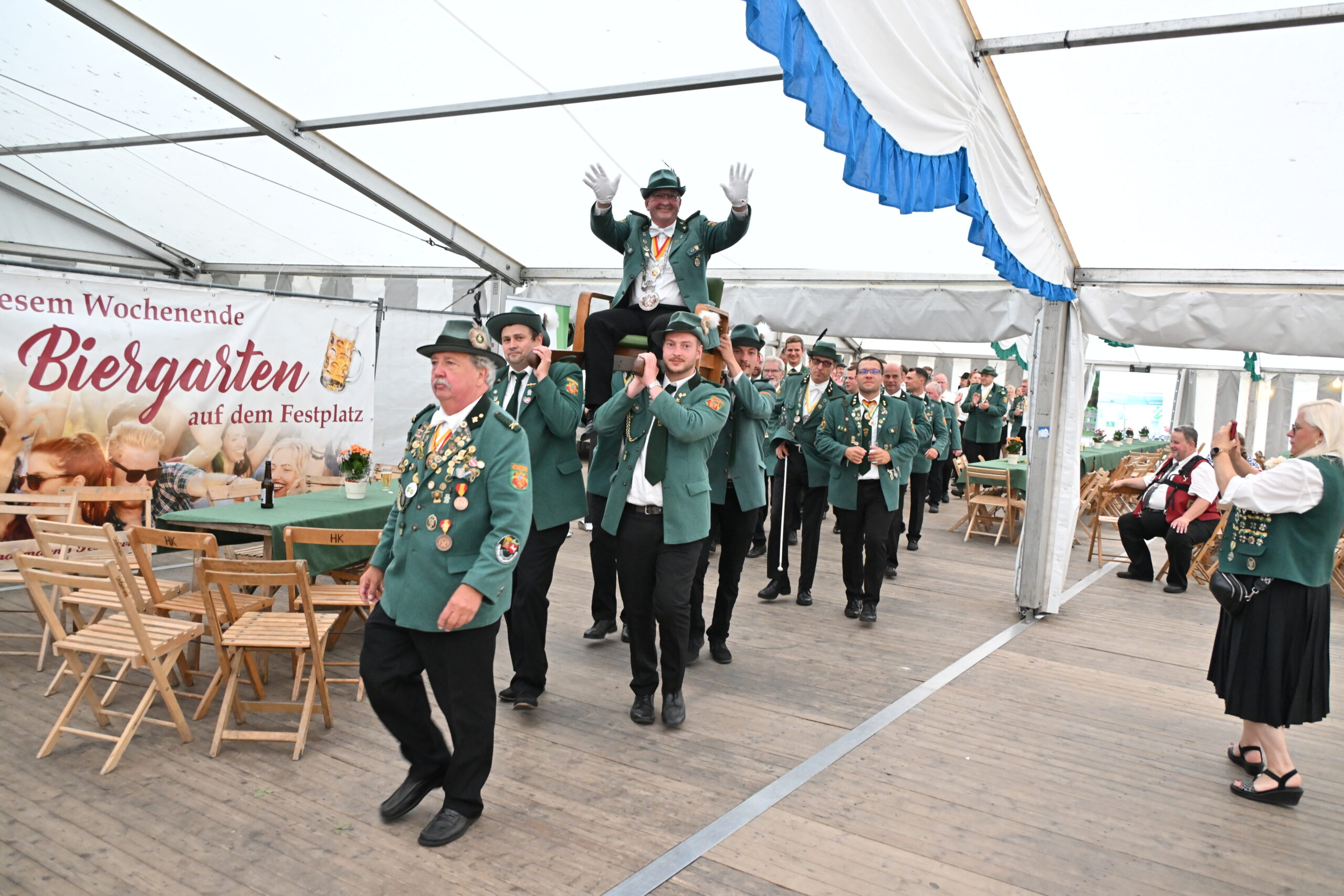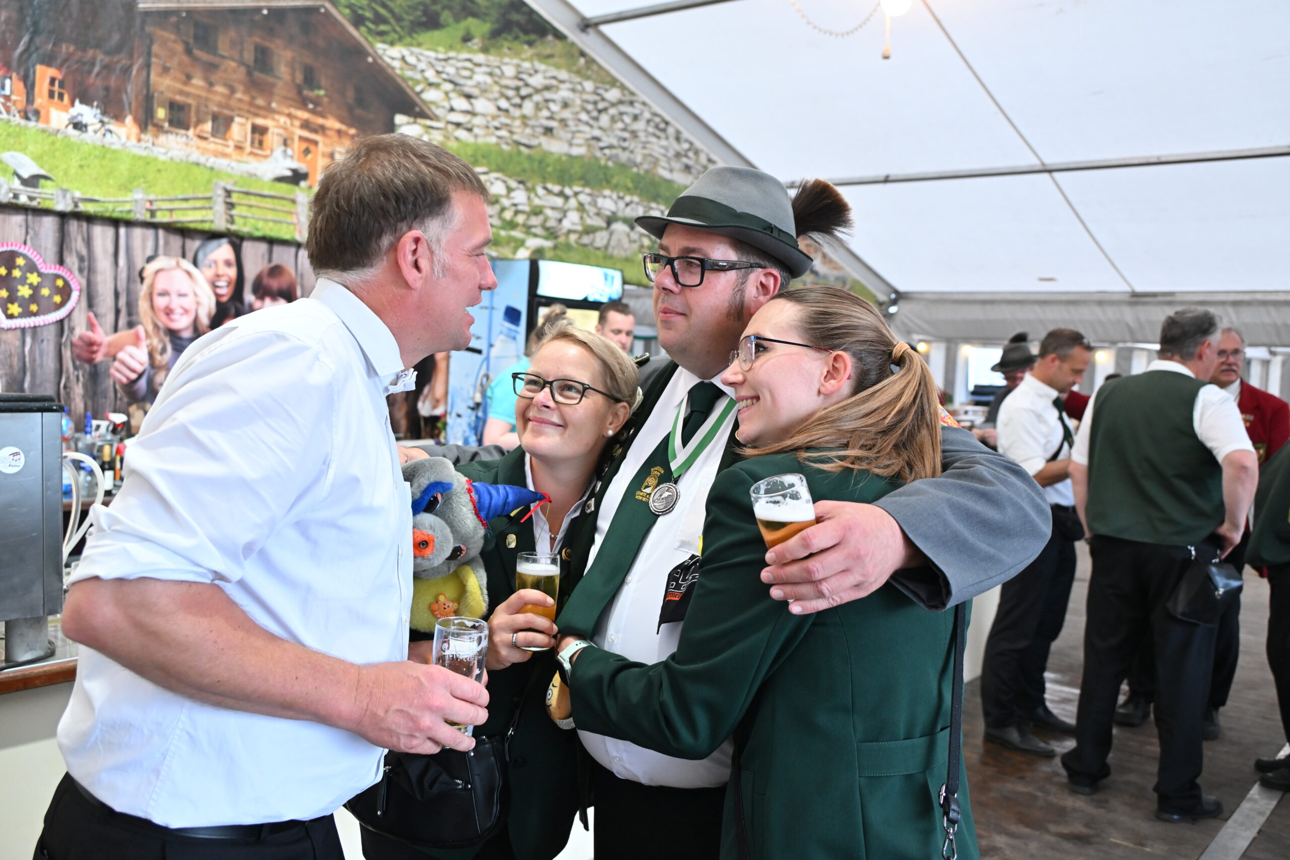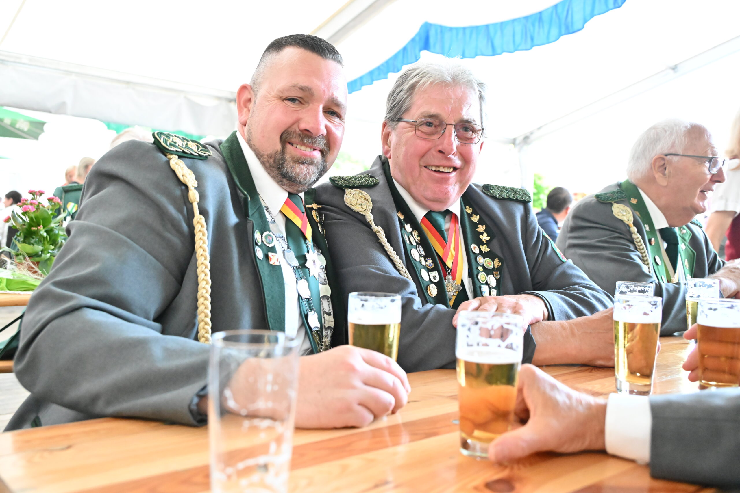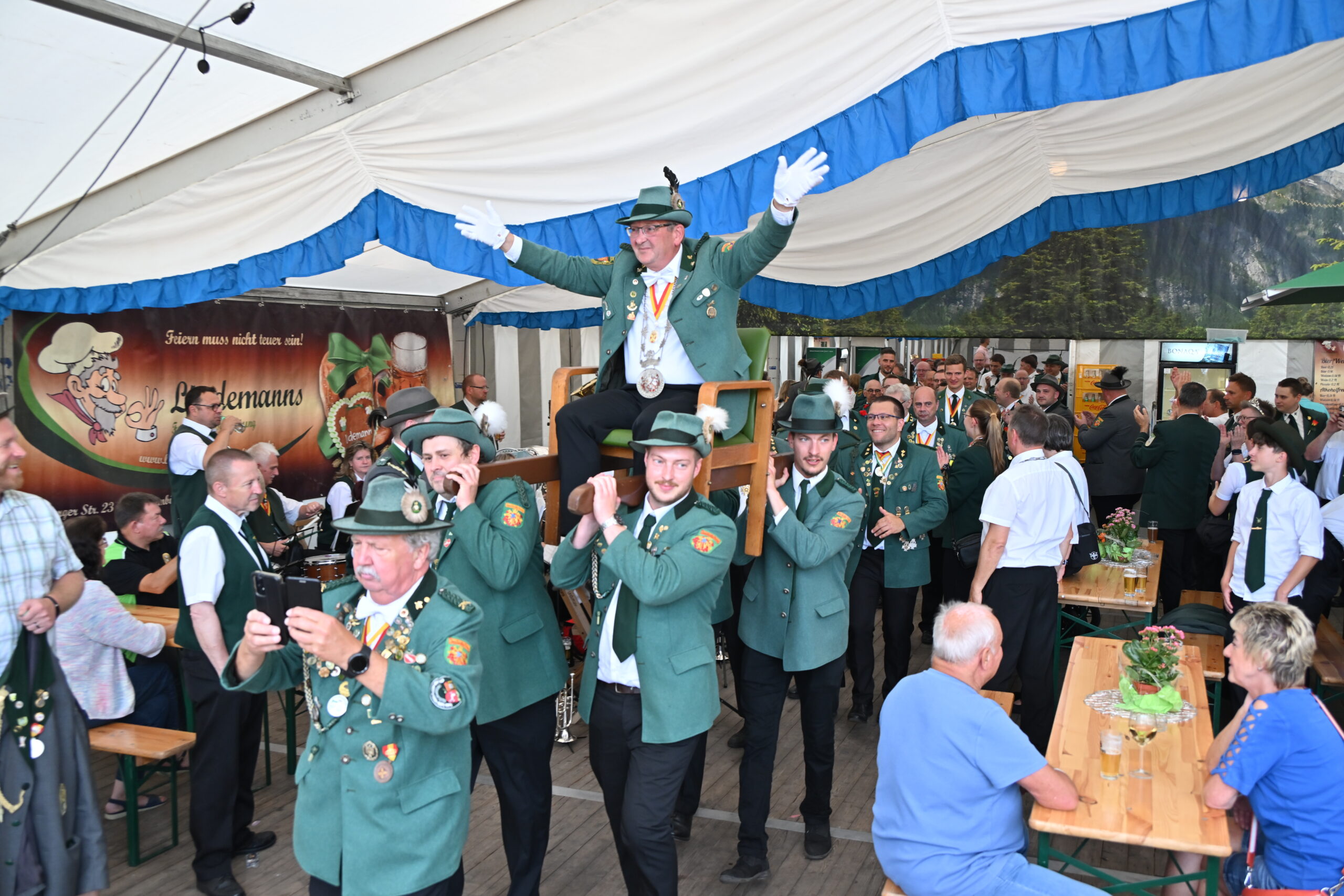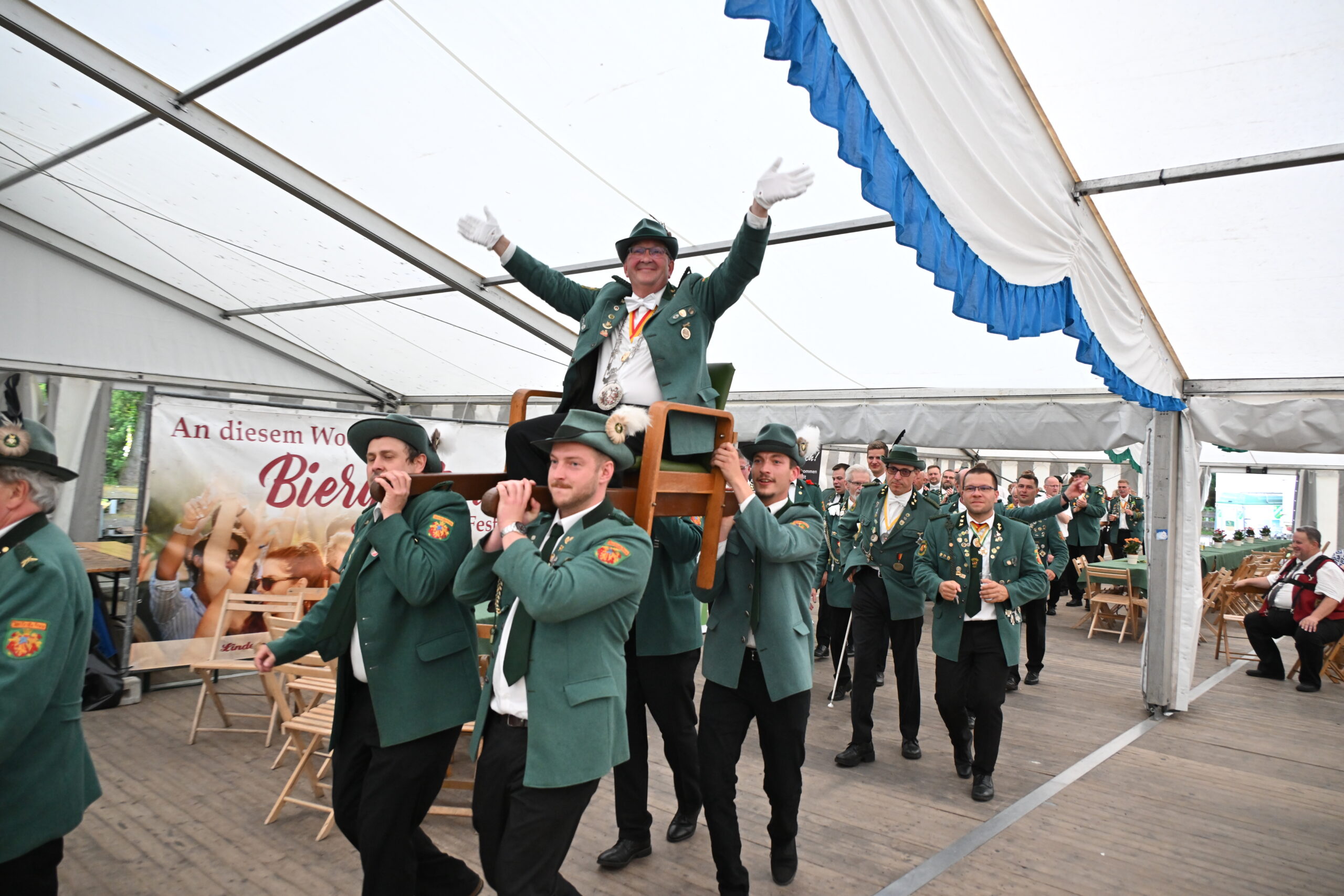 Zuvor hatten die Schützen nach dem Umzug und dem Auftritt der sechs teilnehmenden Musikzüge (wir berichteten) noch kräftig weiter gefeiert. Sie ließen ihre Könige hochleben und im Festzelt sowie auf der großen Terrasse wurden weitere Konzerte der vier Musikgruppen vom Schützen-Corps und der Bürgerschützen-Gesellschaft gegeben. So spielten von der Bürgerschützen-Gesellschaft Lehrte der Spielmannszug und die Brassband, vom Schützen-Corps der Musikzug und der Spielmannszug. Beide Vereine zeigten hierbei wieder das gute Miteinander, sodass jeweils abwechselnd die Musiker beider Vereine zum Zuge kamen.