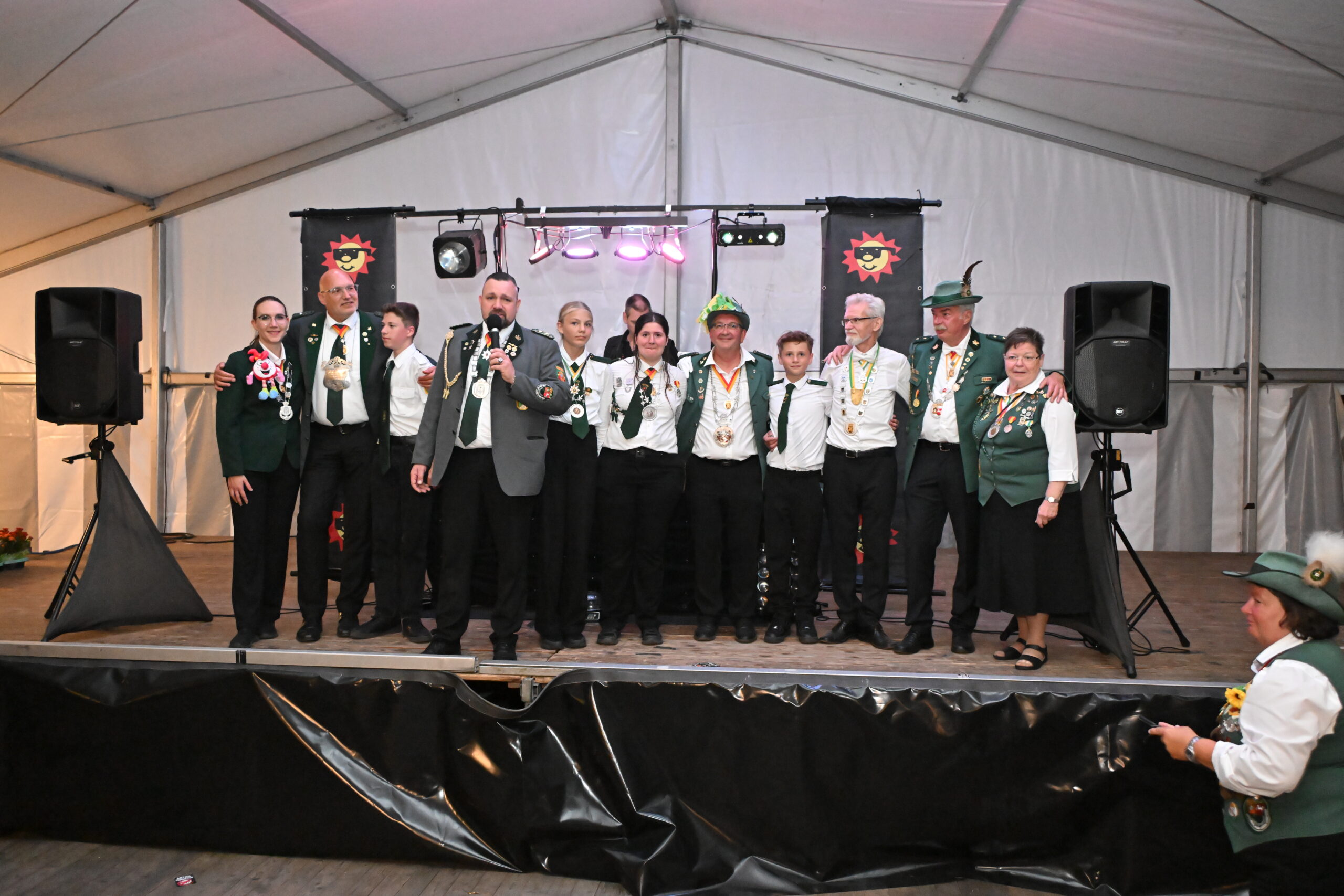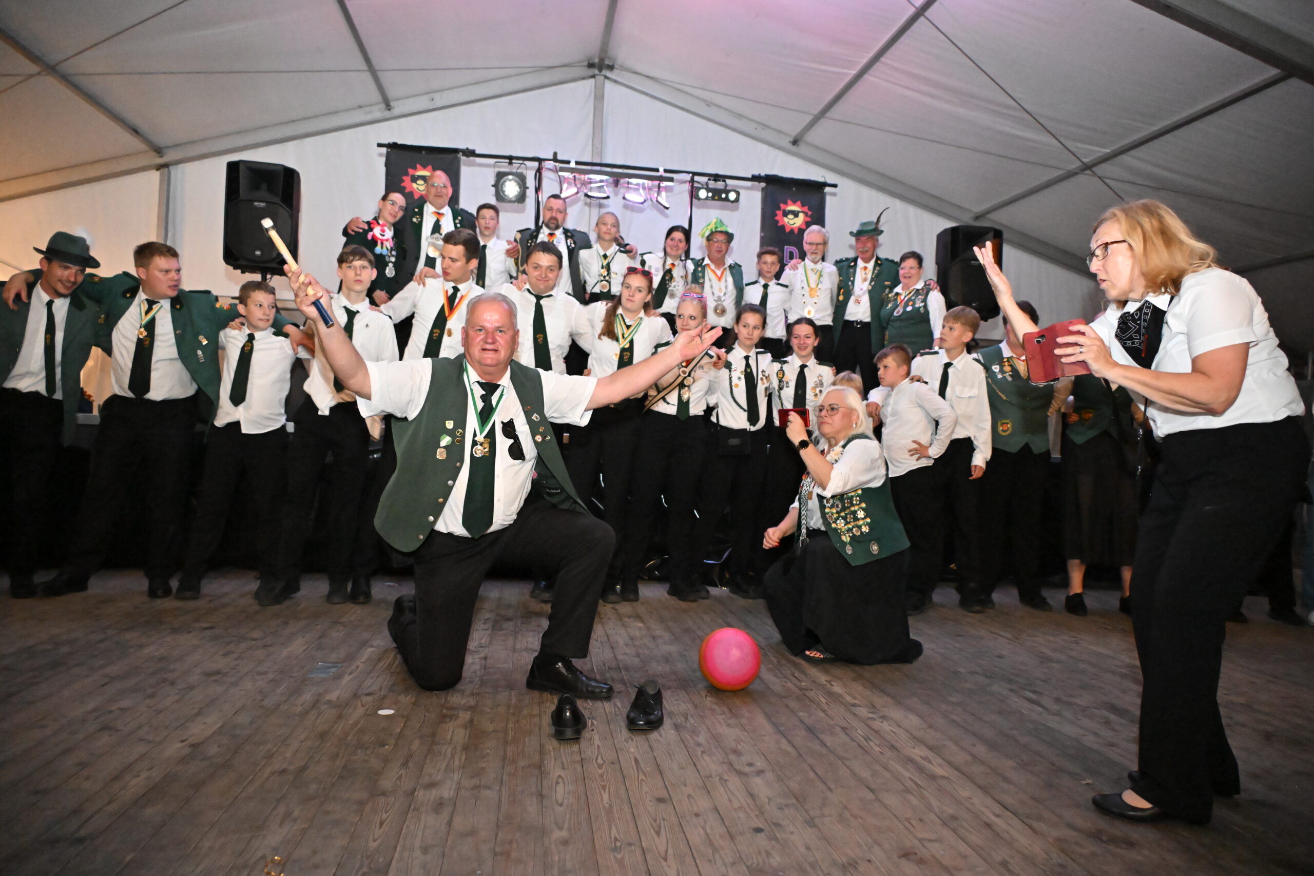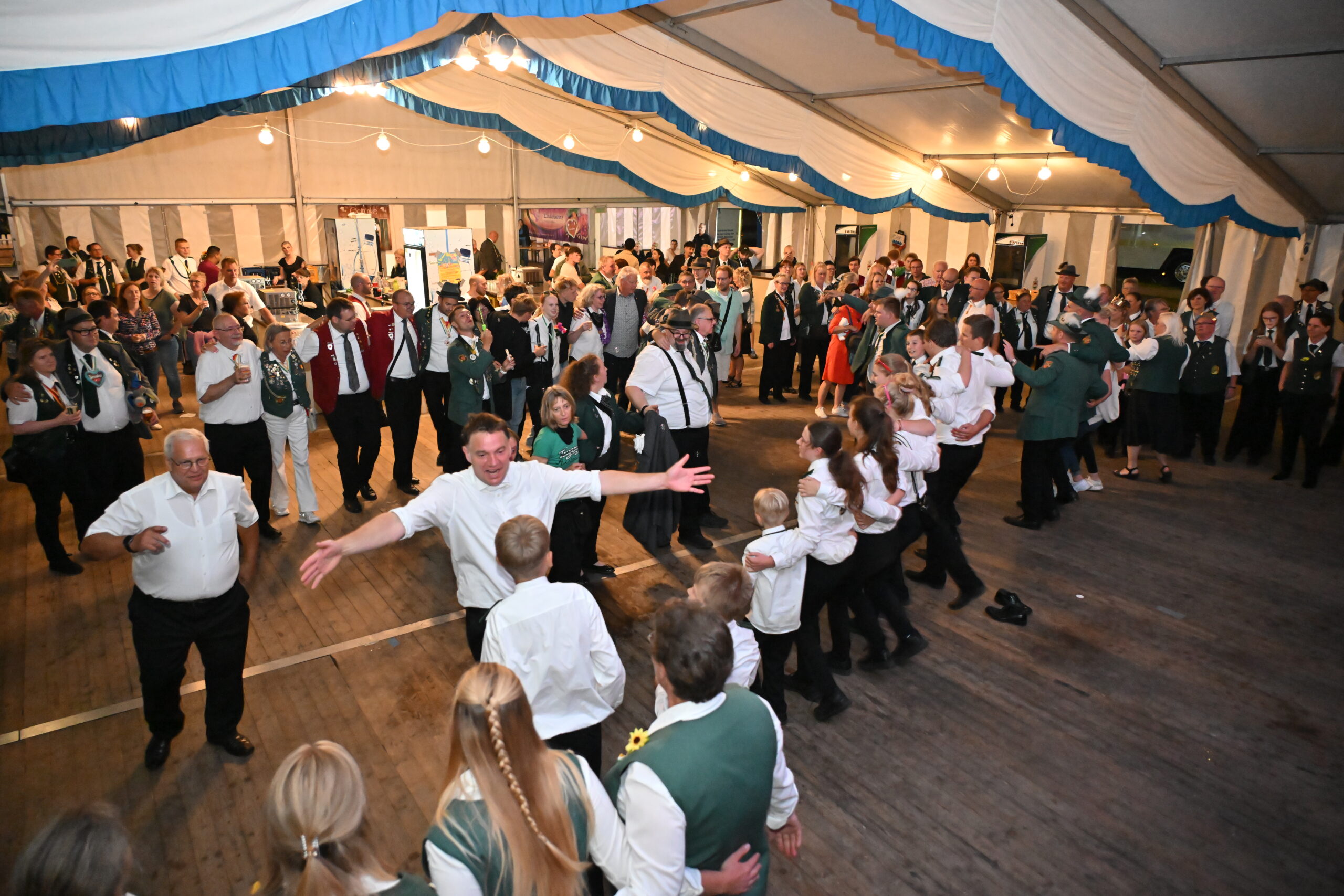 Um 23 Uhr versammelten sich dann die Majestäten auf der Bühne, um mit den Gästen gemeinsam traditionell "Johnny Walker" zu singen und einen Schuh auf dem Boden des Festzeltes zu nageln, womit das Ende der viertägigen Sause besiegelt wurde.