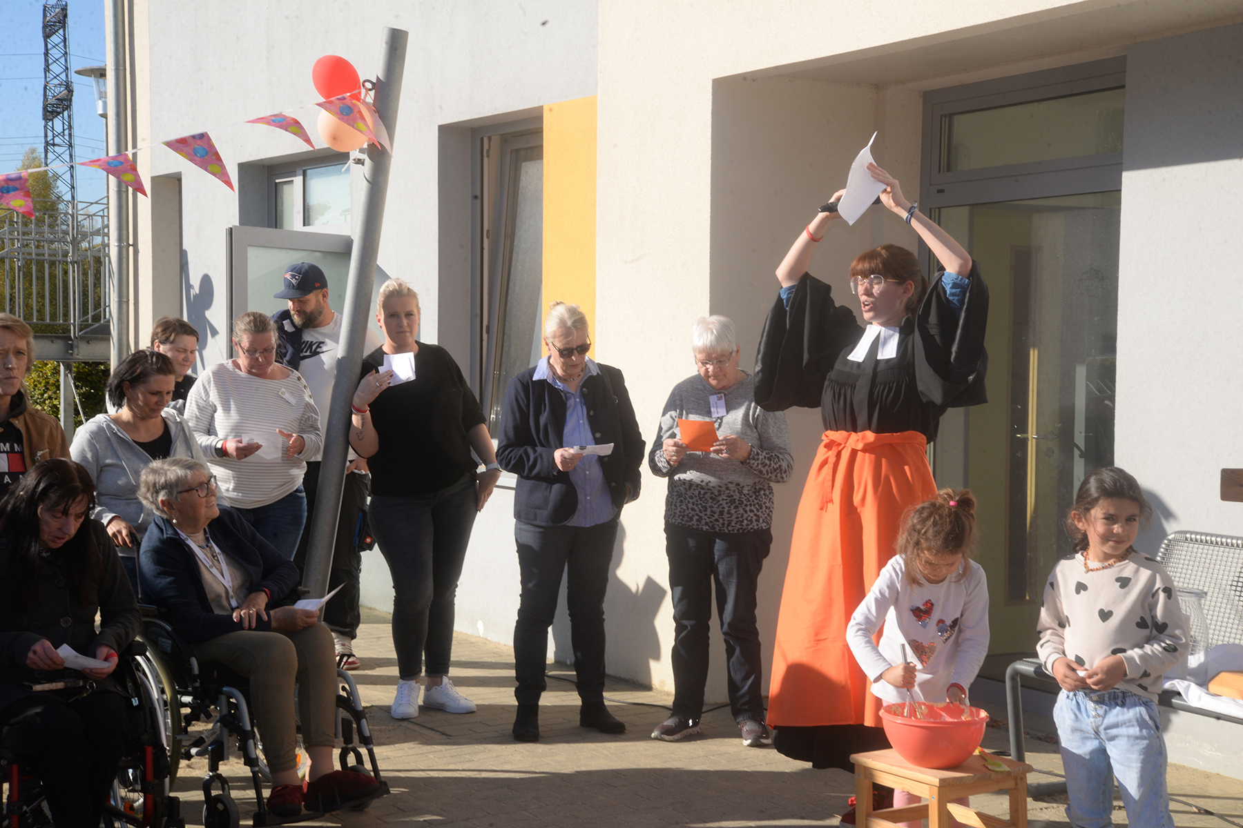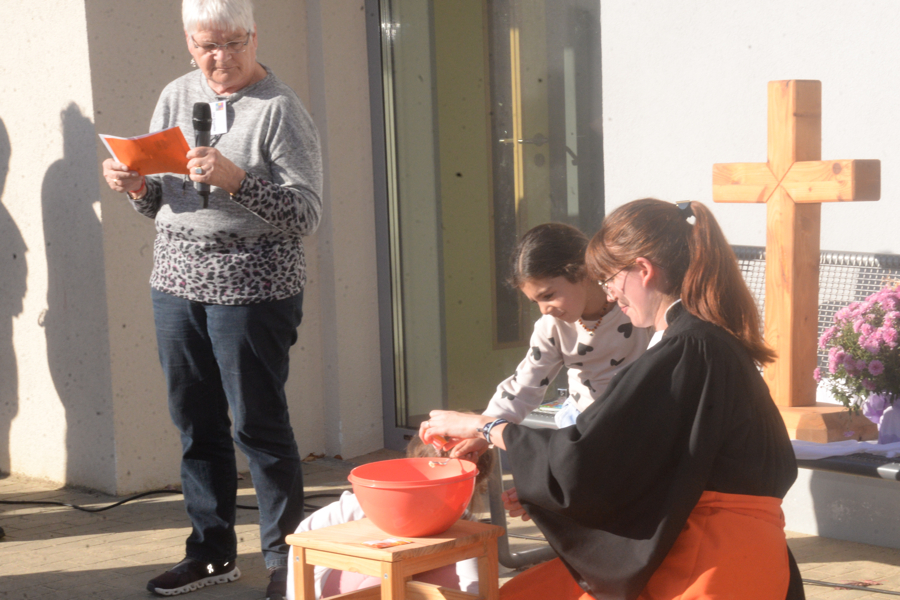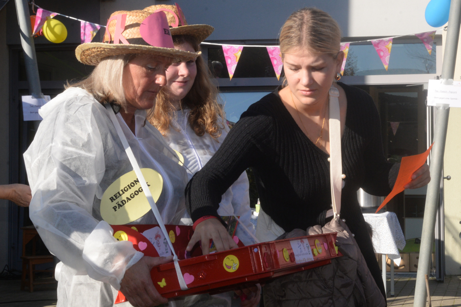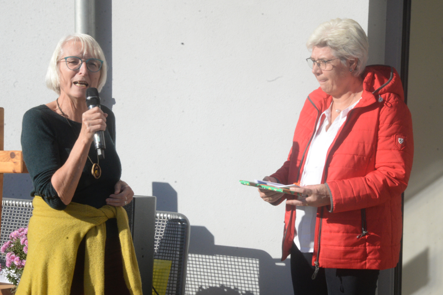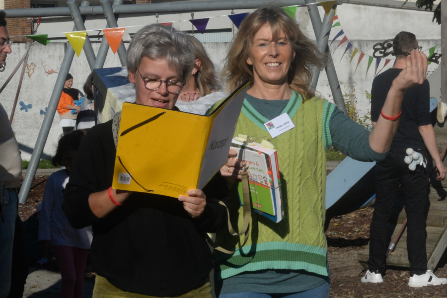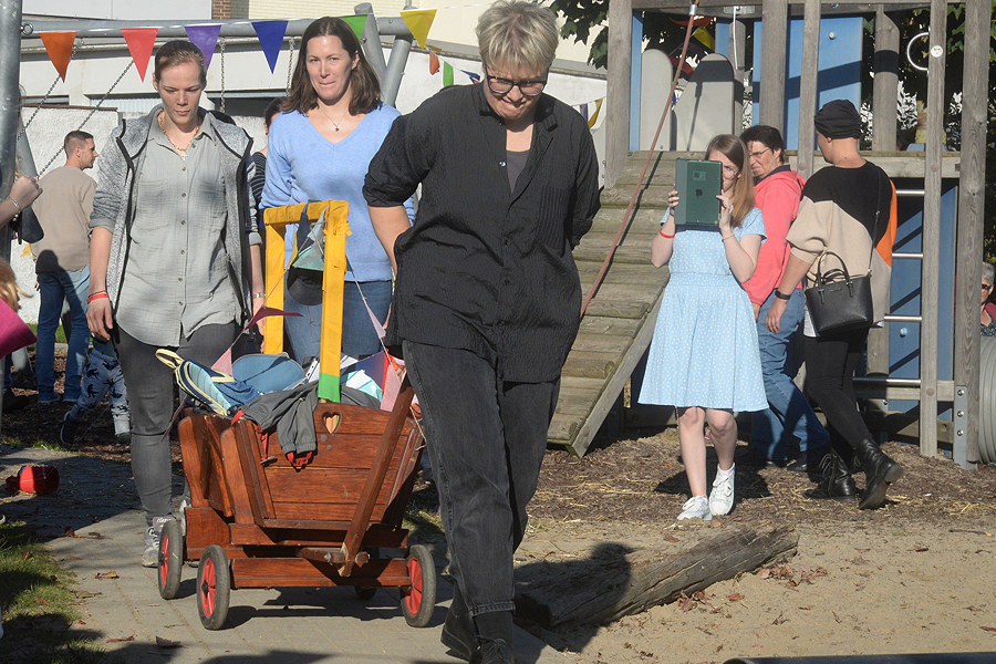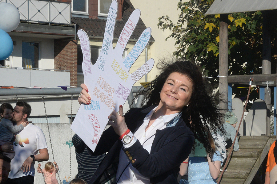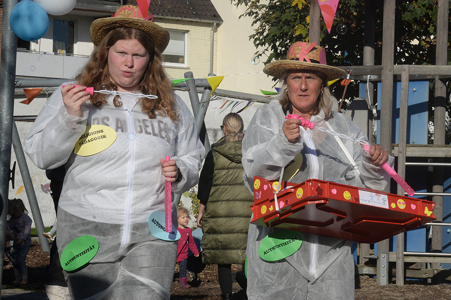 Louisa Pandera, Pastorin der St. Martins-Kirchengemeinde, eröffnete die Feier mit einer Andacht, danach mixte sie mit zwei Mädchen einen Kuchenteig. Der sollte symbolisch darstellen, dass zum Leben viele Zutaten gehören, wenn etwas Gutes dabei herauskommen soll – wie bei einem guten Kuchen. Dazu gehöre im Leben Glück, Zusammenhalt, ein gutes Team – daraus würden sich in der KiTa Kinder entwickeln, die eines Tages in die Welt hinausgelassen werden. Susanne Jäger begab sich danach auf die Zeitreise durch die zehn Jahre St. Martins-Kindertagesstätte: Dabei war das gesamte KiTa-Team im Einsatz, es wurden Eckpunkte der zehn Jahre der St. Martins-Kindertagesstätte genannt sowie mit Motiven wie ein Modell der Kirche, einem Bollerwagen und vieles mehr dargestellt. "Unser Team hat dabei gemeinsam alles kreativ zusammengestellt", sagte Susanne Jäger. "Darauf bin ich sehr stolz."