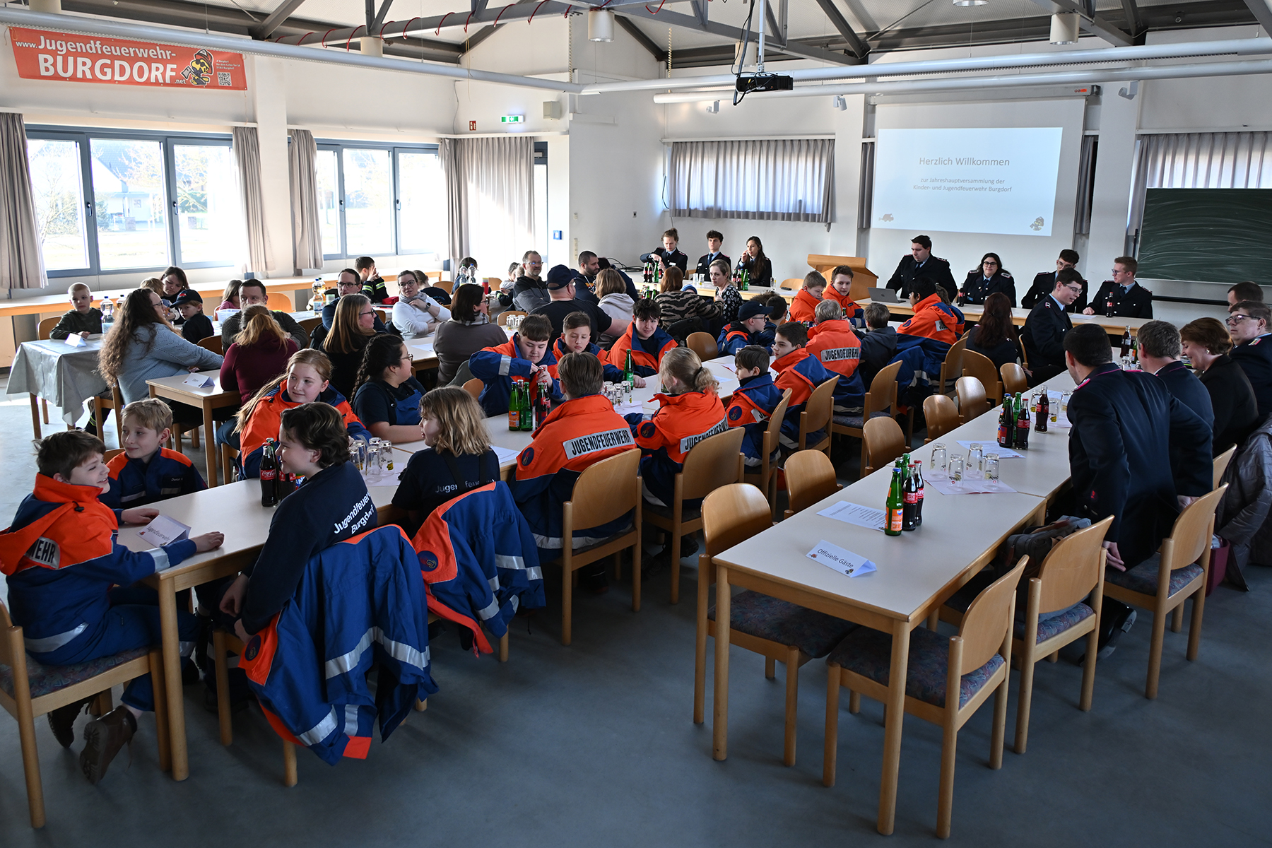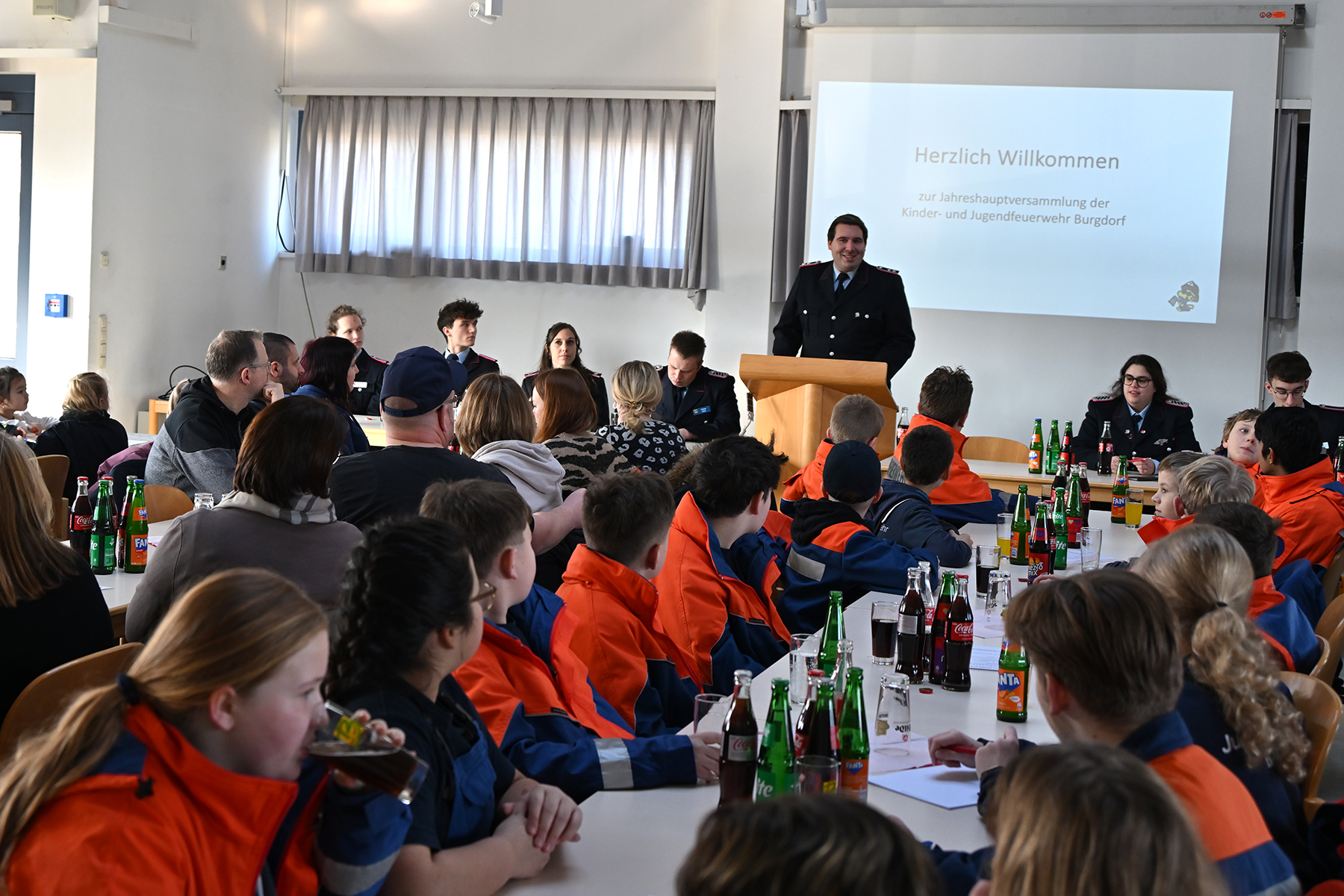 Mit rund 70 Anwesenden zeigte sich die Jahreshauptversammlung der Kinder- und Jugendfeuerwehr der Freiwilligen Feuerwehr Burgdorf am heutigen Sonnabend, 8. Februar 2025, durchaus vergleichbar mit einer gestandenen Ortsfeuerwehr. Zahlreiche Kinder, Jugendliche und Eltern blicken im Saal der Ortsfeuerwehr zurück auf das vergangene Jahr sowie die geplanten Aktivitäten in diesem Jahr.