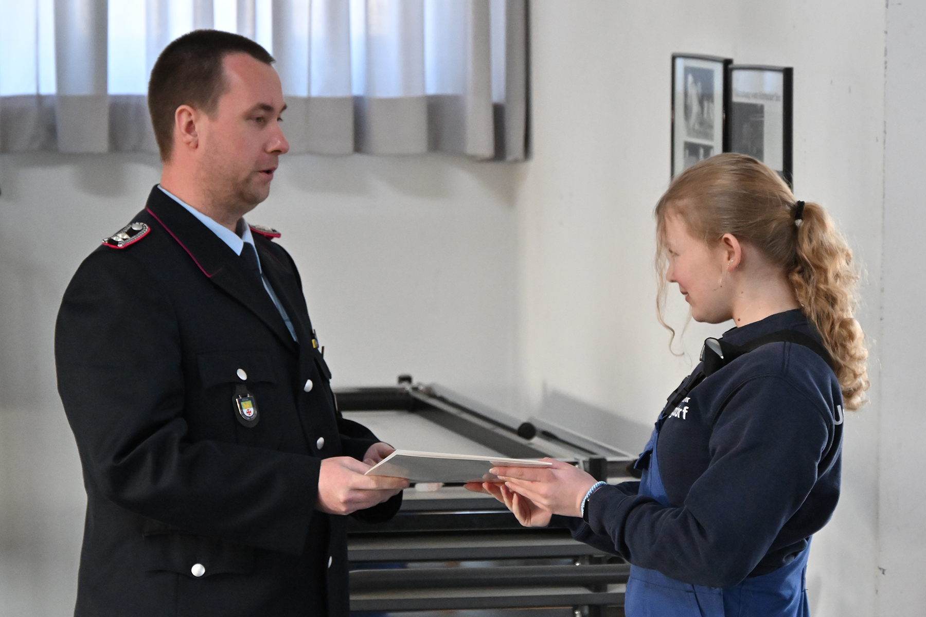 Für die meisten Teilnahmen an den Diensten wurden Jannis Bruns, Levin Ehlers und Florian Sellemann geehrt. Zudem erhielt Lilly Junge durch den Stadtjugendfeuerwehrwart für das Bestehen der Leistungsspange eine Urkunde.
